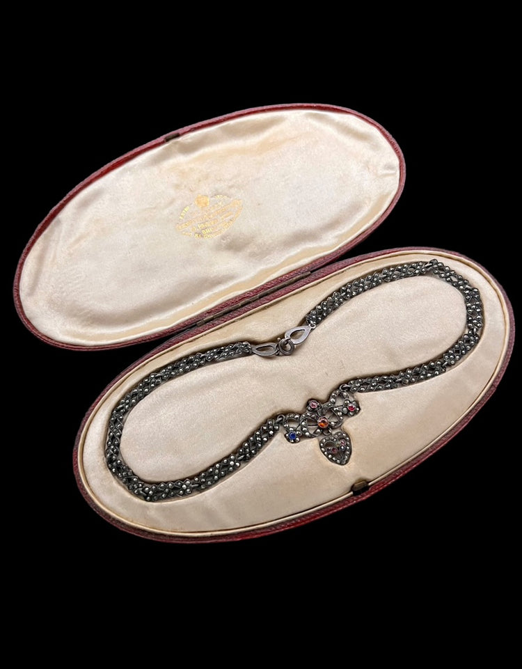 EDWARDIAN MARCASITE & PASTE HEART NECKLACE