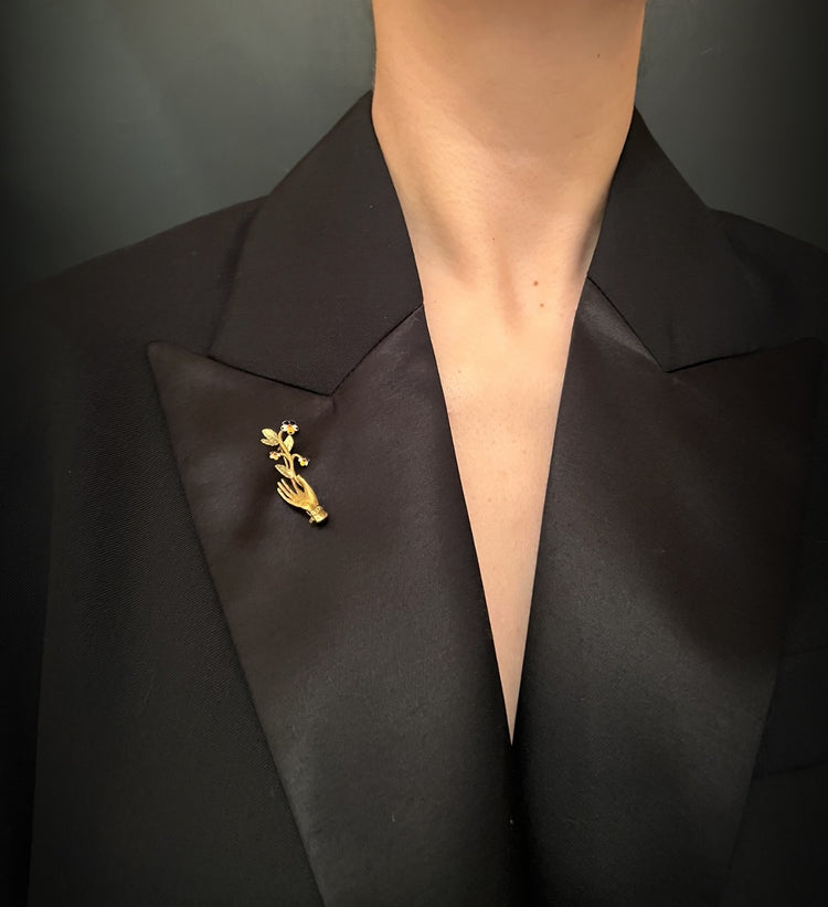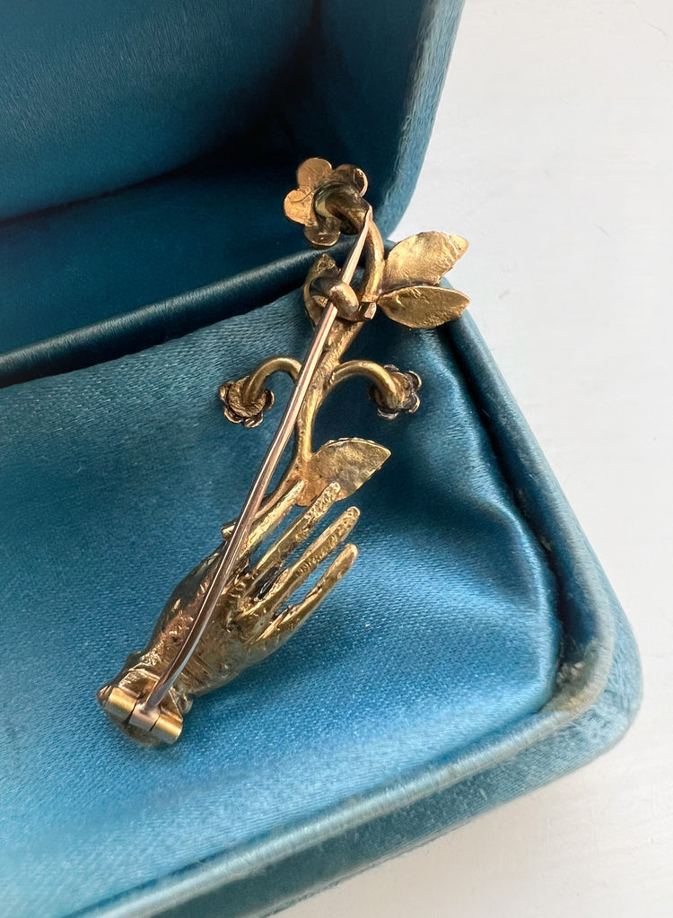 A stunning high carat gold early 19th century hand brooch, circa 1820.