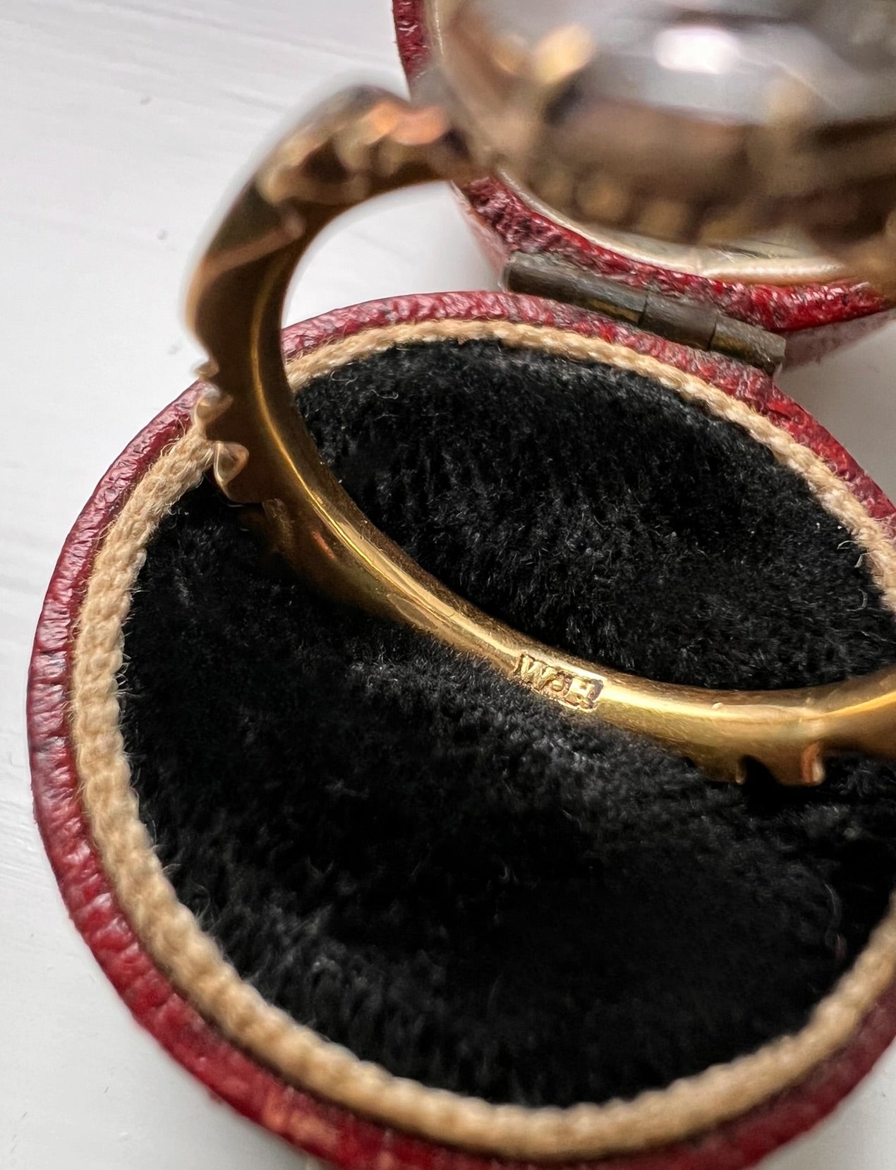We recommend removing pieces of jewellery before washing hands or showering, as water can damage the antique settings.
