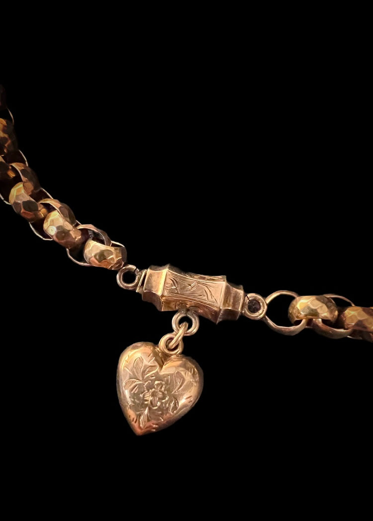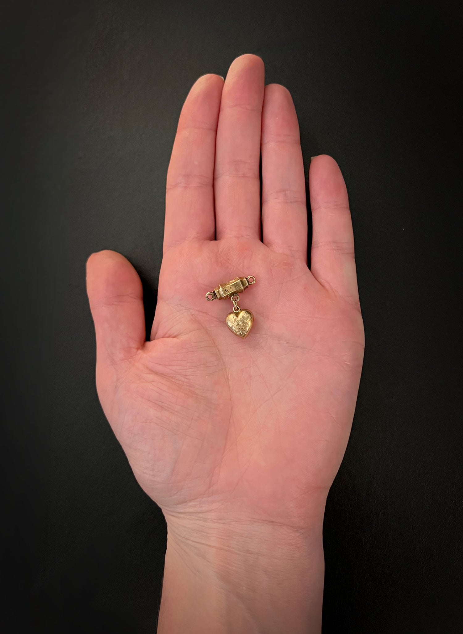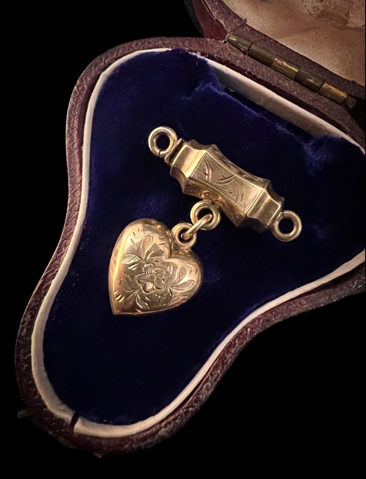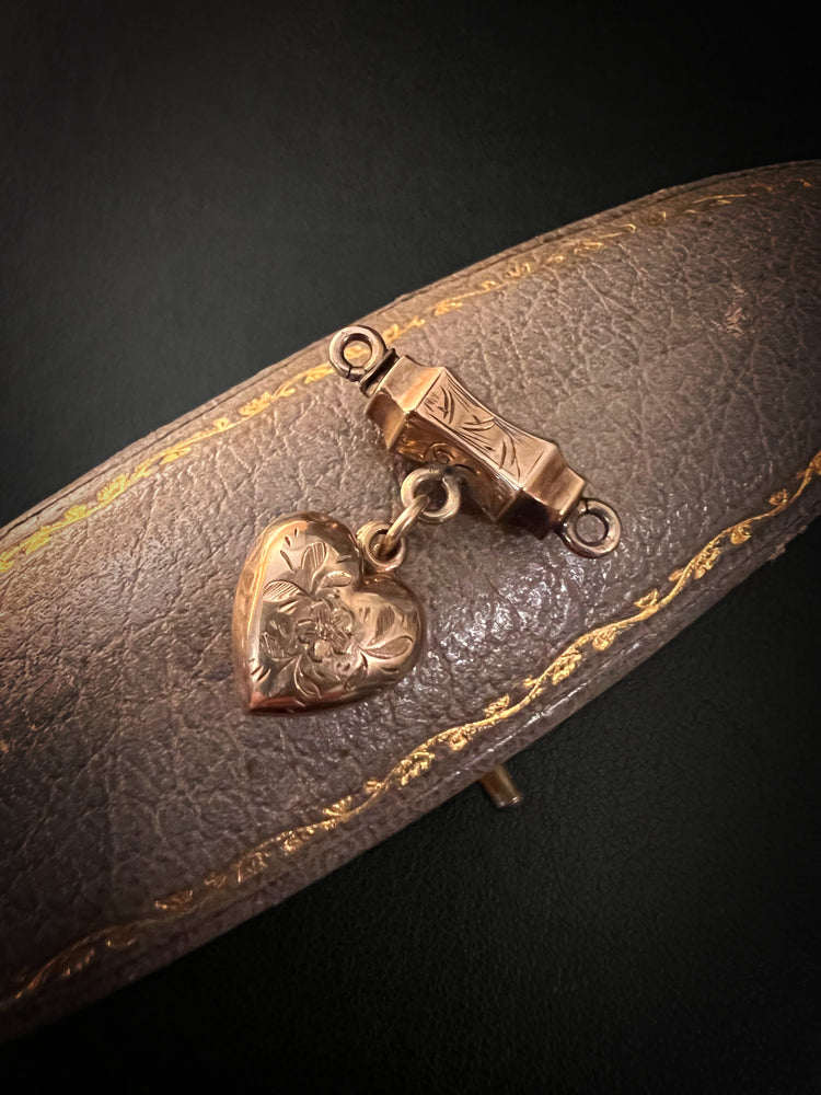 A gorgeous Victorian barrel clasp with a puffy heart drop.