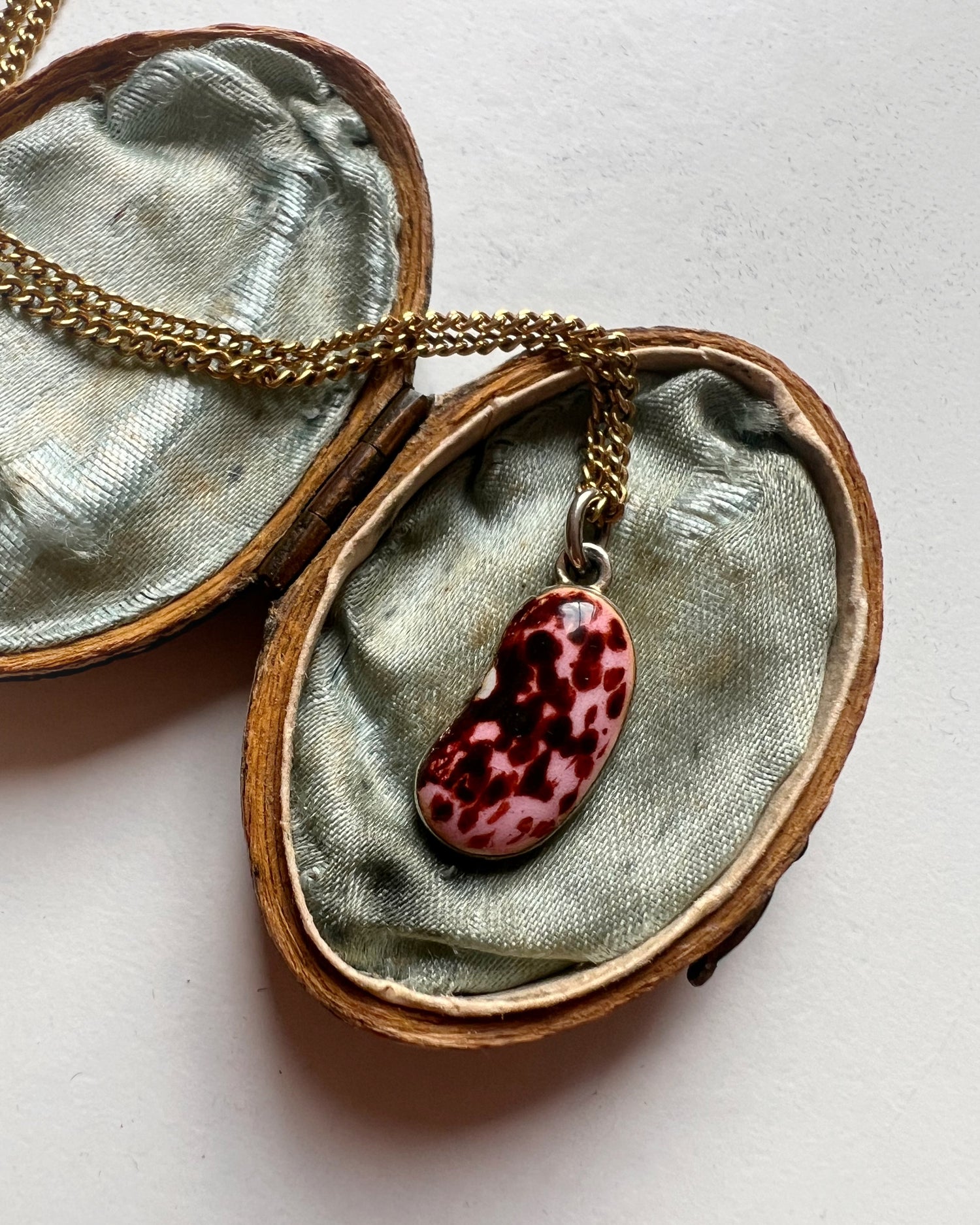 ANTIQUE ENAMEL LUCKY BEAN PENDANT