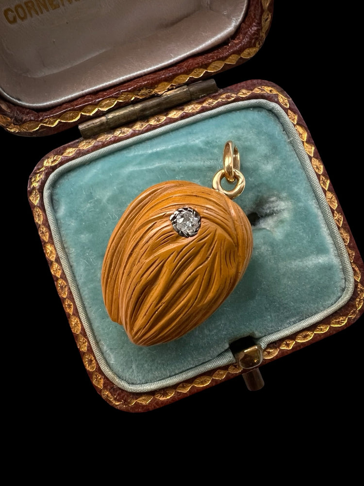 LATE VICTORIAN AGATE AND DIAMOND NUT PENDANT