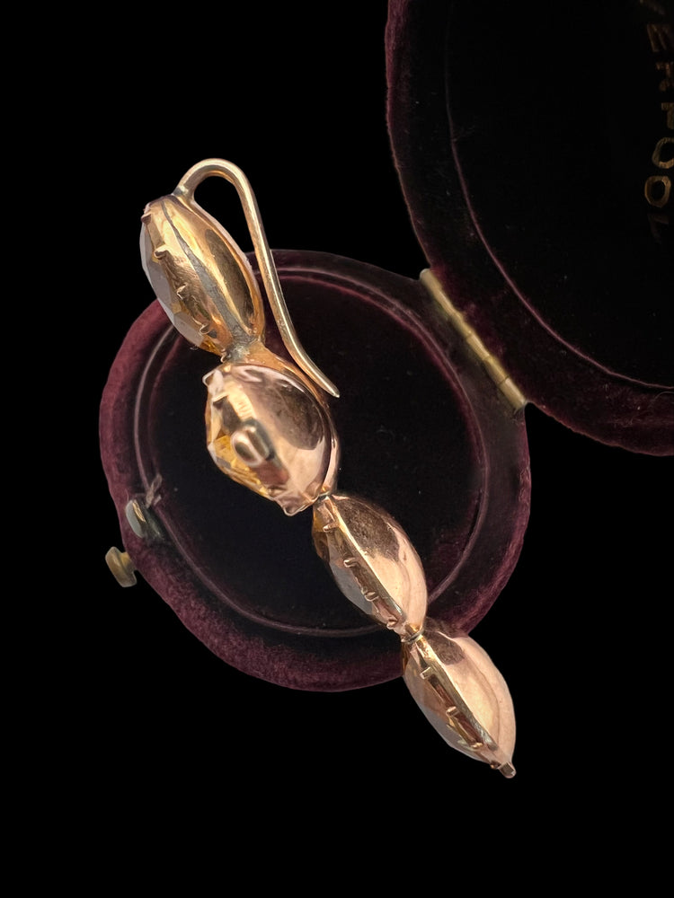 Circa 1820; The beautiful cushion cut pastes are set in a domed closed back setting in 9ct rose gold.