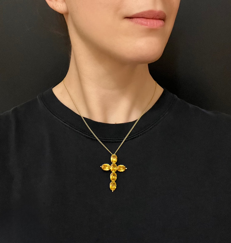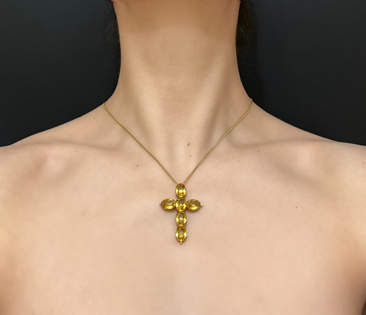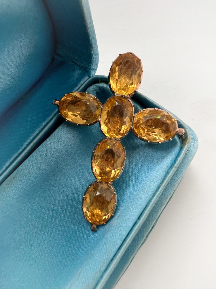 A pretty Georgian cross pendant set with golden yellow paste stones.