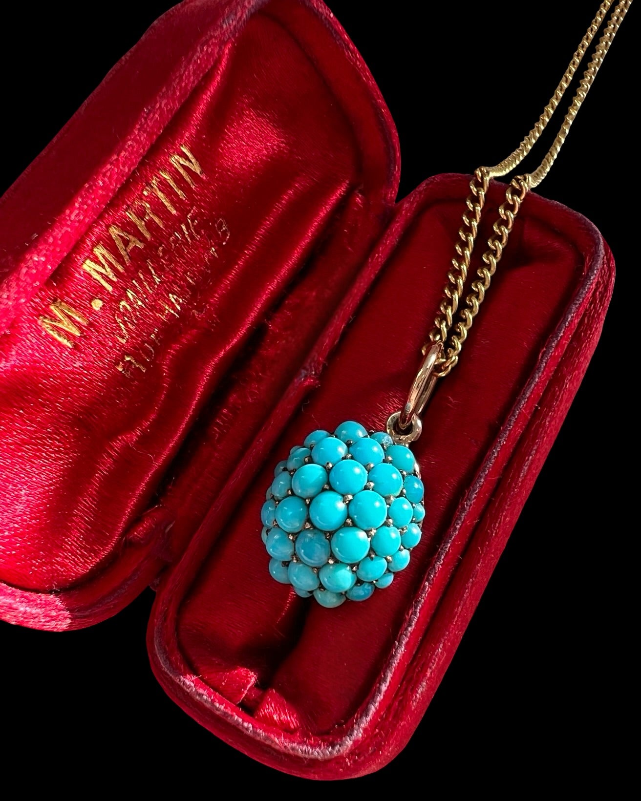 Pavé turquoise jewellery was extremely popular from the mid to late Victorian period. It was used in pendants, bracelets, full necklaces and rings.