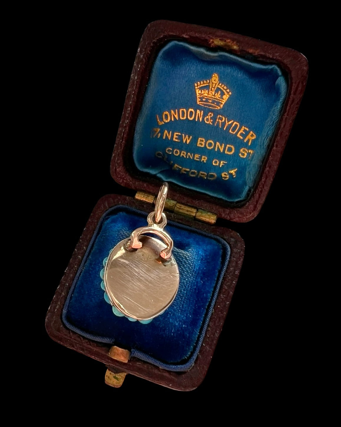 The reverse of the pendant is made of a flat oval 15ct gold, which ensures the pendant sits well when worn.