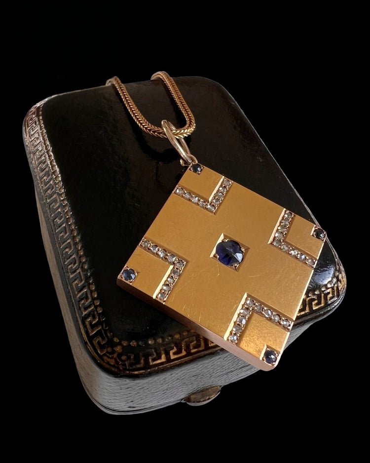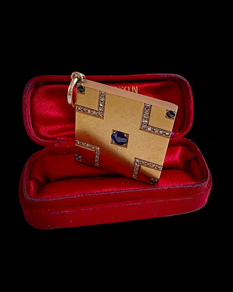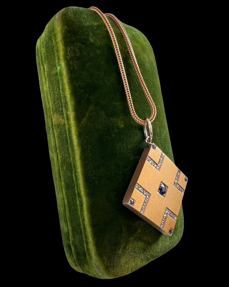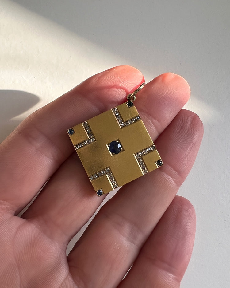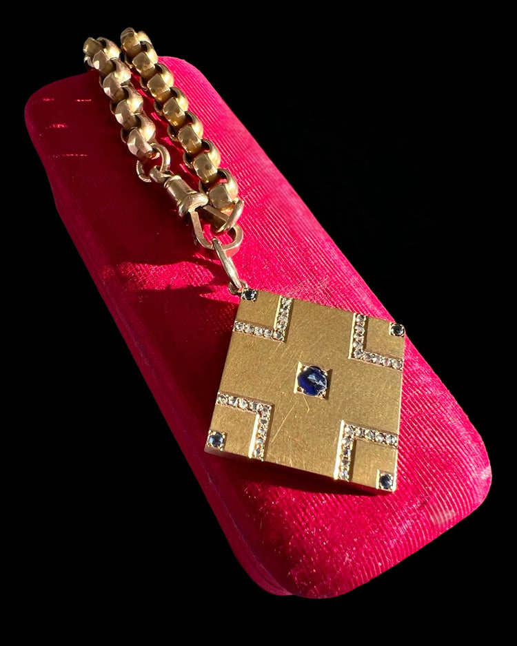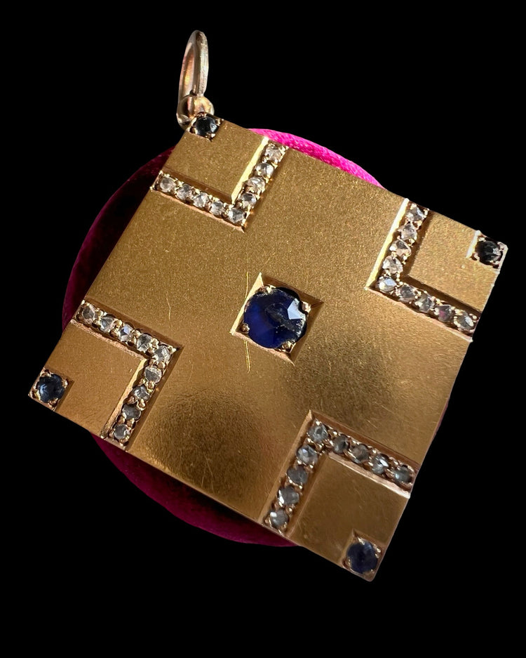 VICTORIAN SAPPHIRE & DIAMOND SQUARE SLAB PENDANT