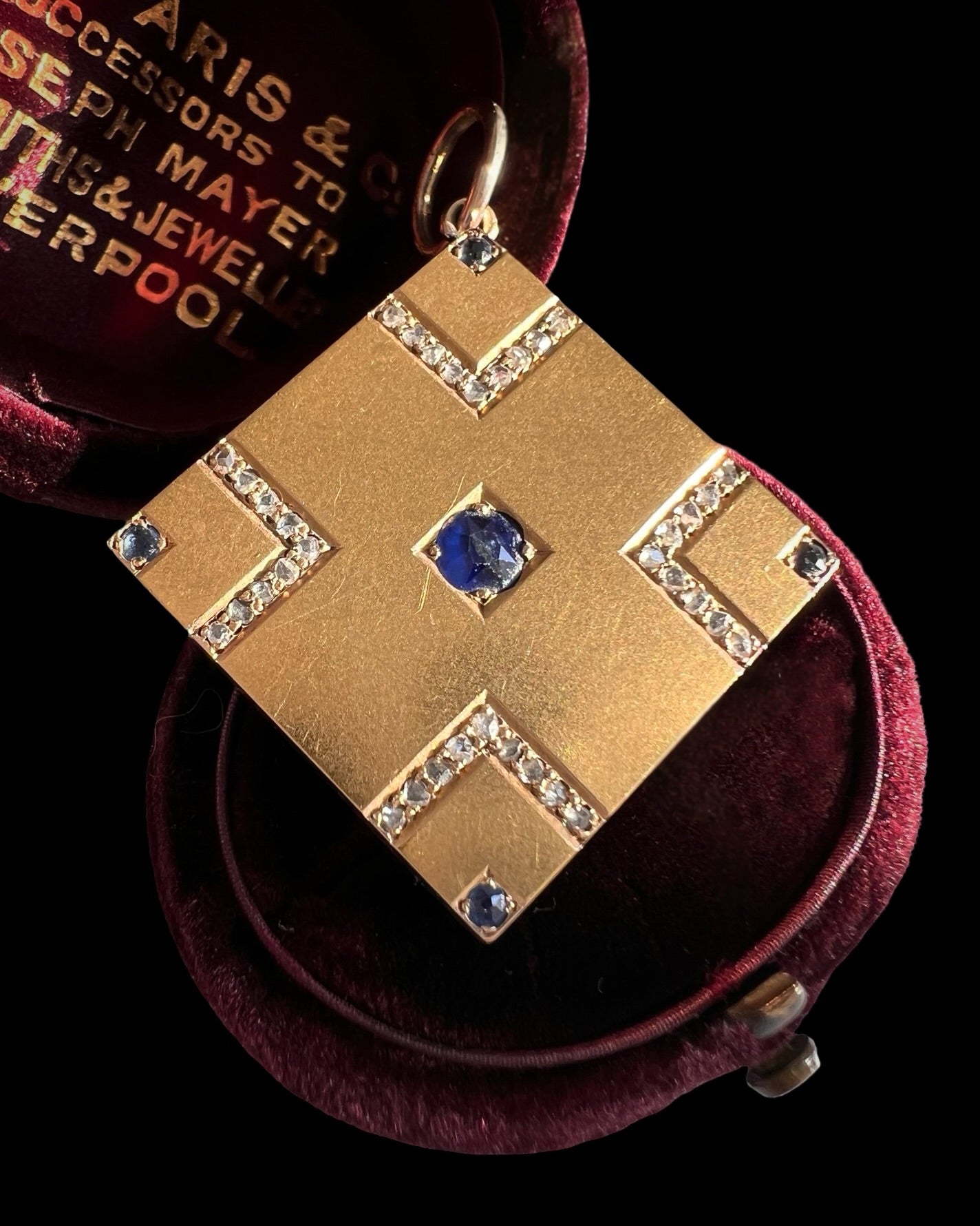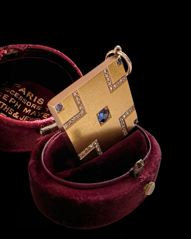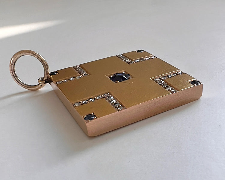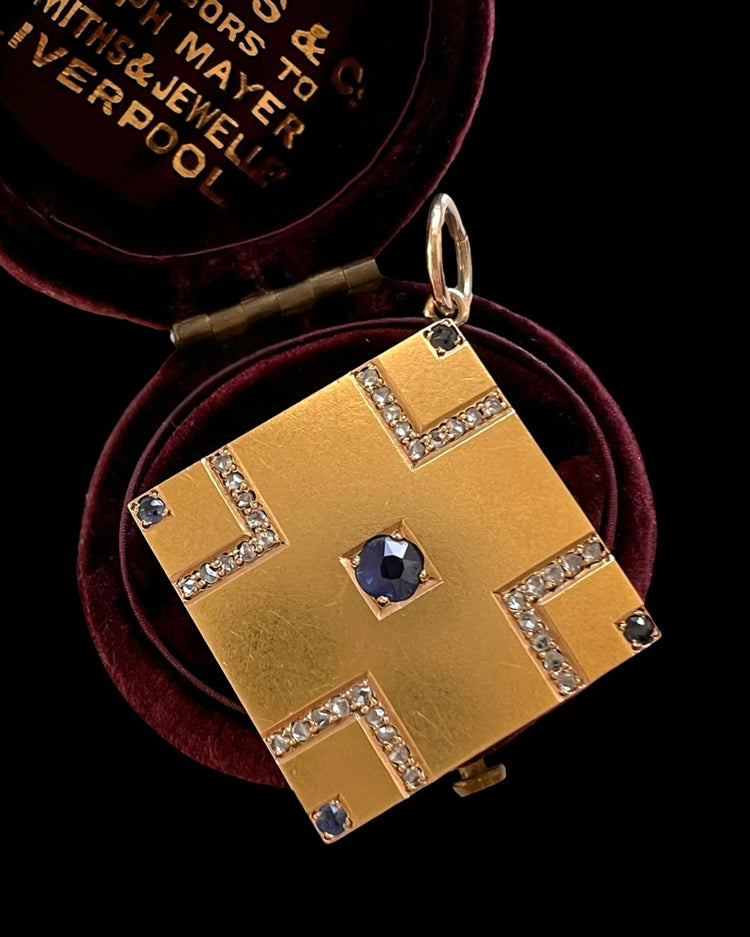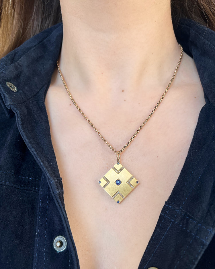 VICTORIAN SAPPHIRE & DIAMOND SQUARE SLAB PENDANT