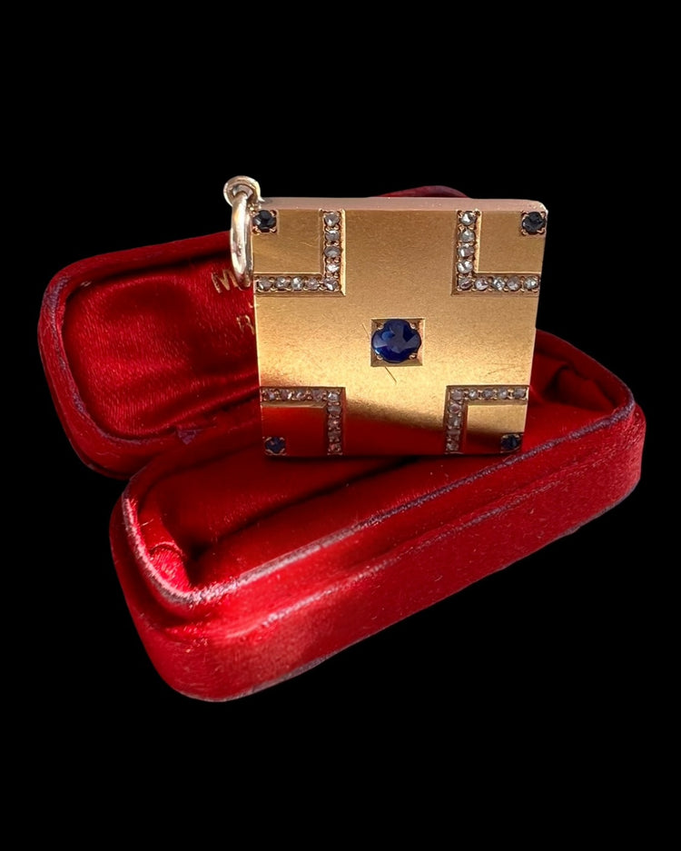 A superb Victorian 18ct gold square pendant.