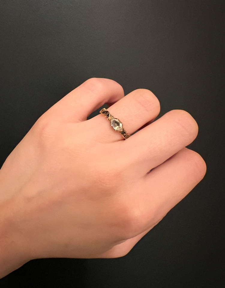 We recommend removing pieces of jewellery before washing hands or showering, as water can damage the antique settings.