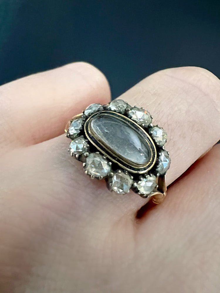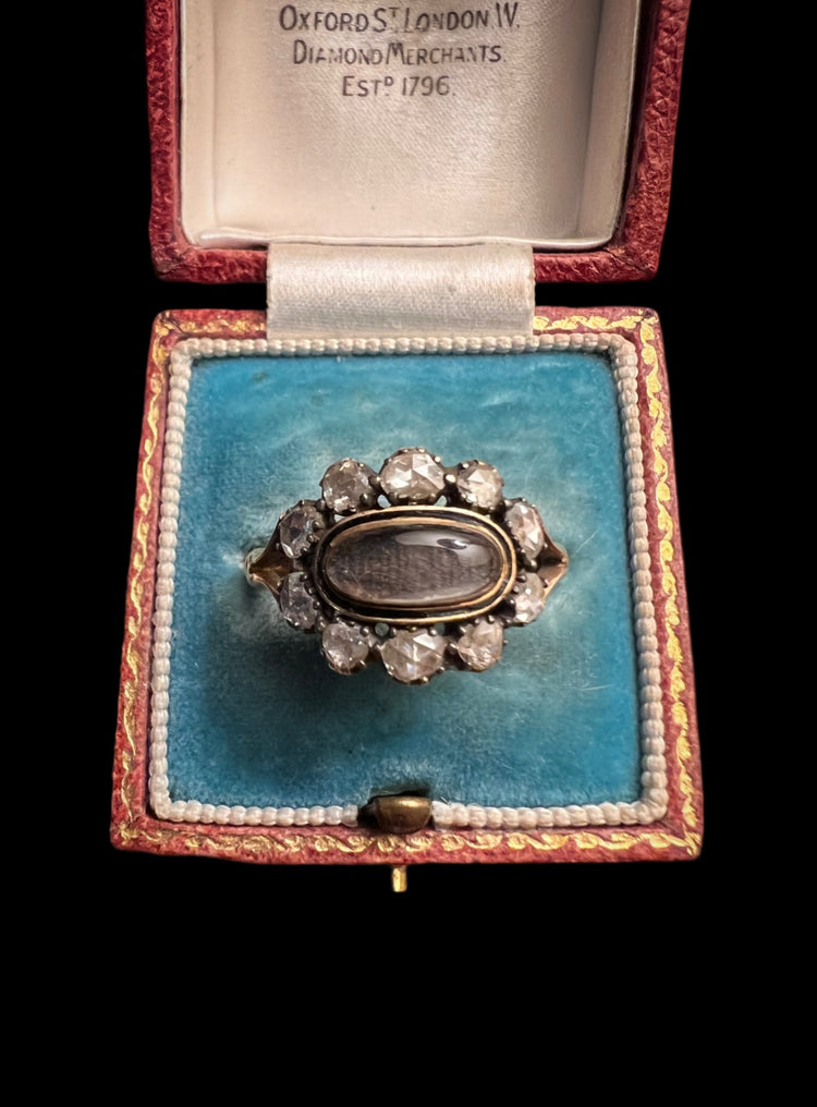 A stunning Georgian Rose cut Diamond sentimental ring c.1800.