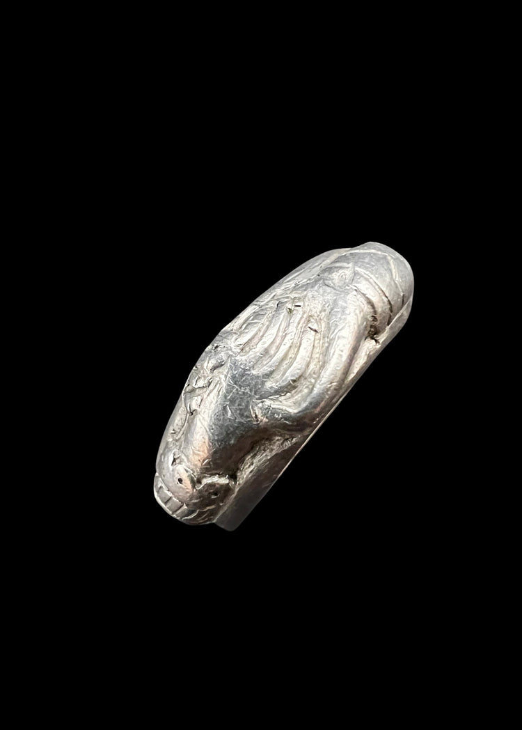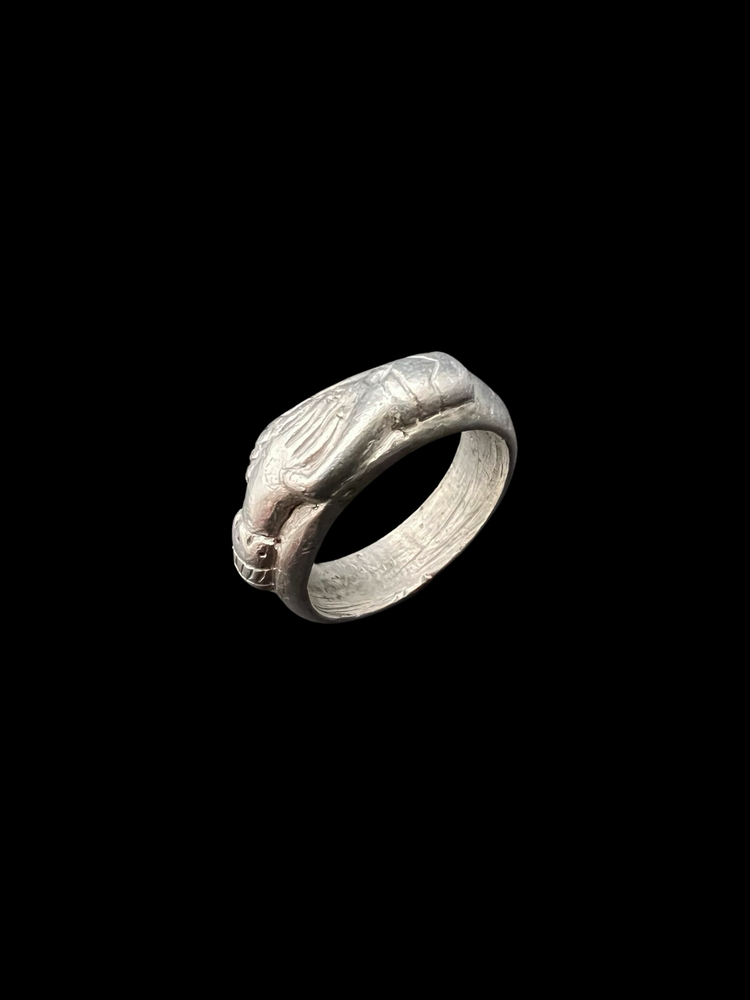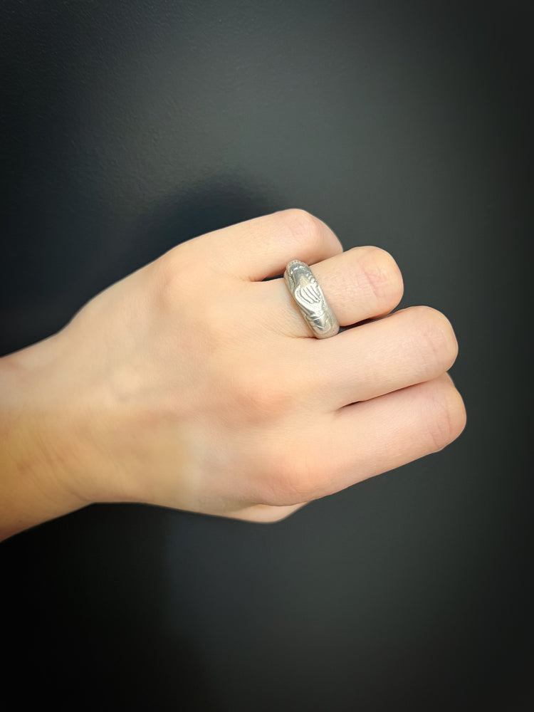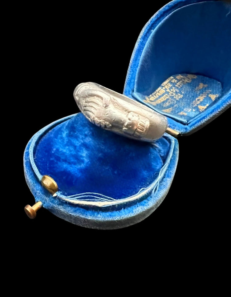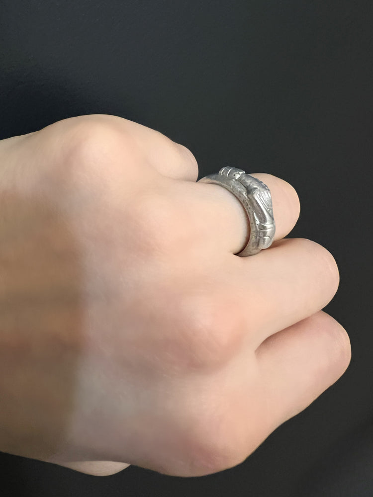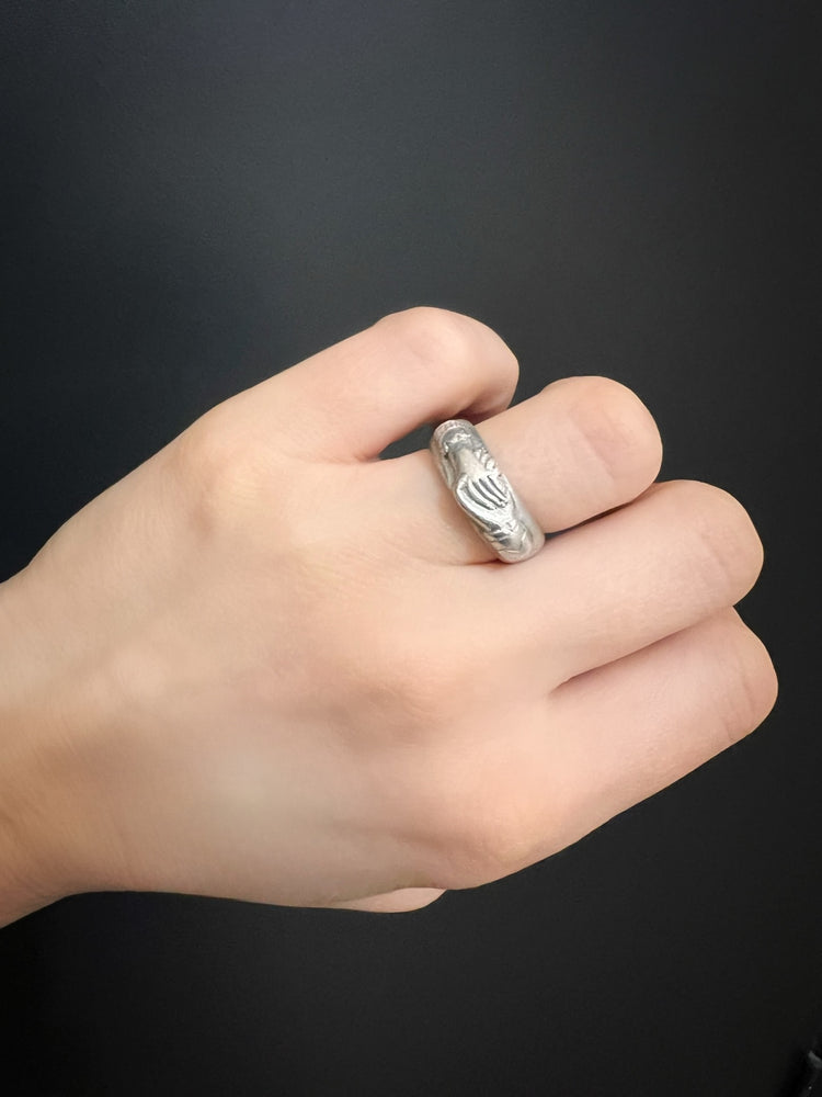 A fascinating trench art ring made of aluminium in the form of a Fede of clasped hands.