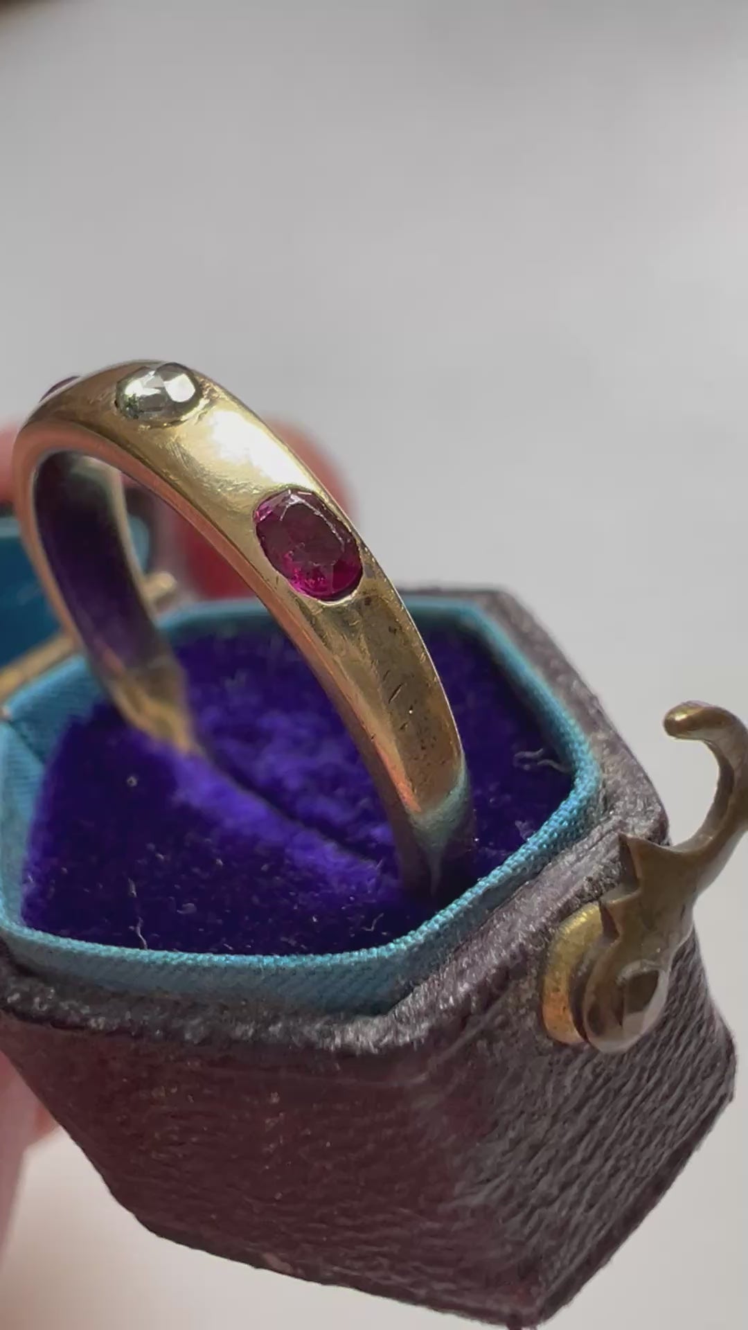 VICTORIAN RUBY & DIAMOND FIVE STONE FLUSH SET RING