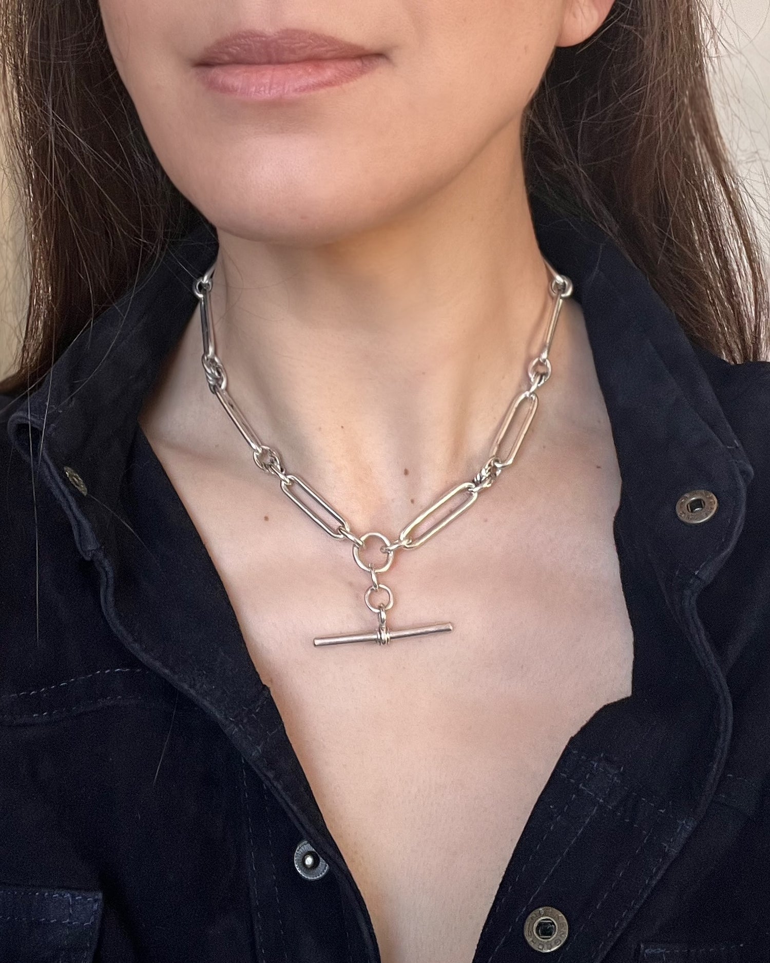 The paperclip links are a great size, and are joined by a combination of lovers knots, and simple chunky belcher links.