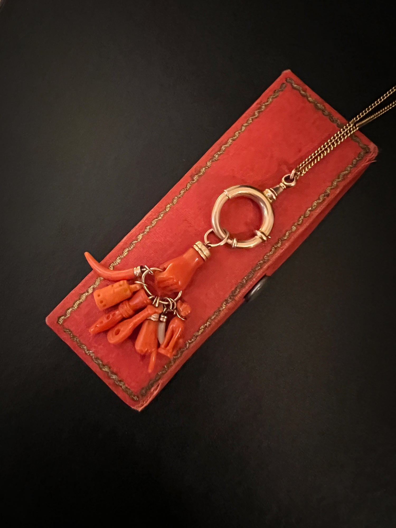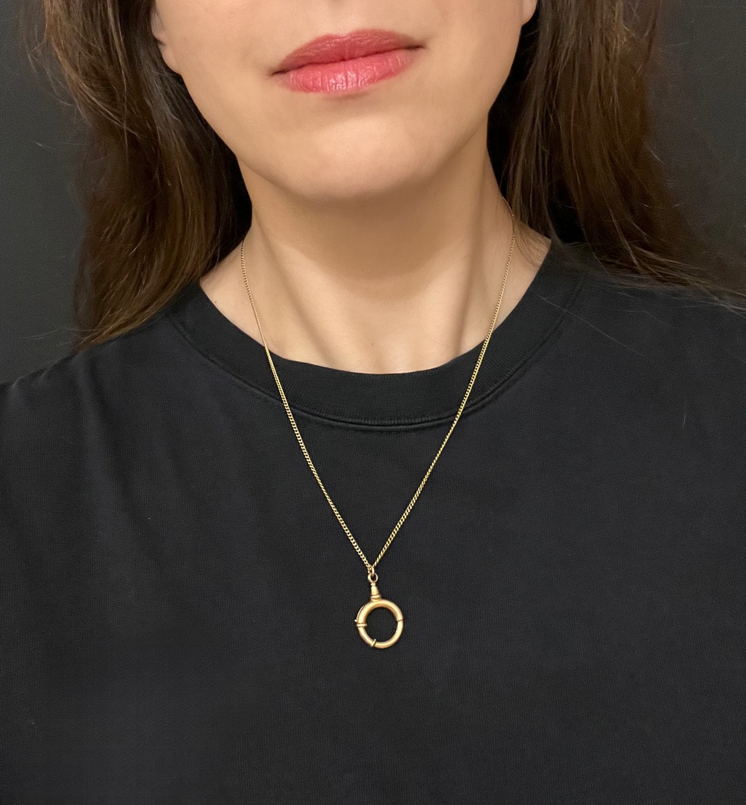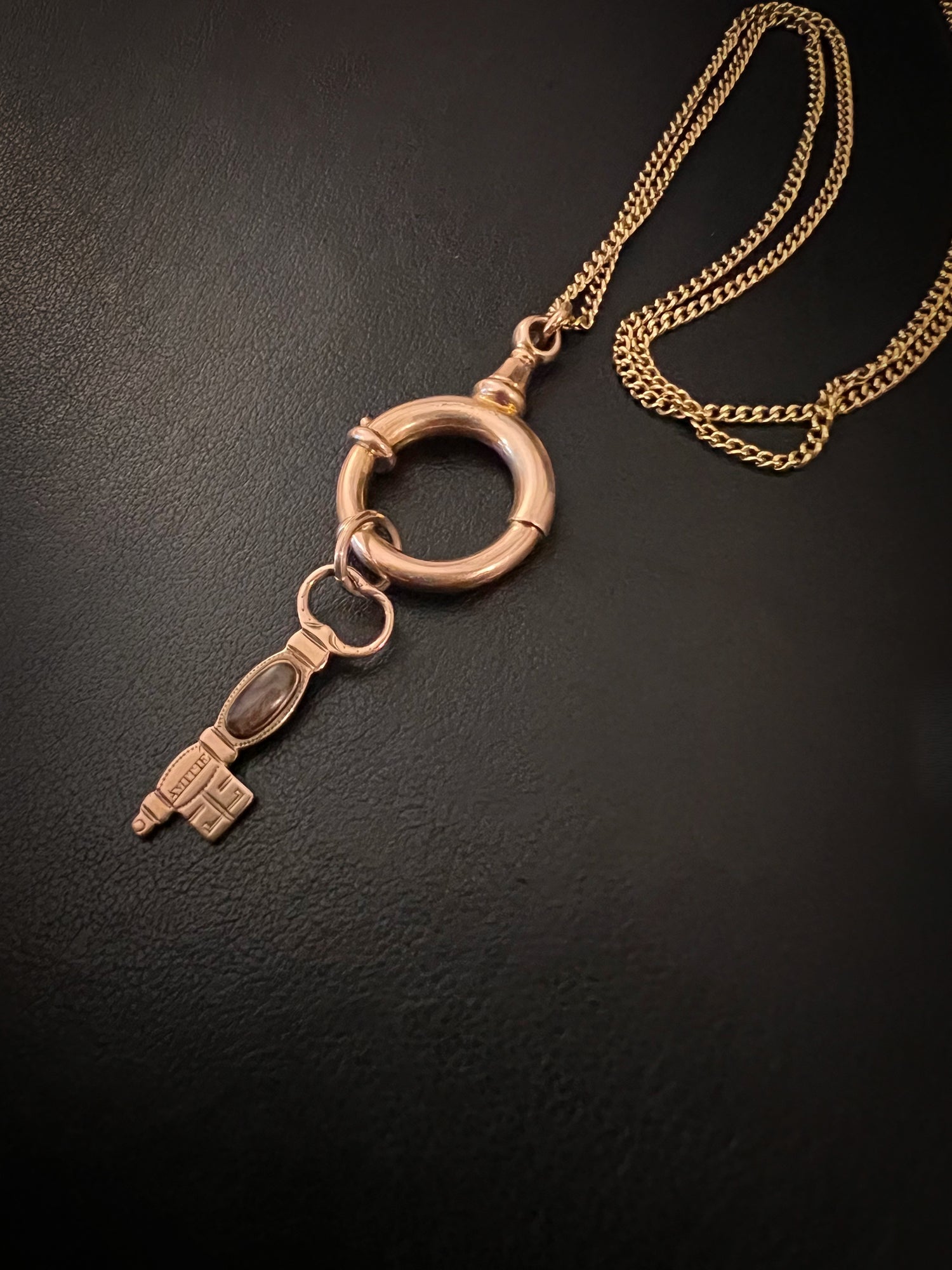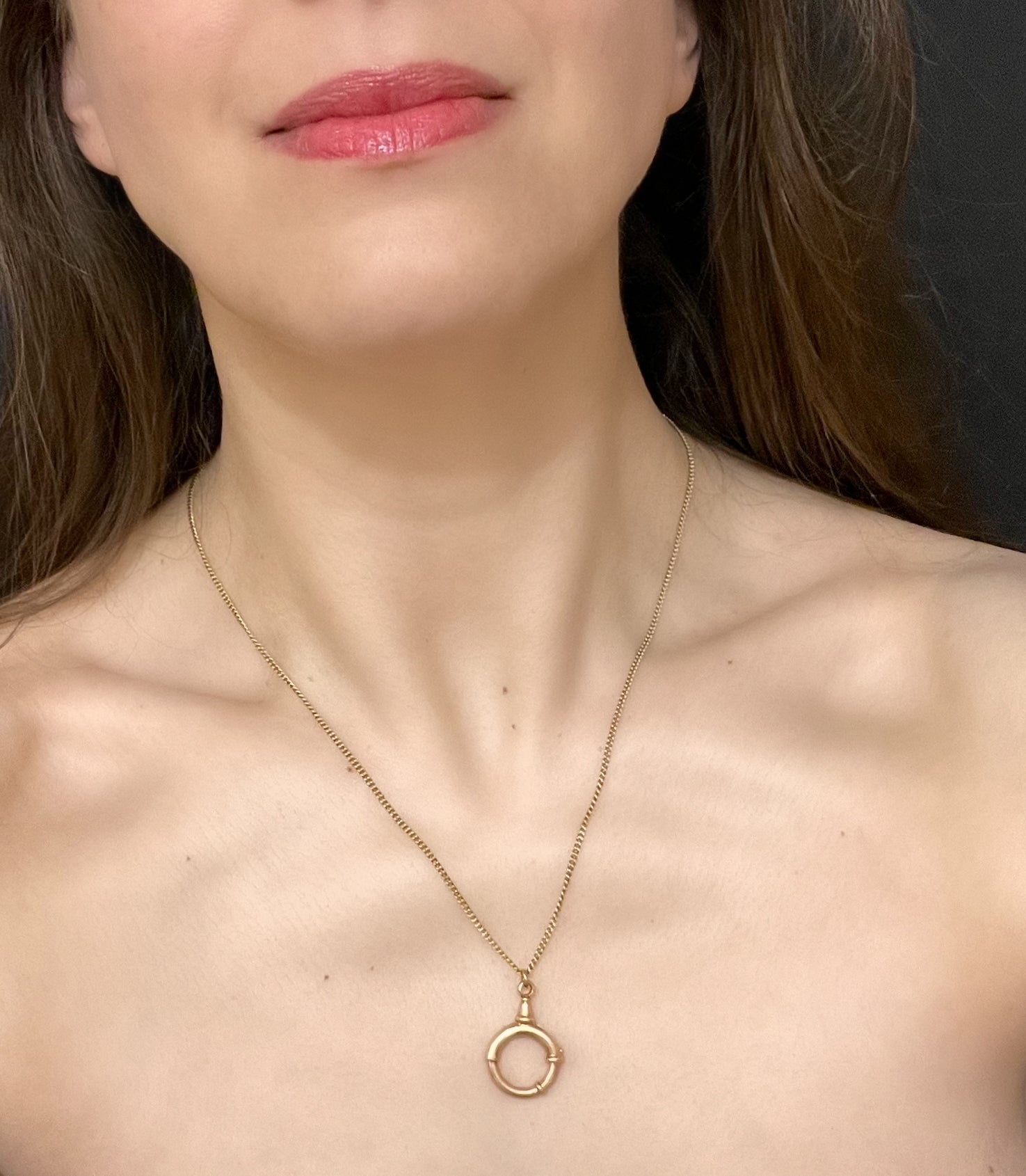 This design is rare as the large spring bolt has the neck of a dog clip, which looks great as a bail to hang charms from.