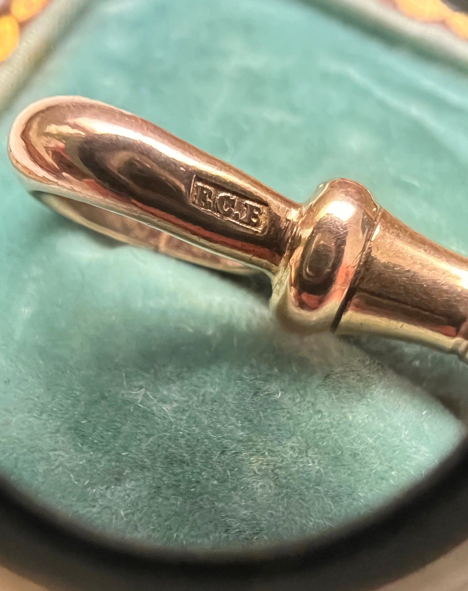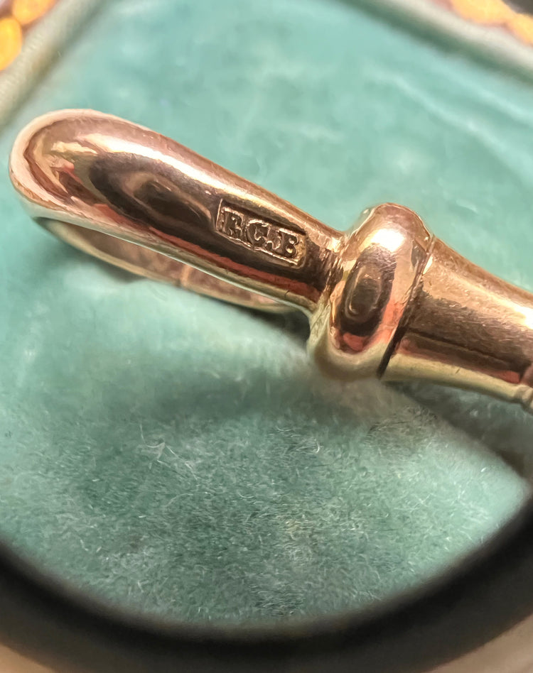 The dogclip is hallmarked for 9ct gold, and has the makers mark E.C.E