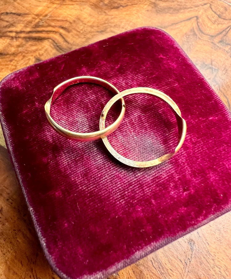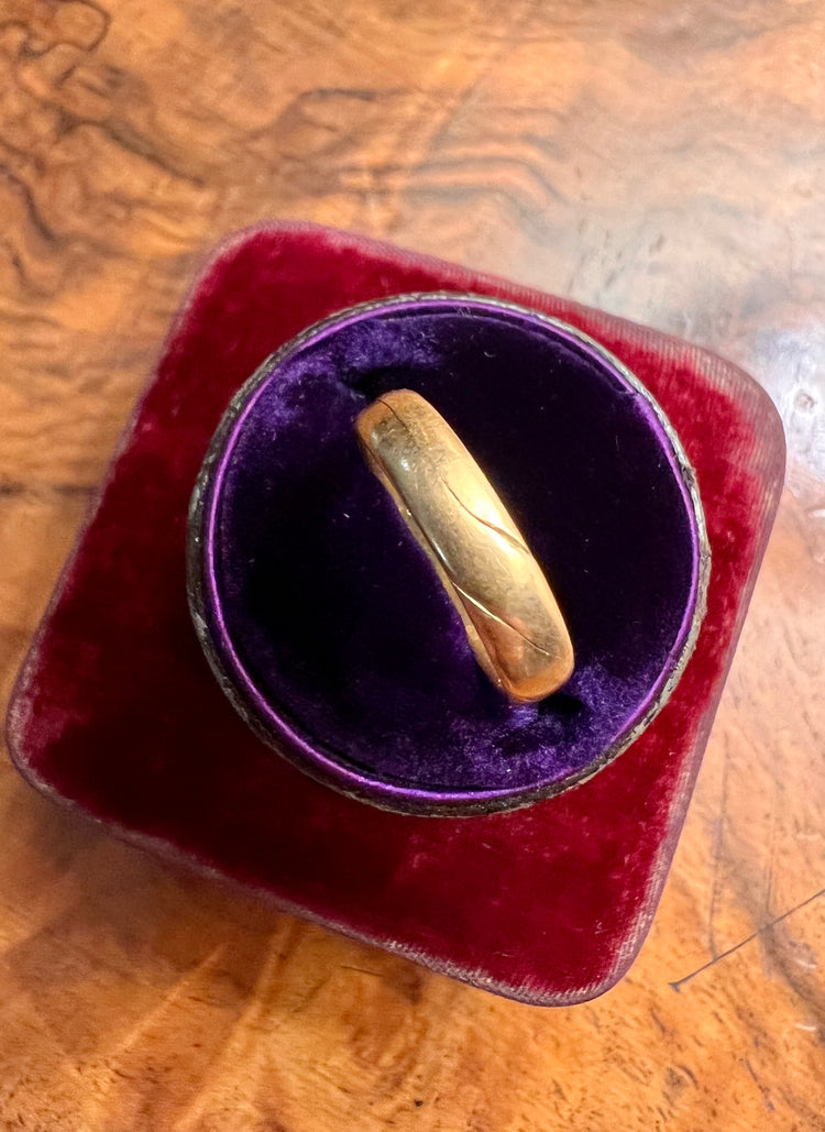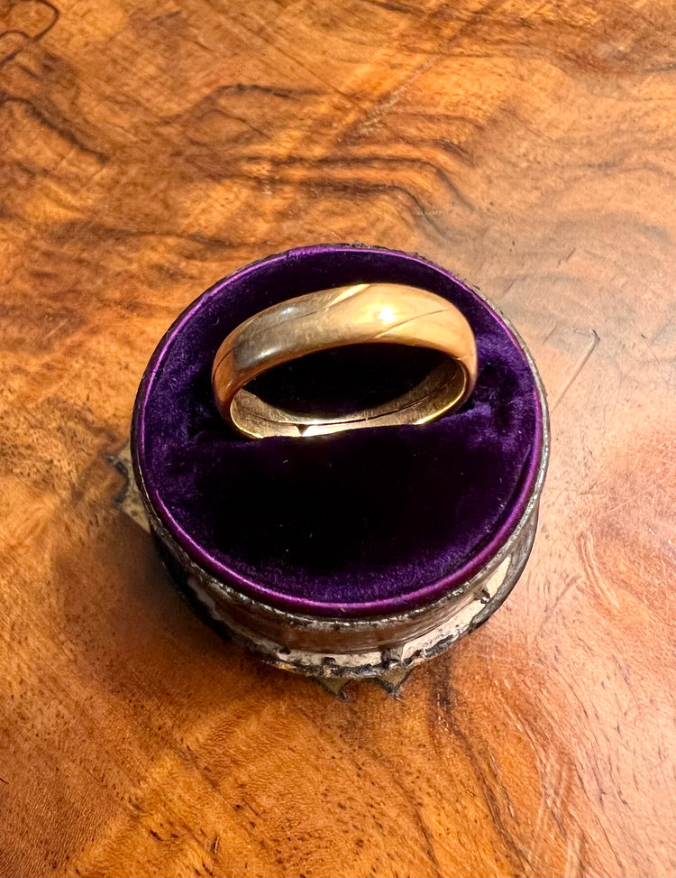 This one is a smooth, slightly rounded high carat gold band, which rarely hasn’t been engraved!