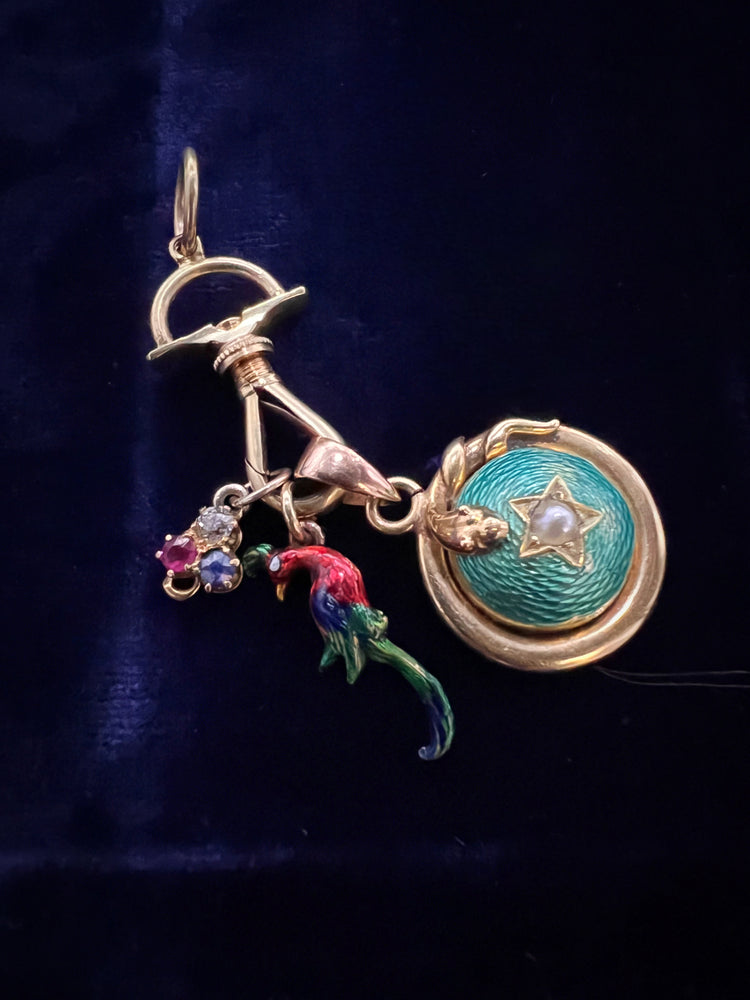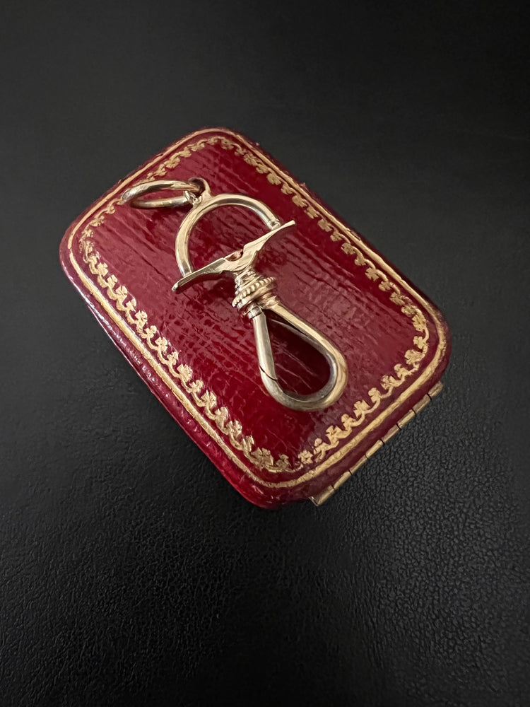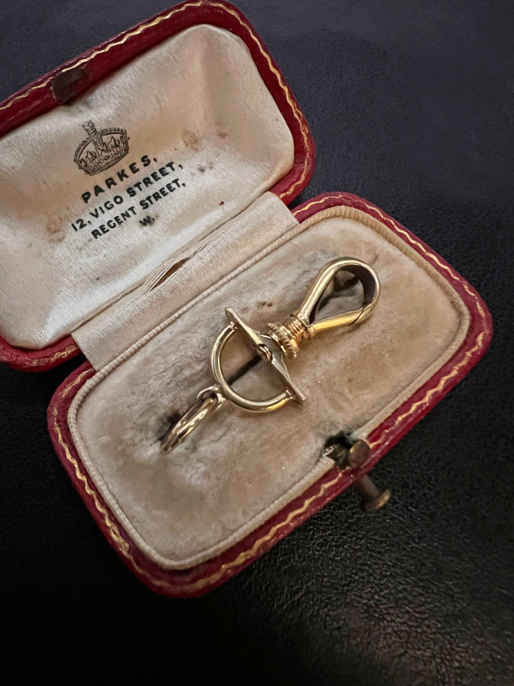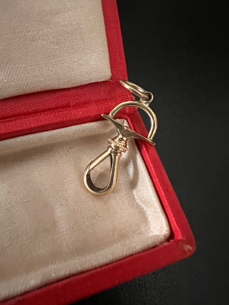 The clasp is originally from a Georgian chatelaine, and has been converted so it can be used as a charm holder or chain extender.