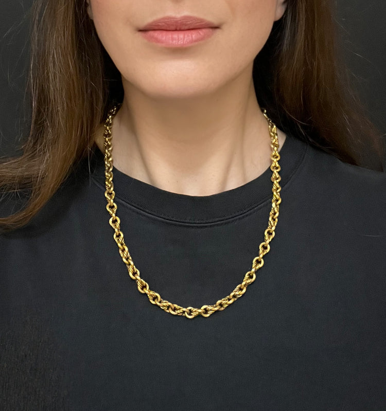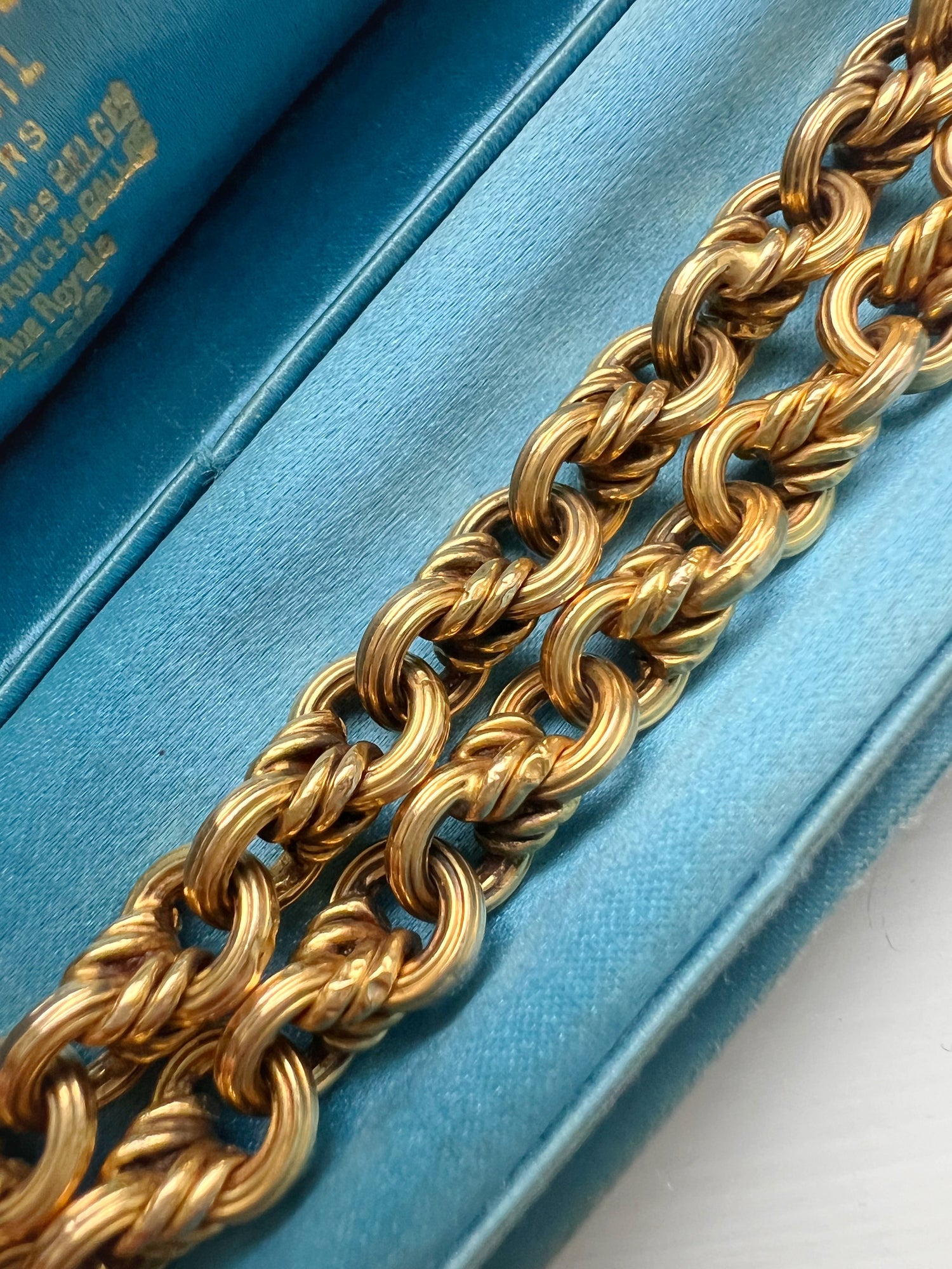 The chain is hallmarked with the Russian mark ‘56’ for 14ct gold, as well as additional Russian marks.