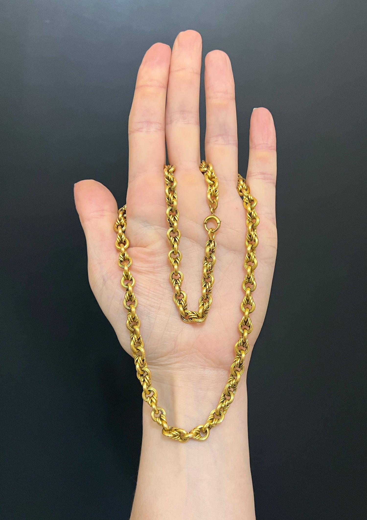 The link is really unique, alternating with a lovers knot link and gorgeous reeded belcher links.