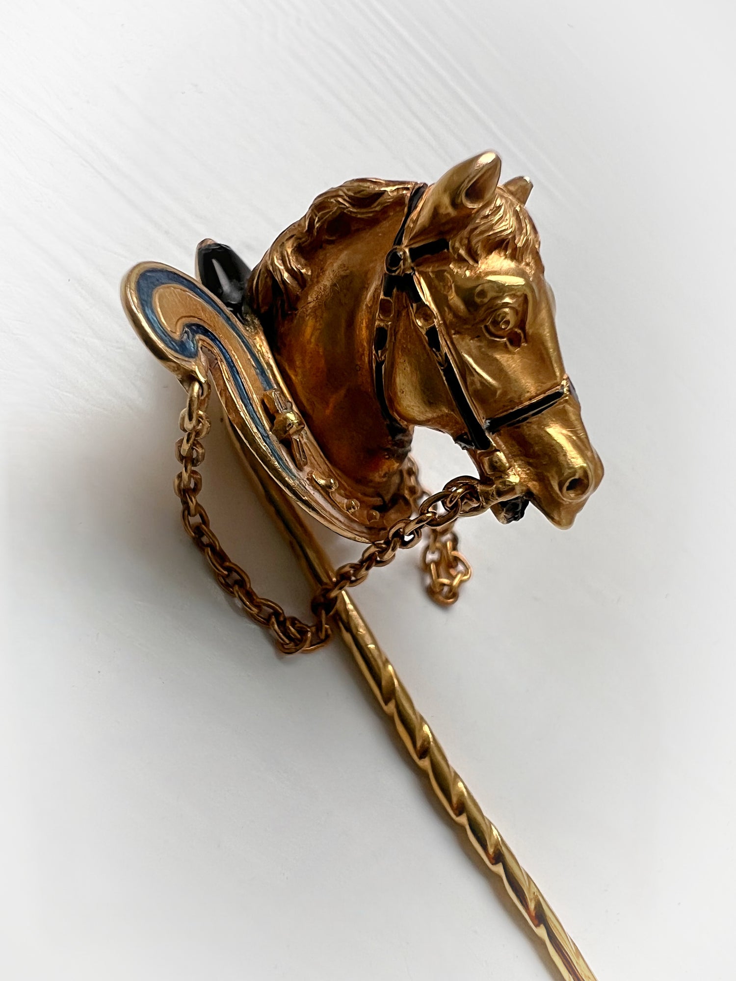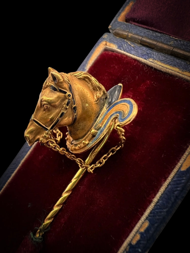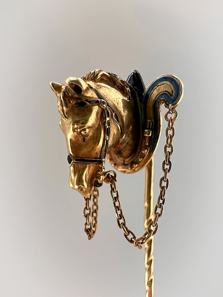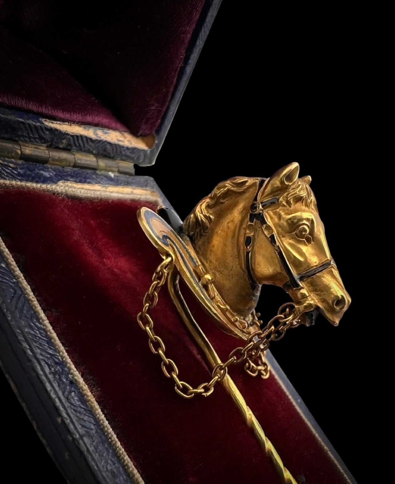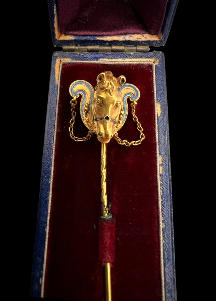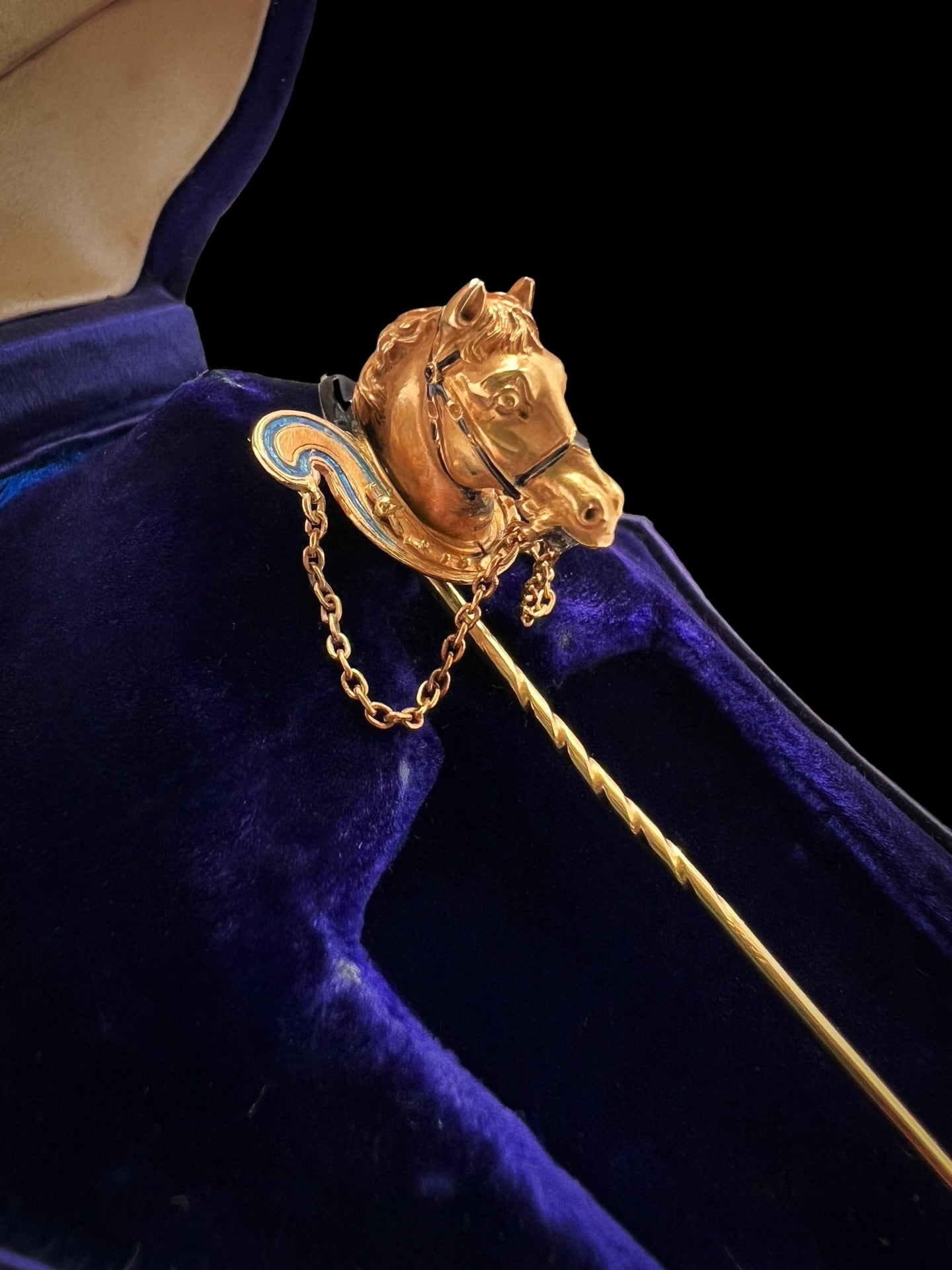 19TH CENTURY 18CT GOLD FRENCH HORSE HEAD STICK PIN
