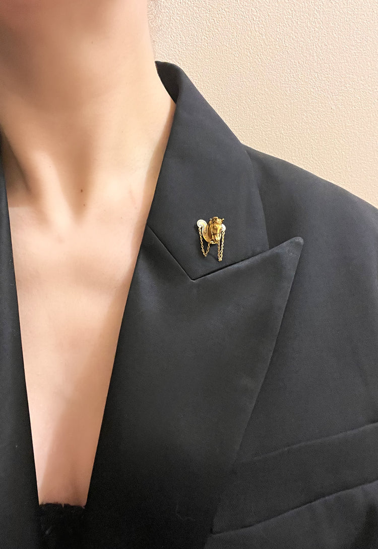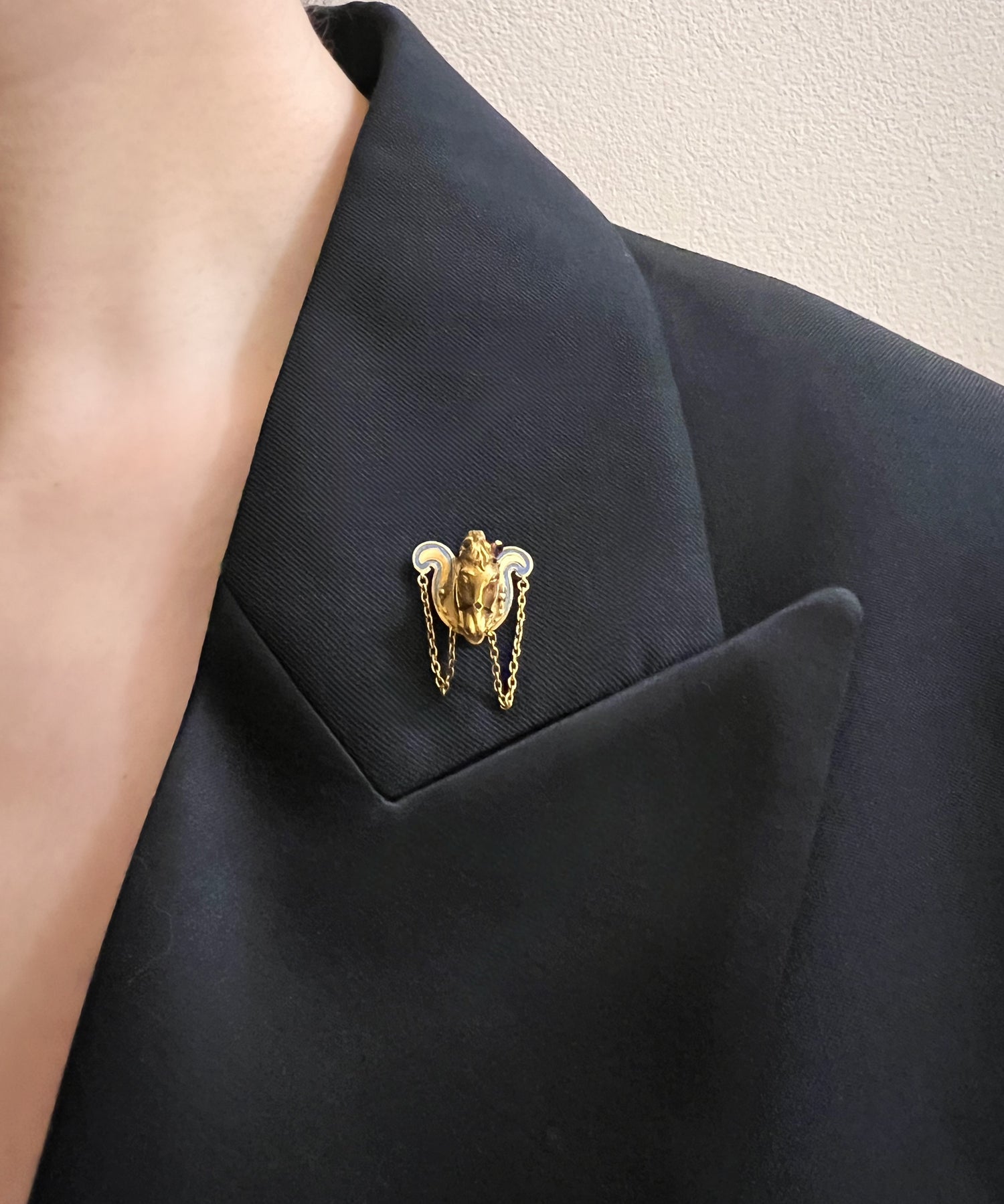 Crafted in 18ct gold, the carving is finely detailed and super realistic.