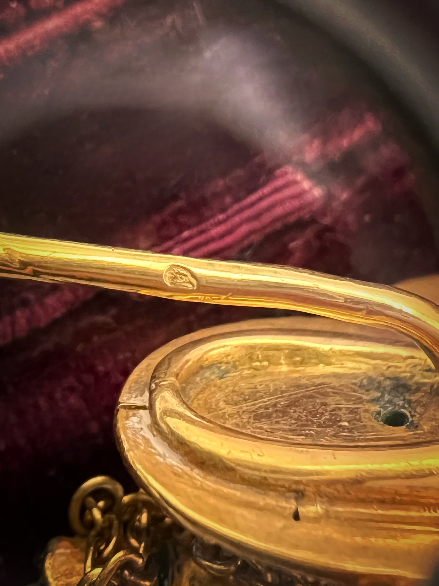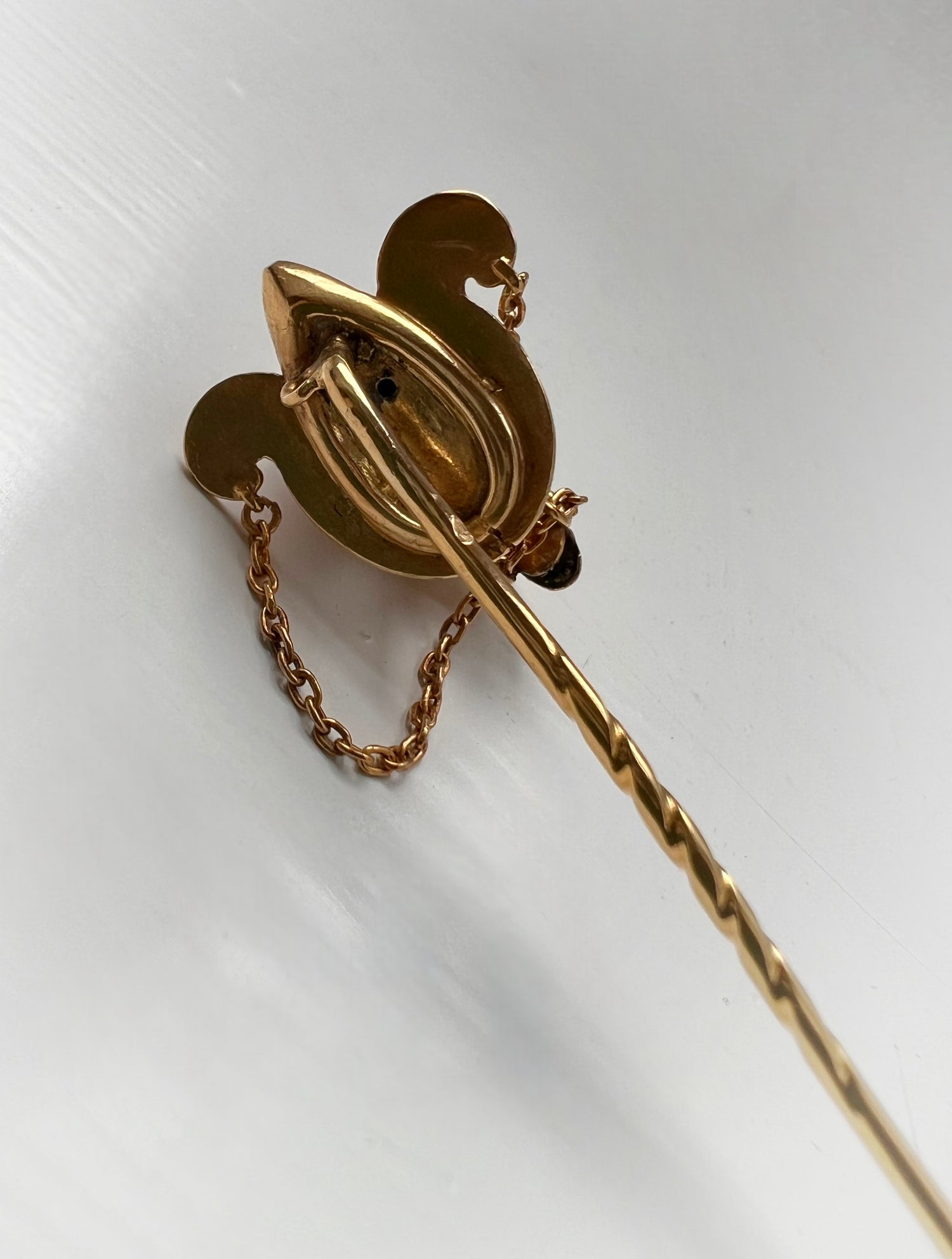 The pin also made of 18ct gold bears the French eagle head hallmark for 18ct gold.