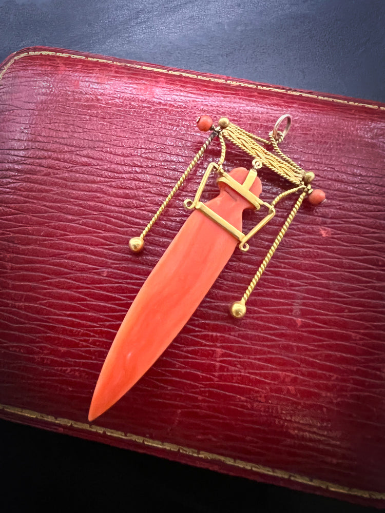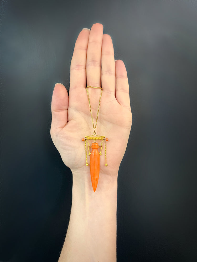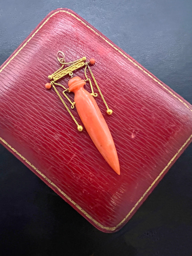 19TH CENTURY CORAL ETRUSCAN REVIVAL AMPHORA PENDANT