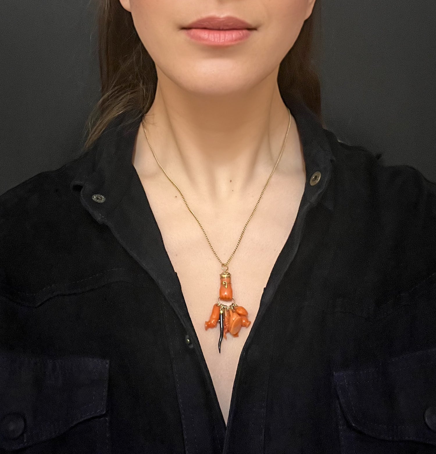 19TH CENTURY CORAL HAND PENDANT
