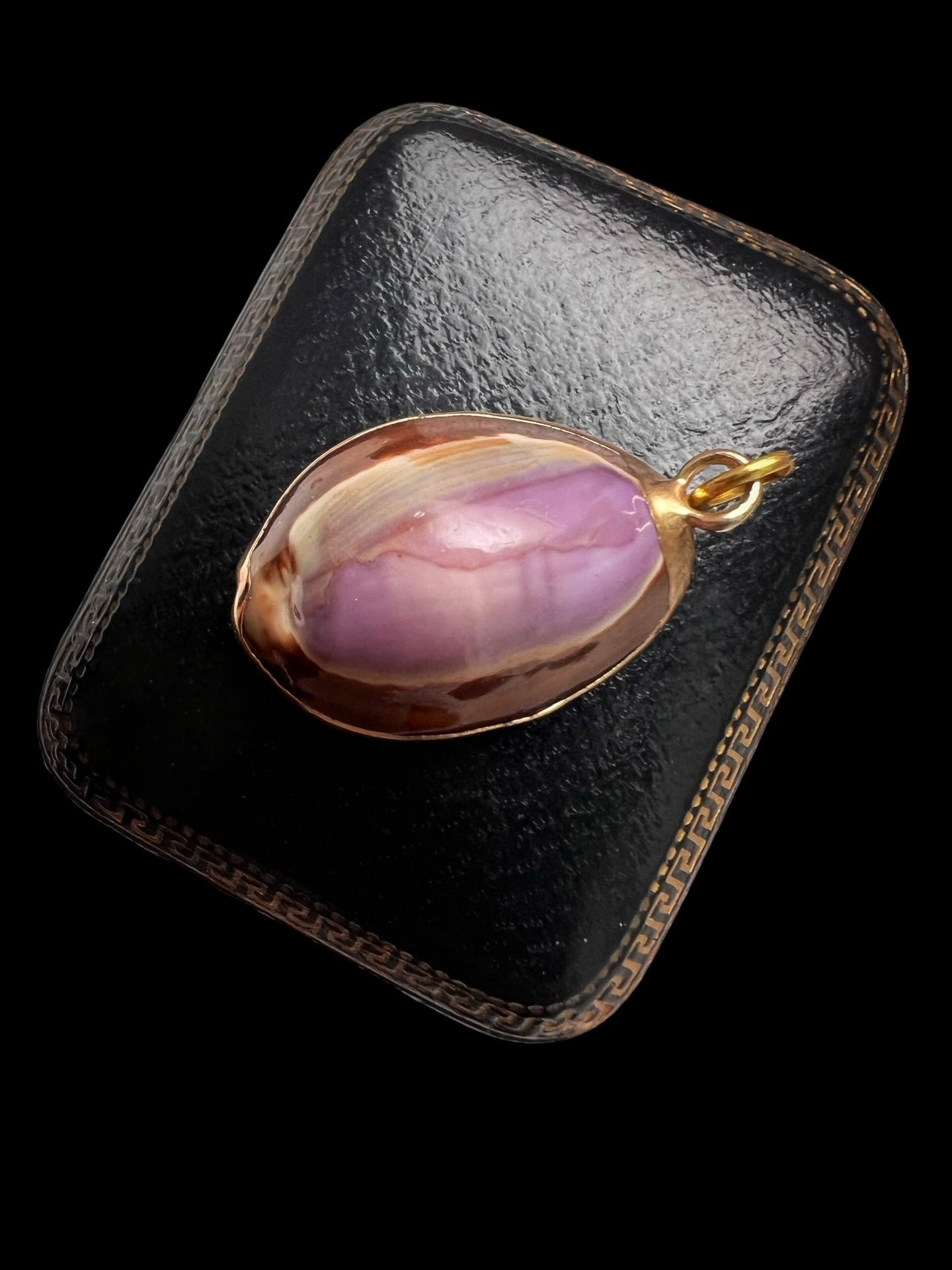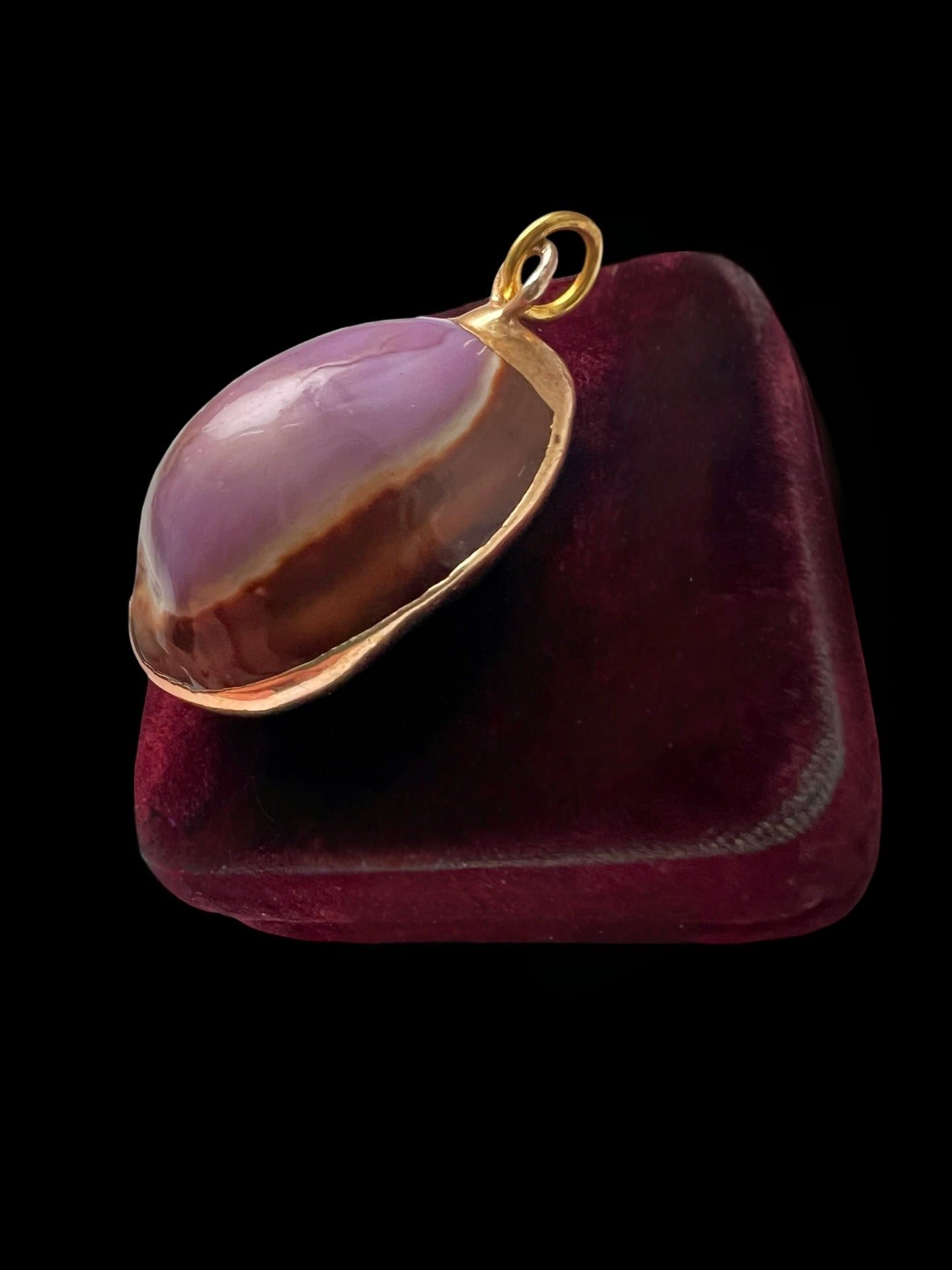 A gorgeous purple topped Tigre Cowrie shell pendant.