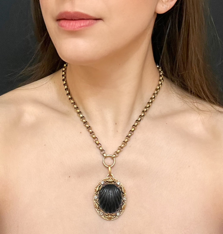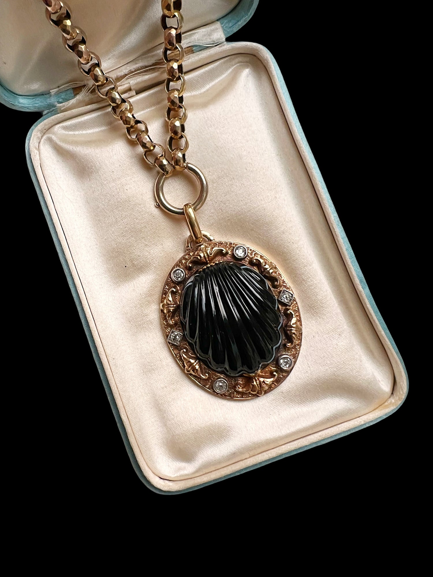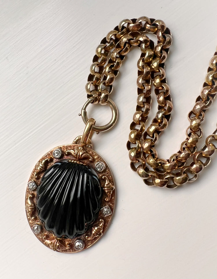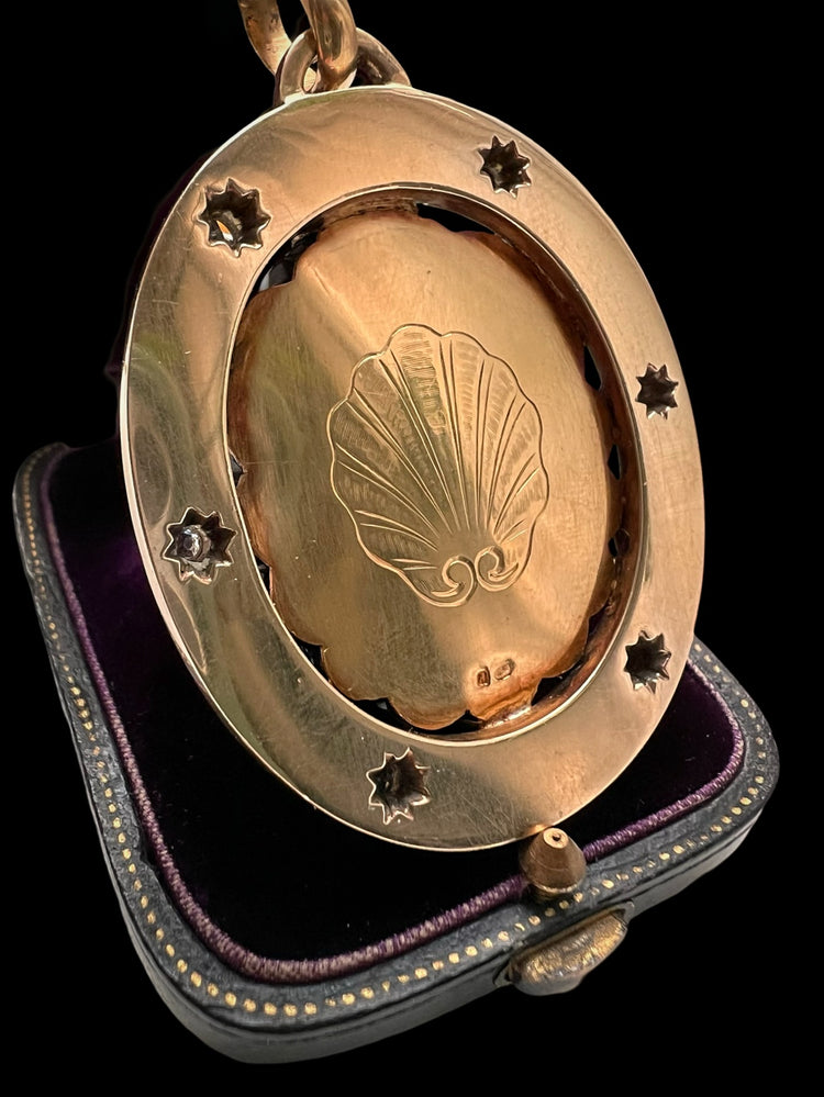 The reverse of the pendant is so charming, it has a beautiful shell design carved into the gold.