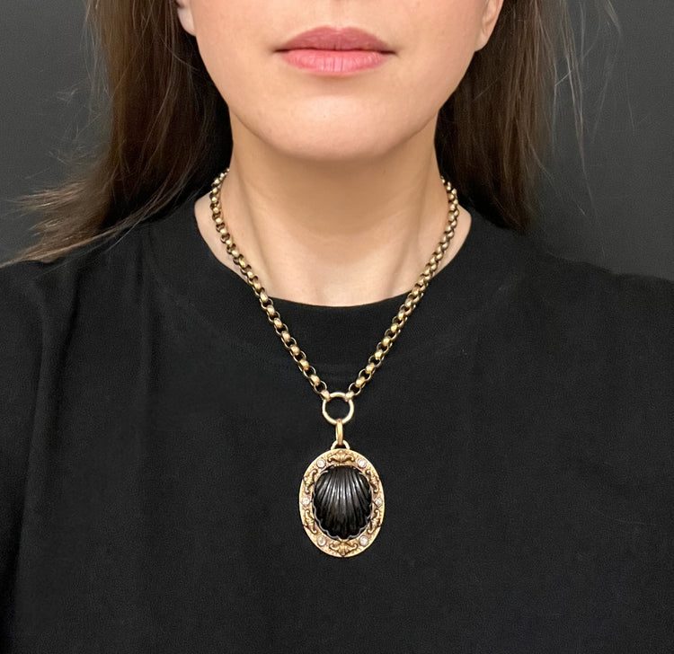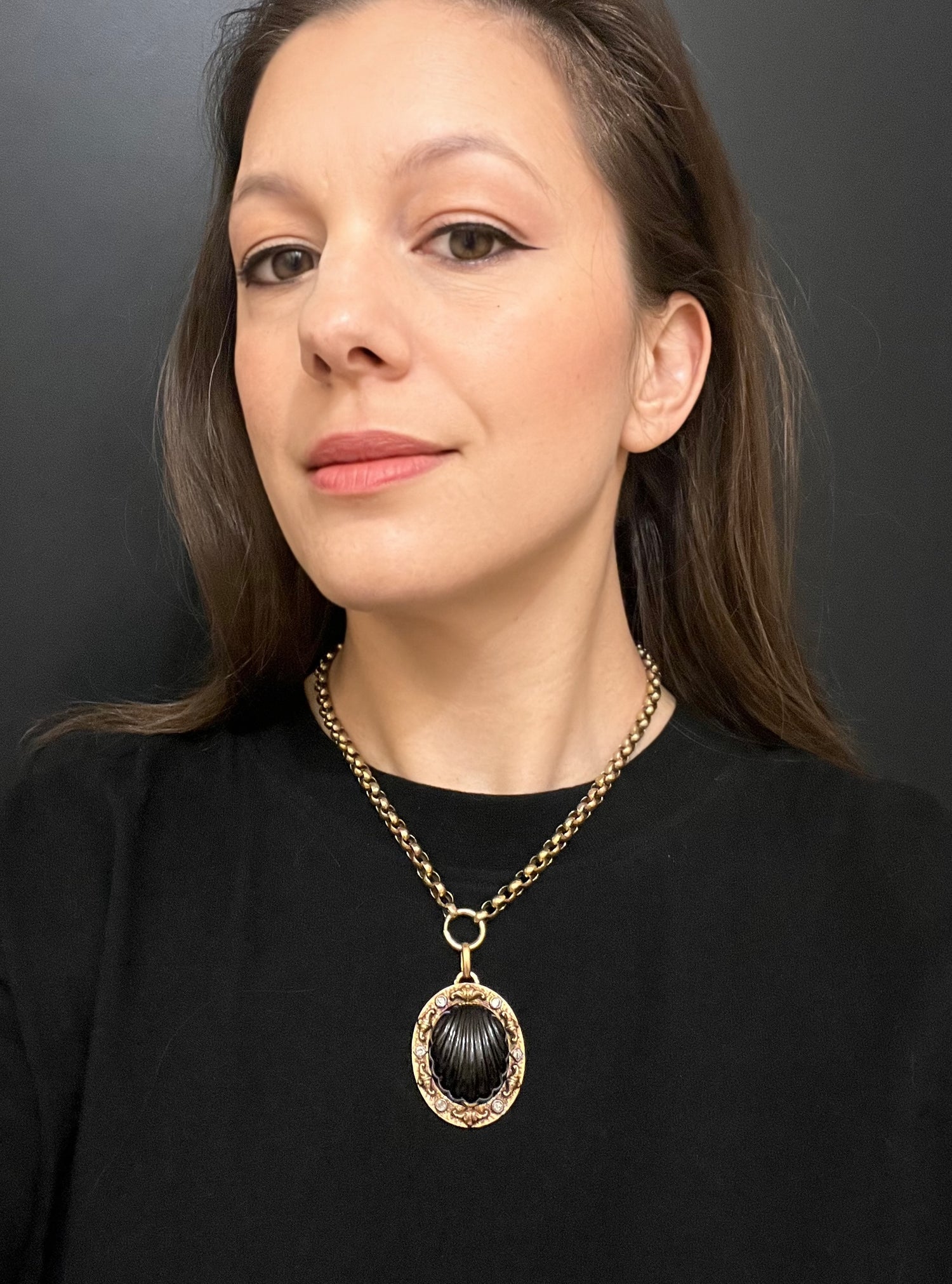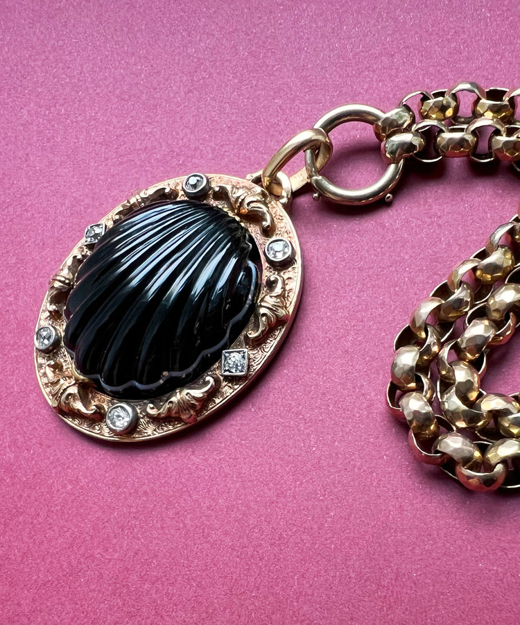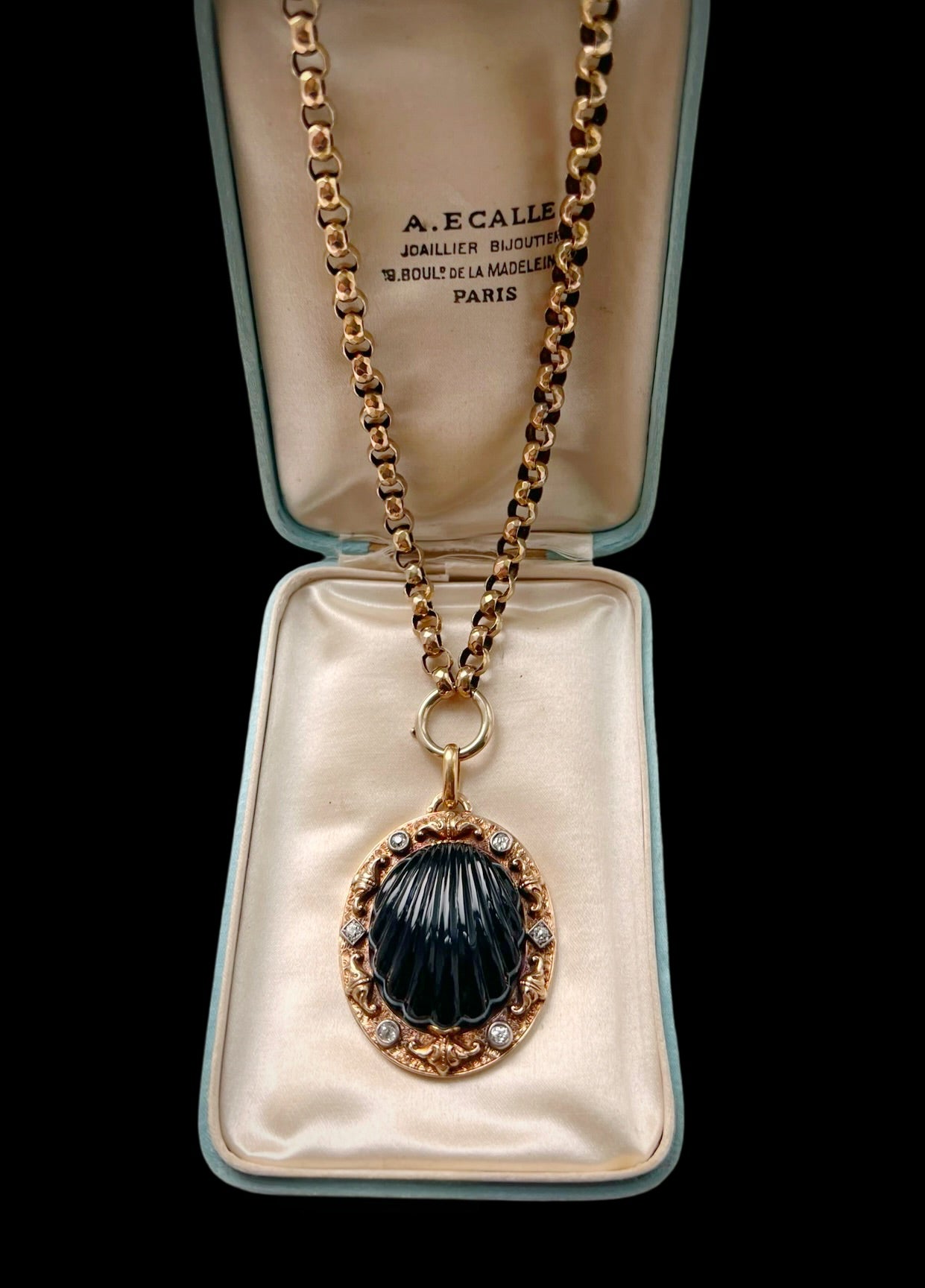The reverse of the pendant is so charming, it has a beautiful shell design carved into the gold.