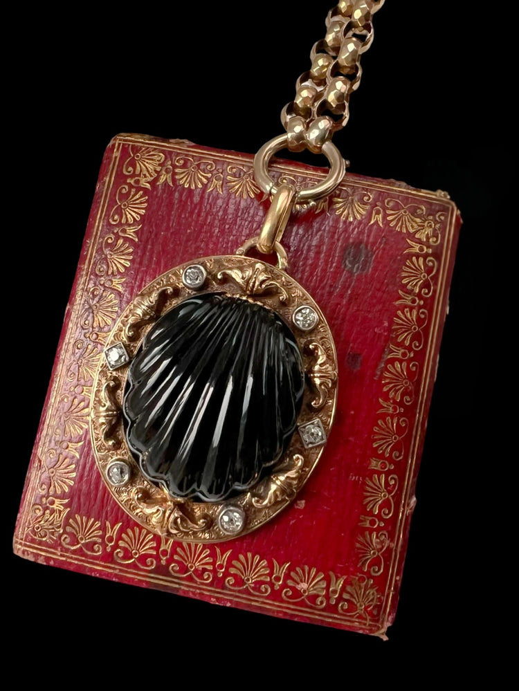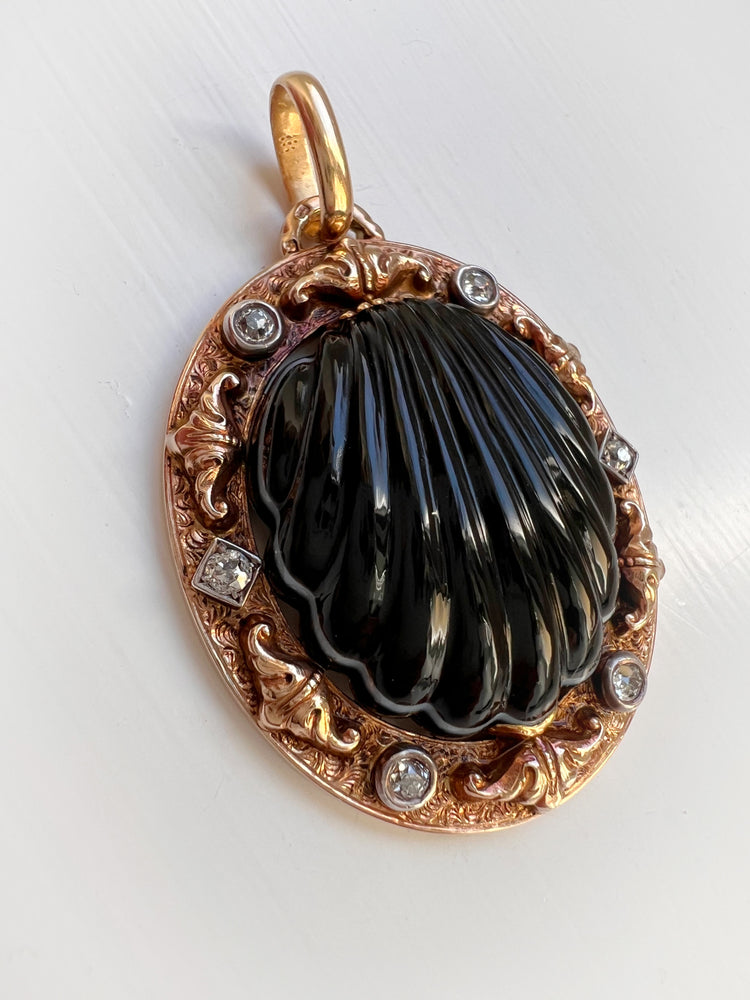 19TH CENTURY DIAMOND & BANDED AGATE SHELL PENDANT