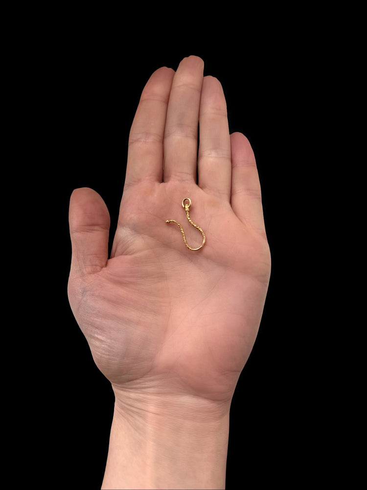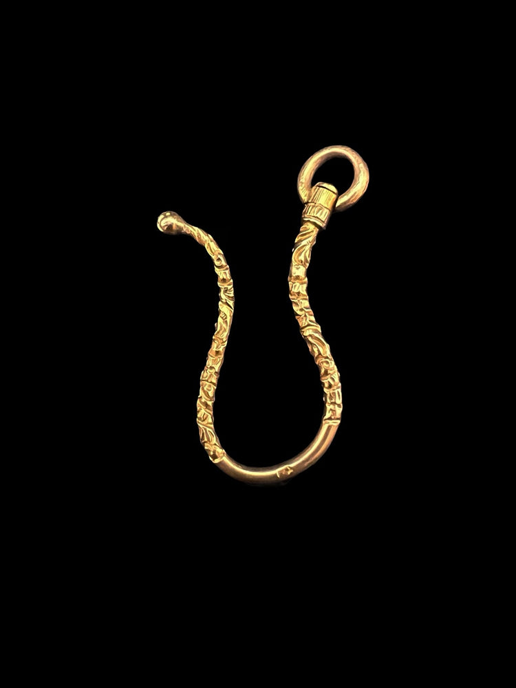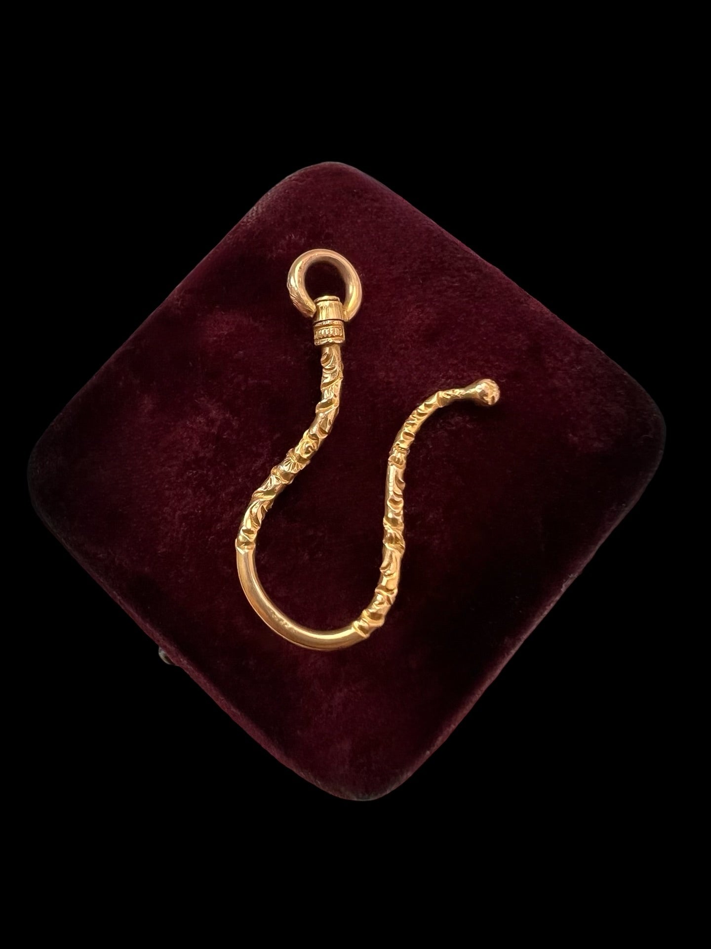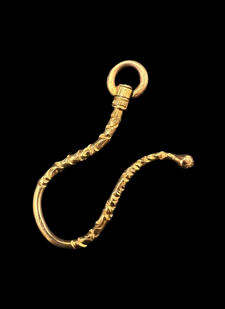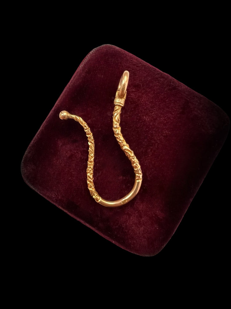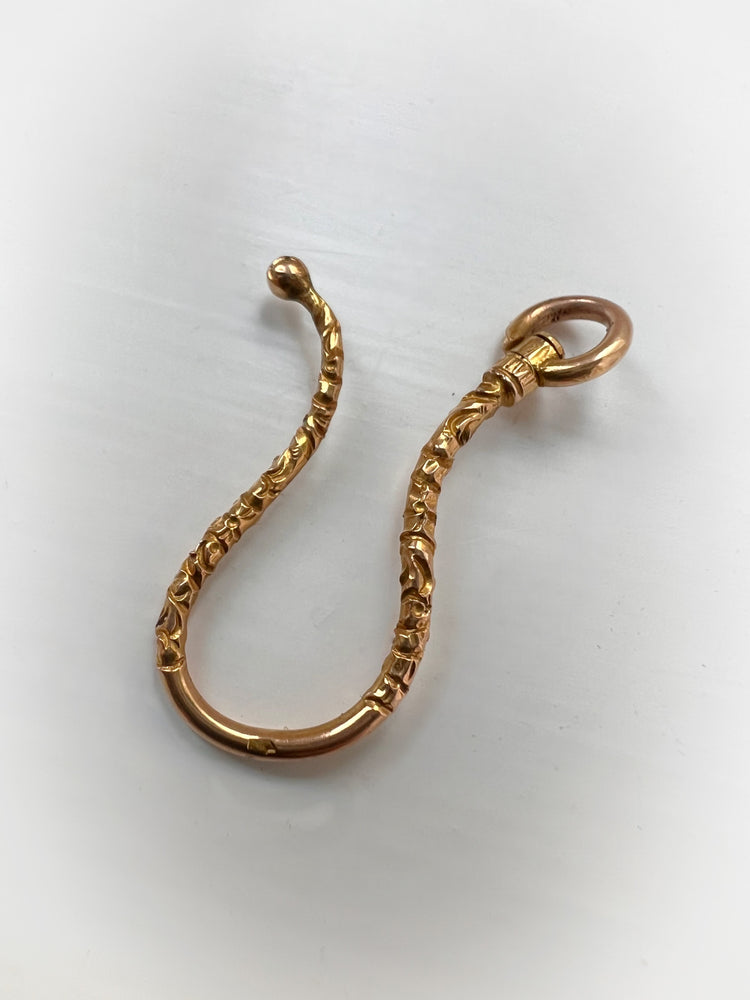 This is a stunning 18ct gold French hook with a wonderful chased foliage pattern over both sides of the hook.