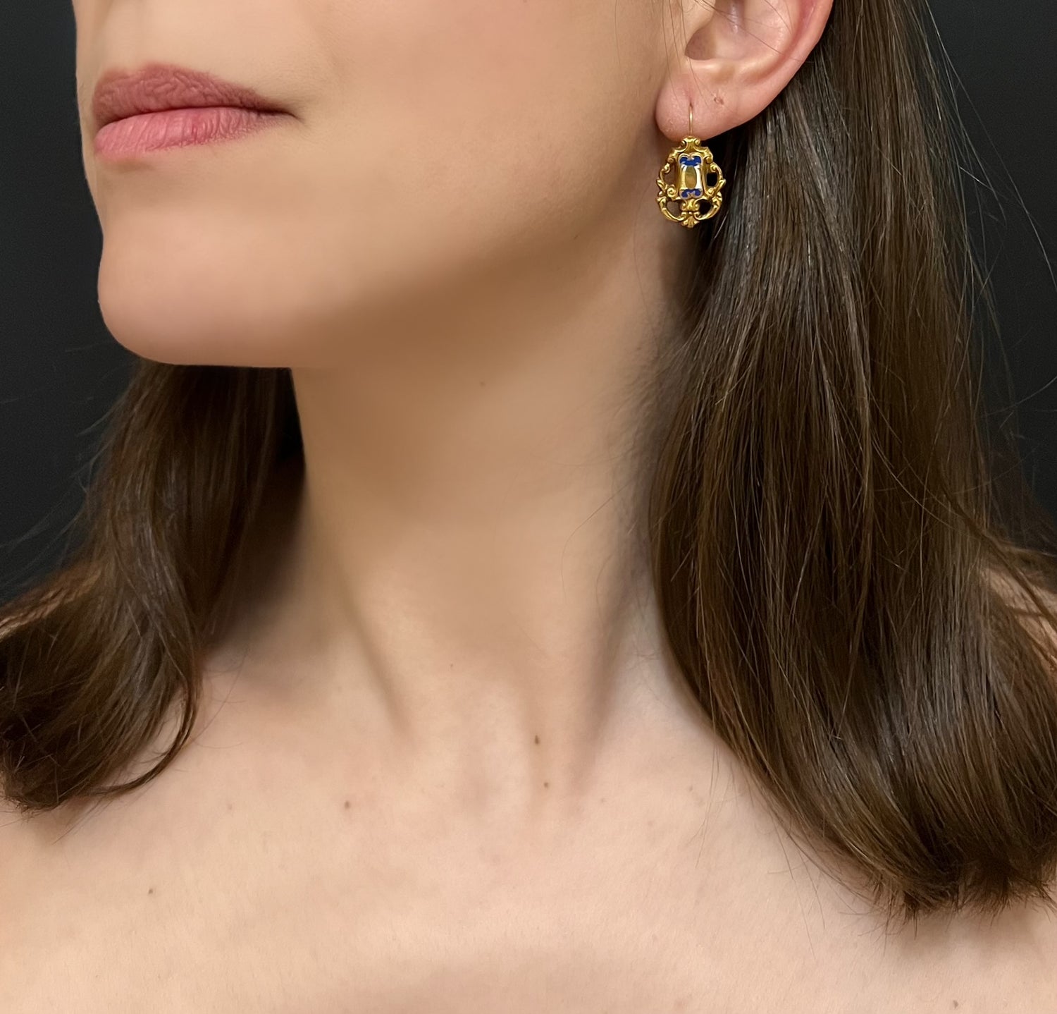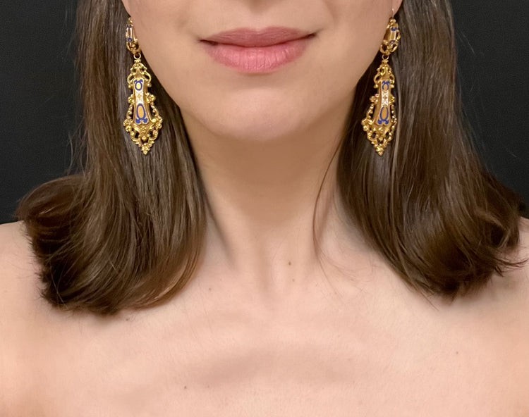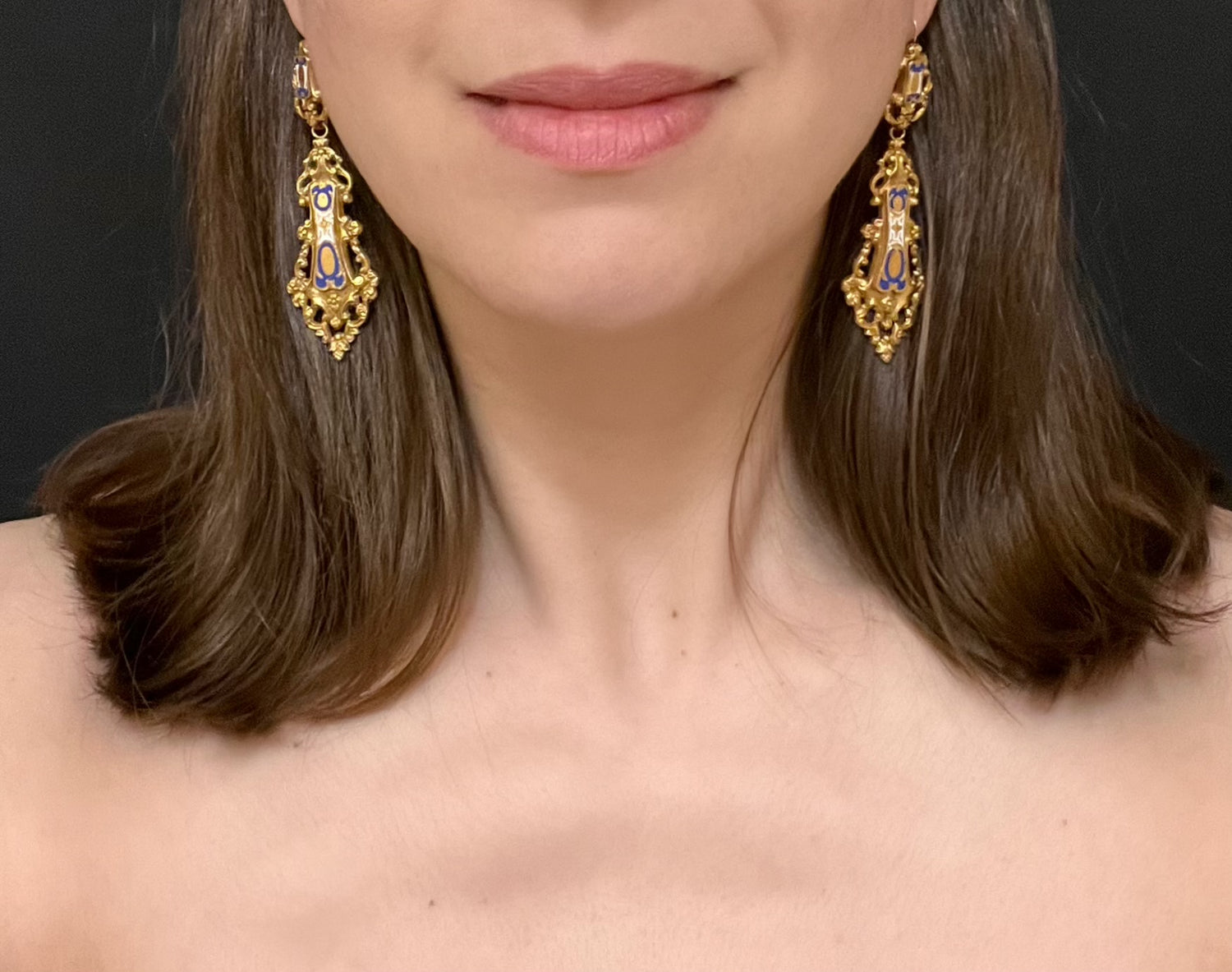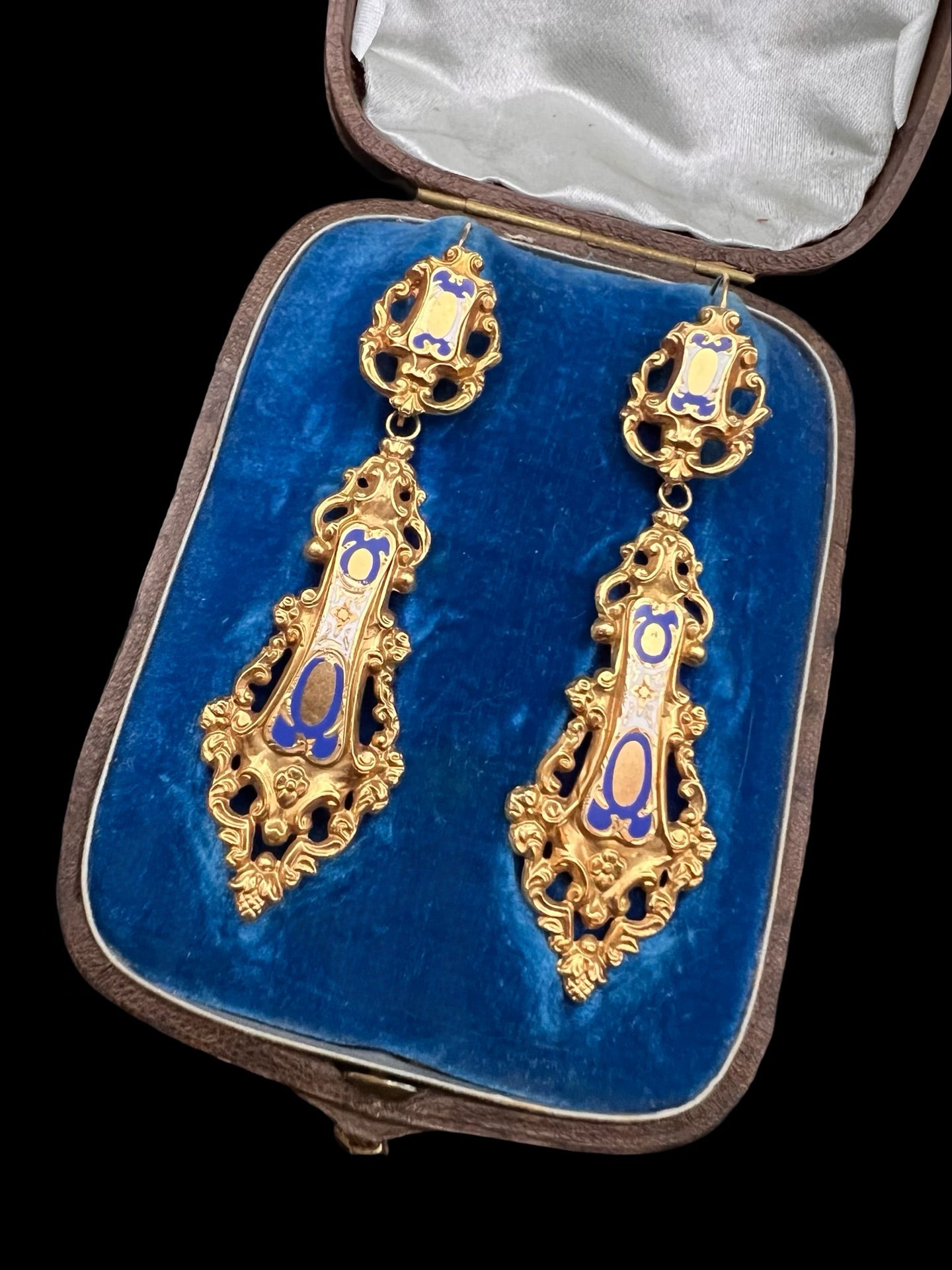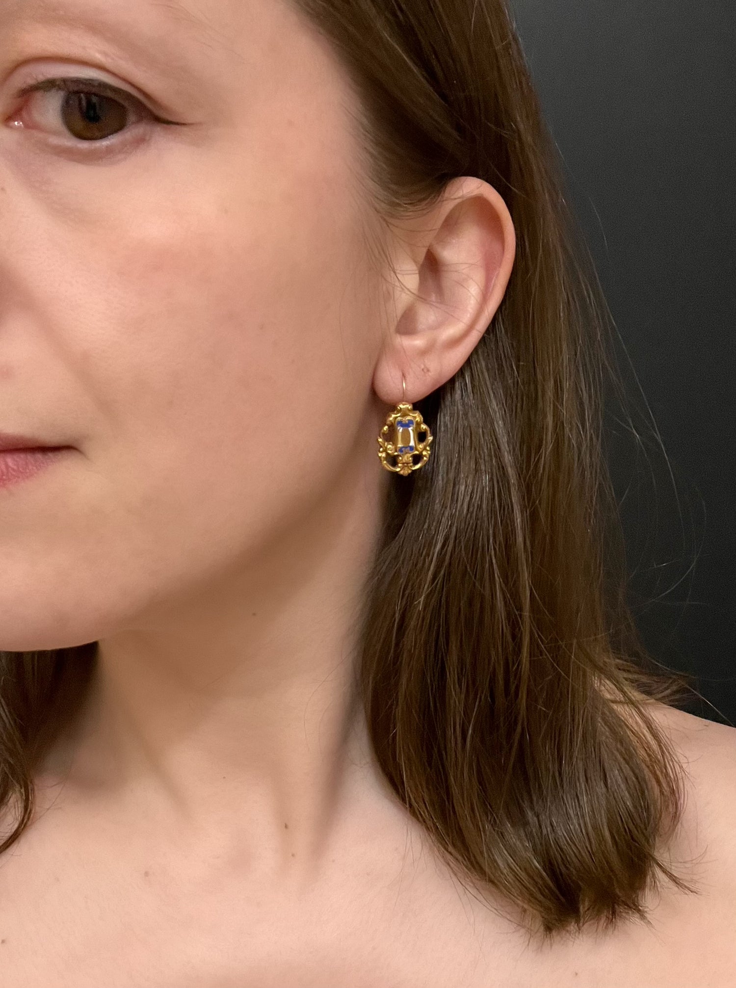 Some loss of enamel and some wrinkling of gold on the reverse of the earrings - see pictures.