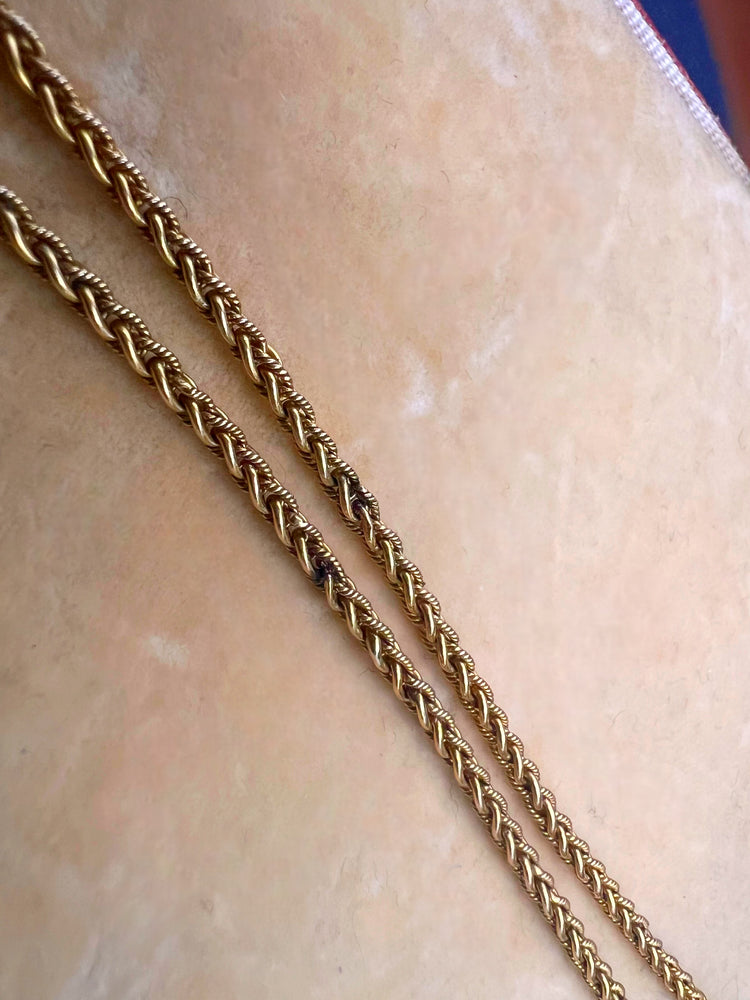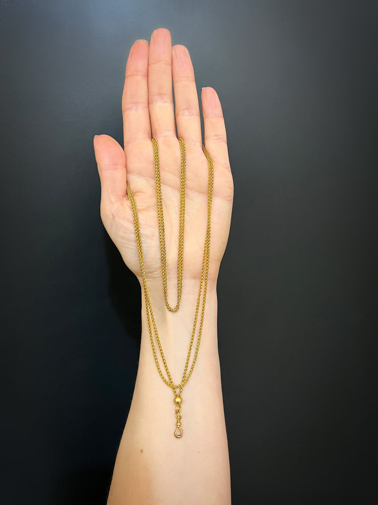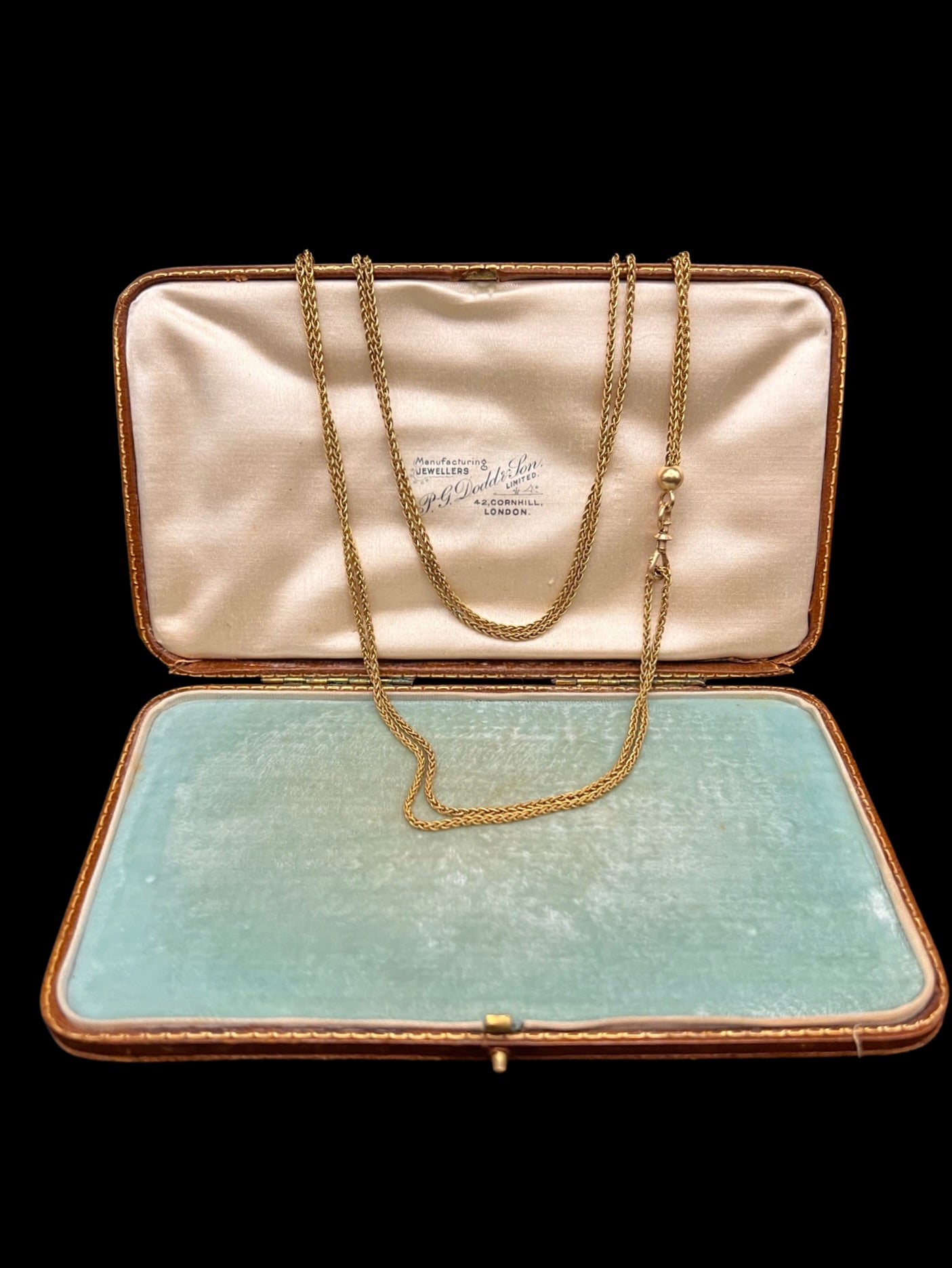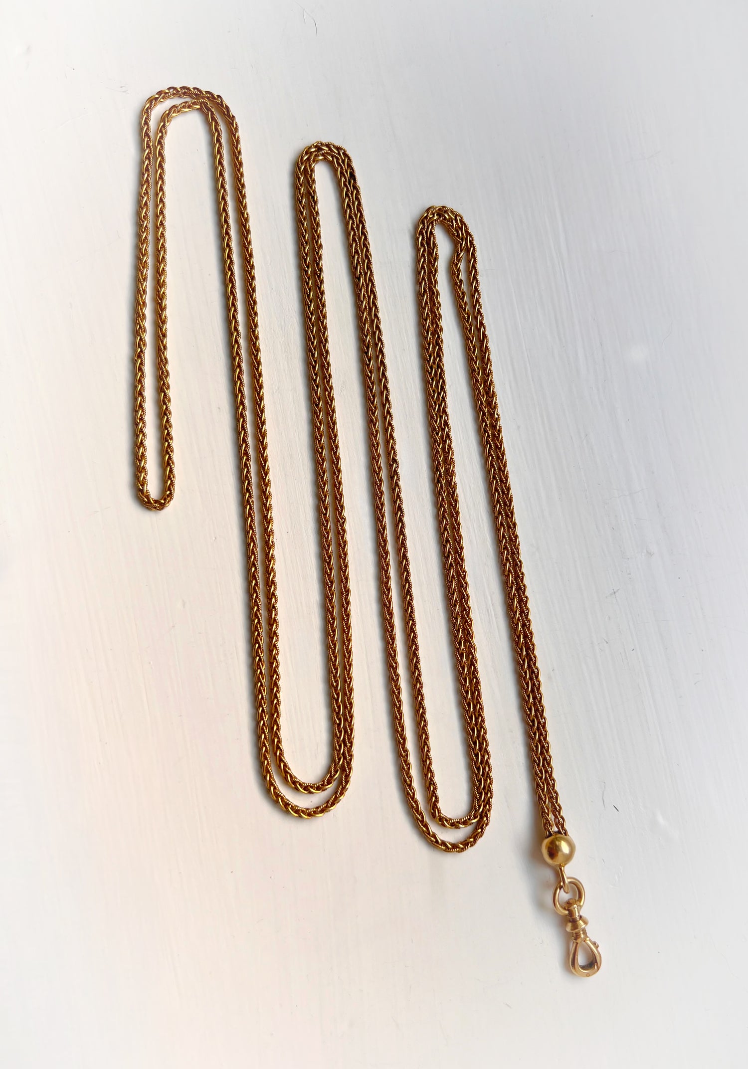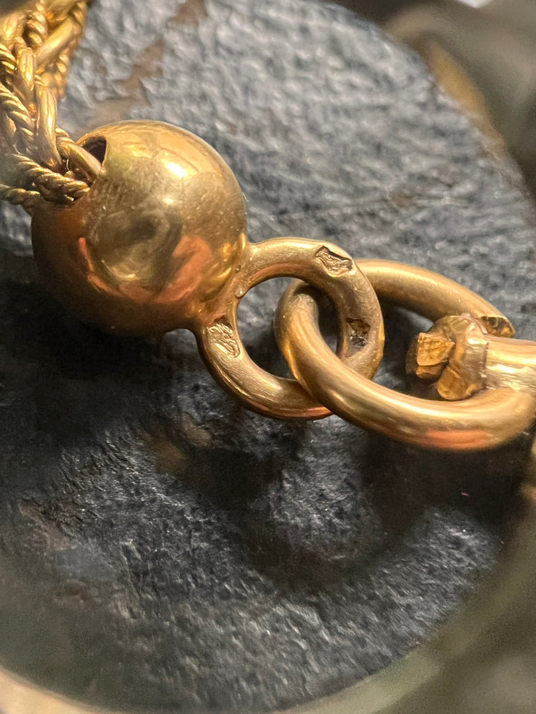 The chain is hallmarked with the French eagles head on the finial ring and dogclip, which guarantees 18ct gold.