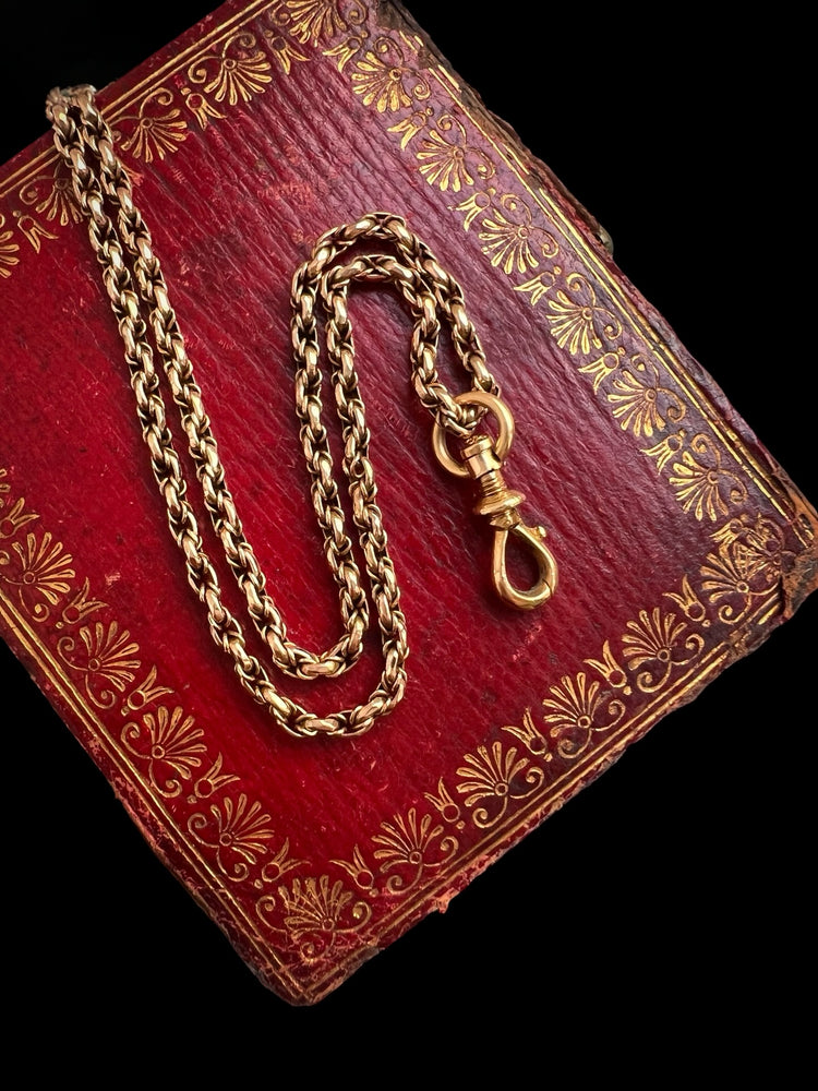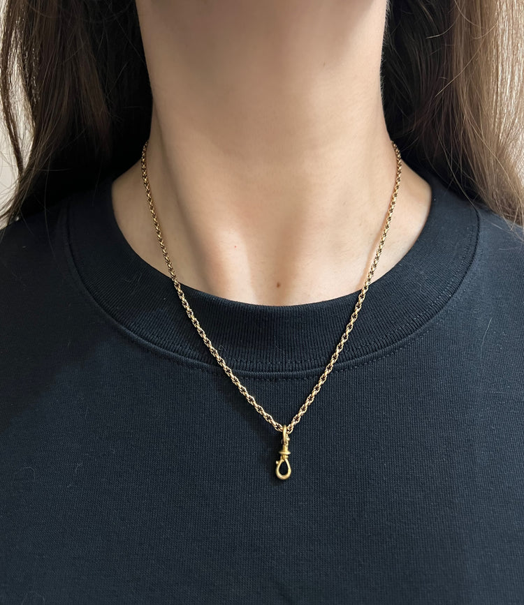 The dog clip has the traditional French mechanism locking shut with a screw collar at the base.