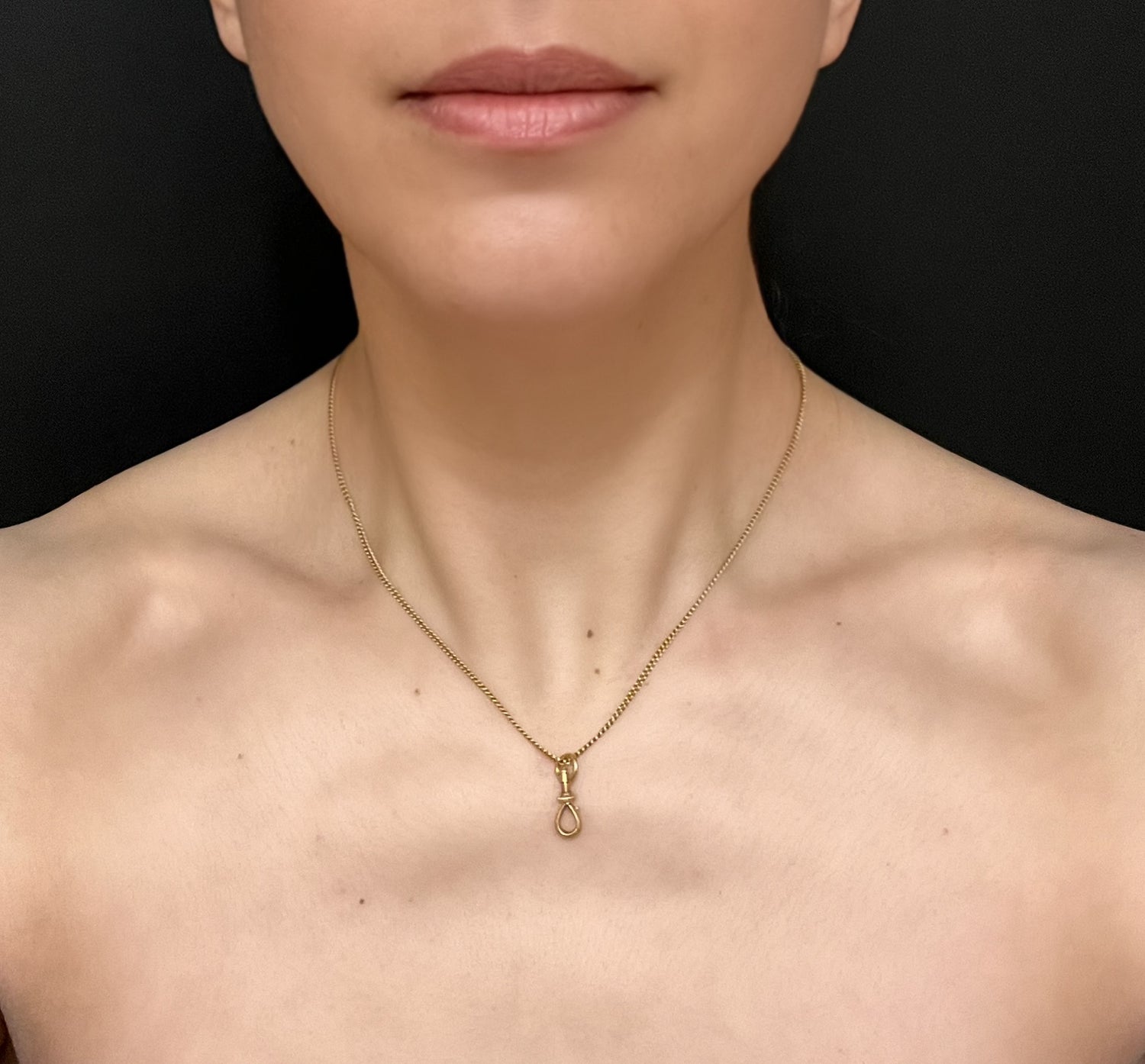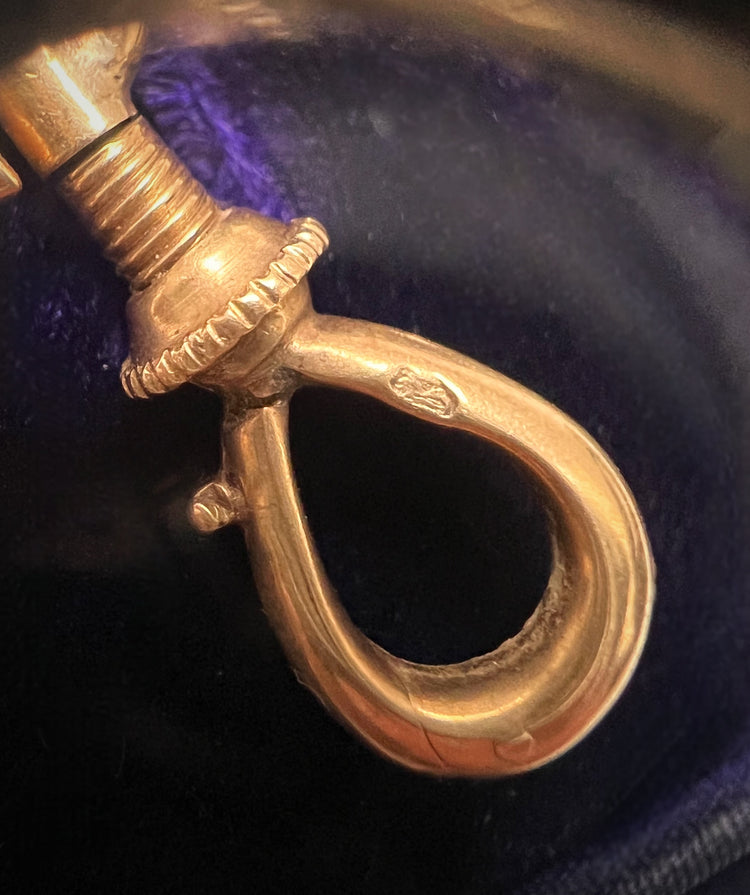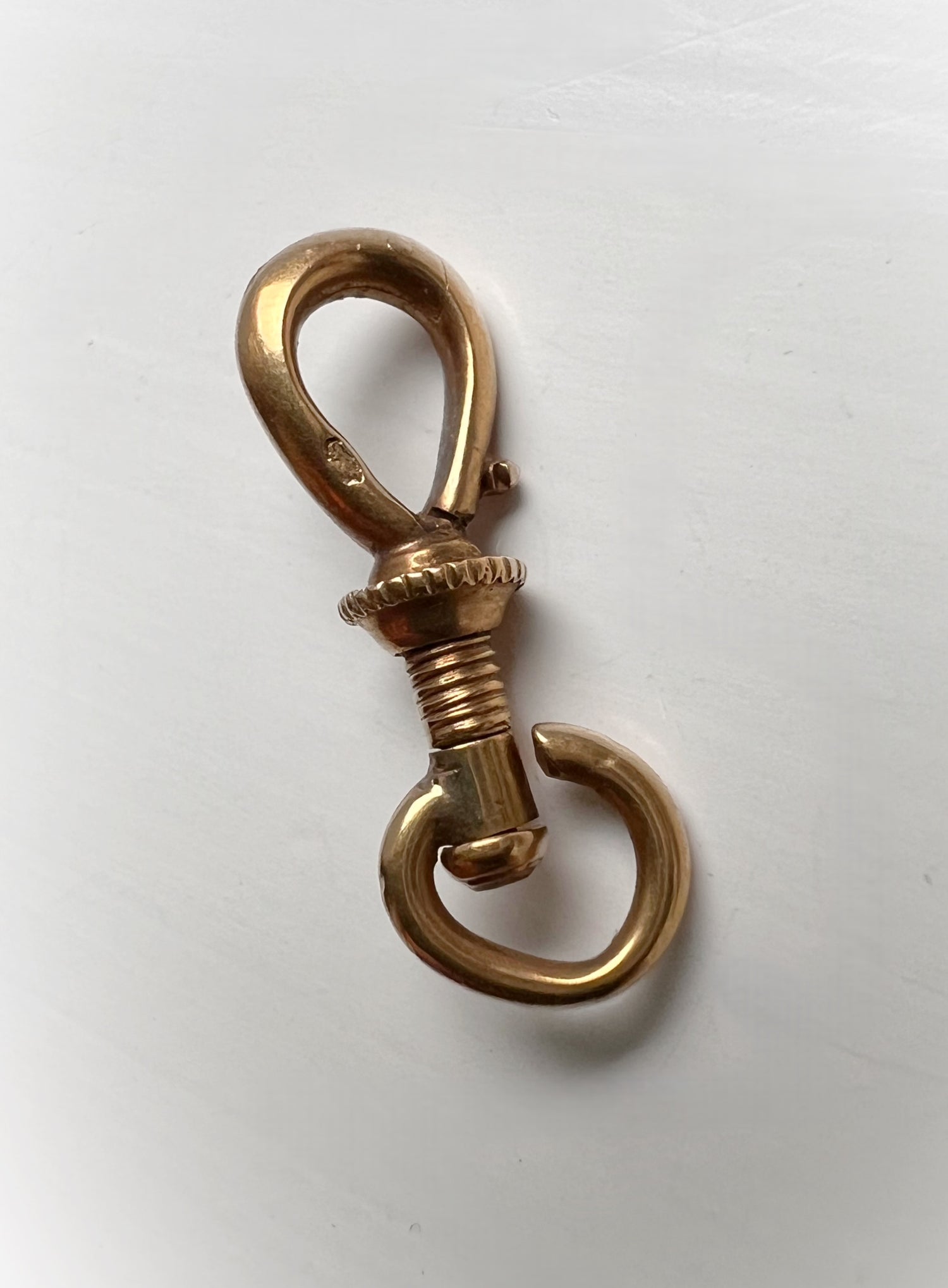 The dog clip has the traditional French mechanism locking shut with a screw collar at the base.