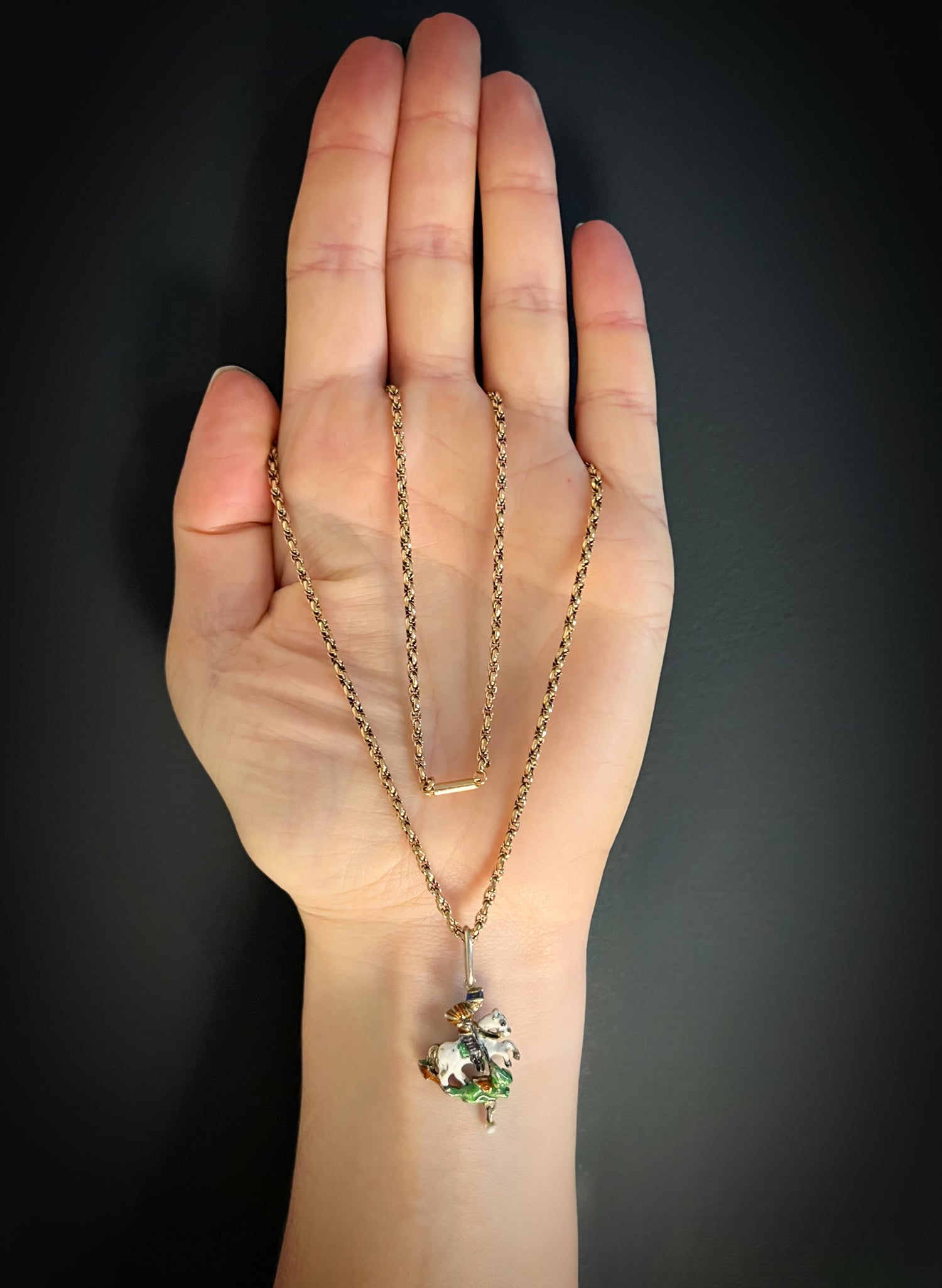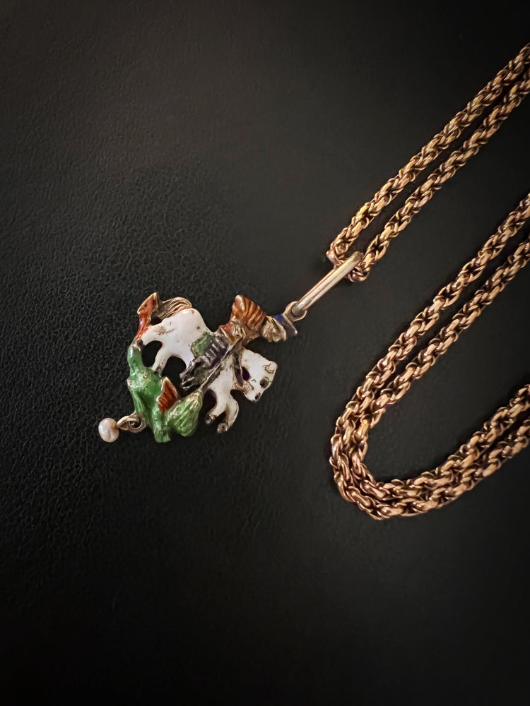 As typical with a lot of the Austro-Hungarian jewellery, the pendant is enamelled on both sides in multi colours.