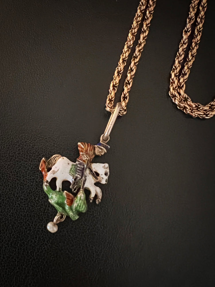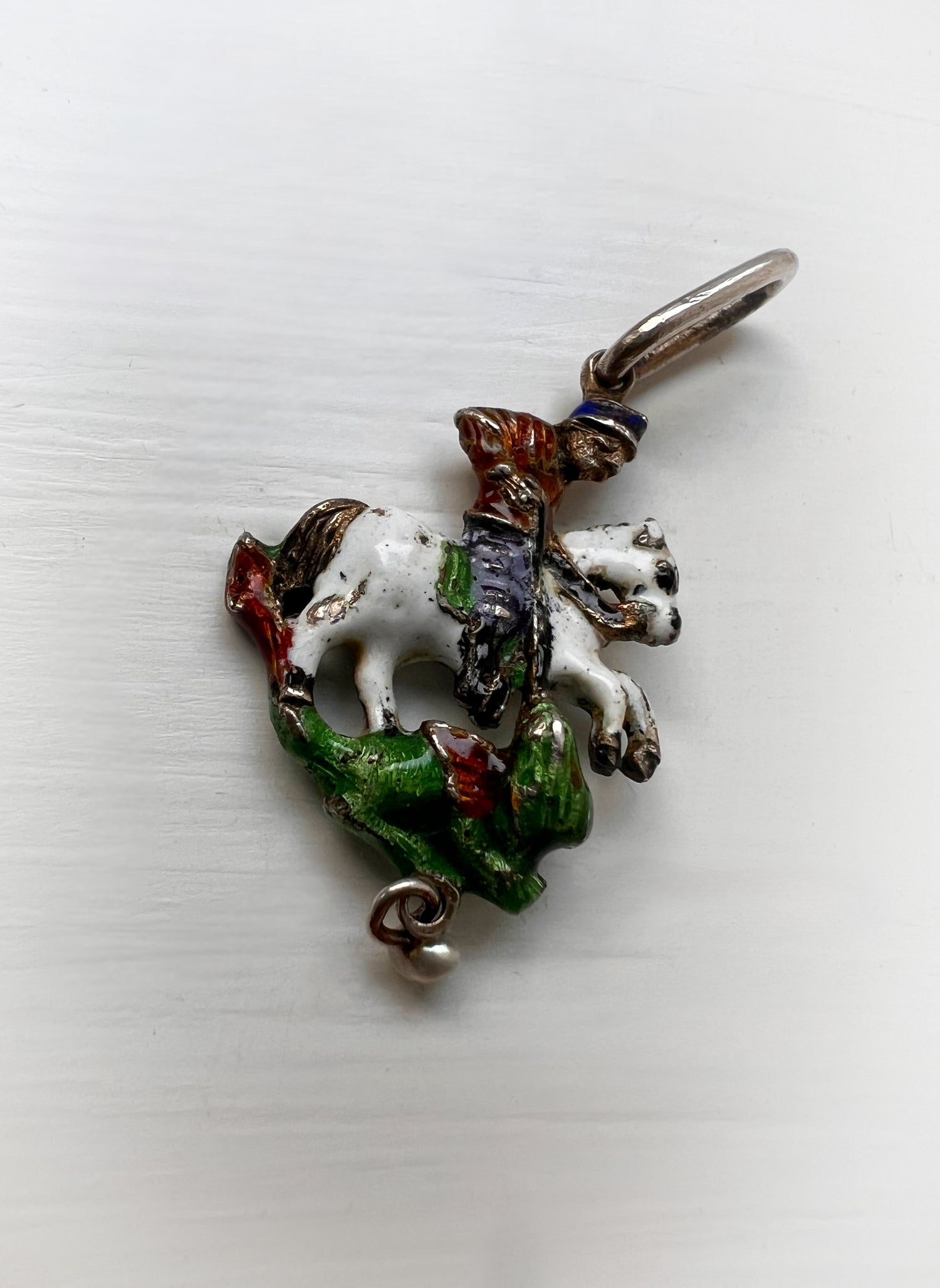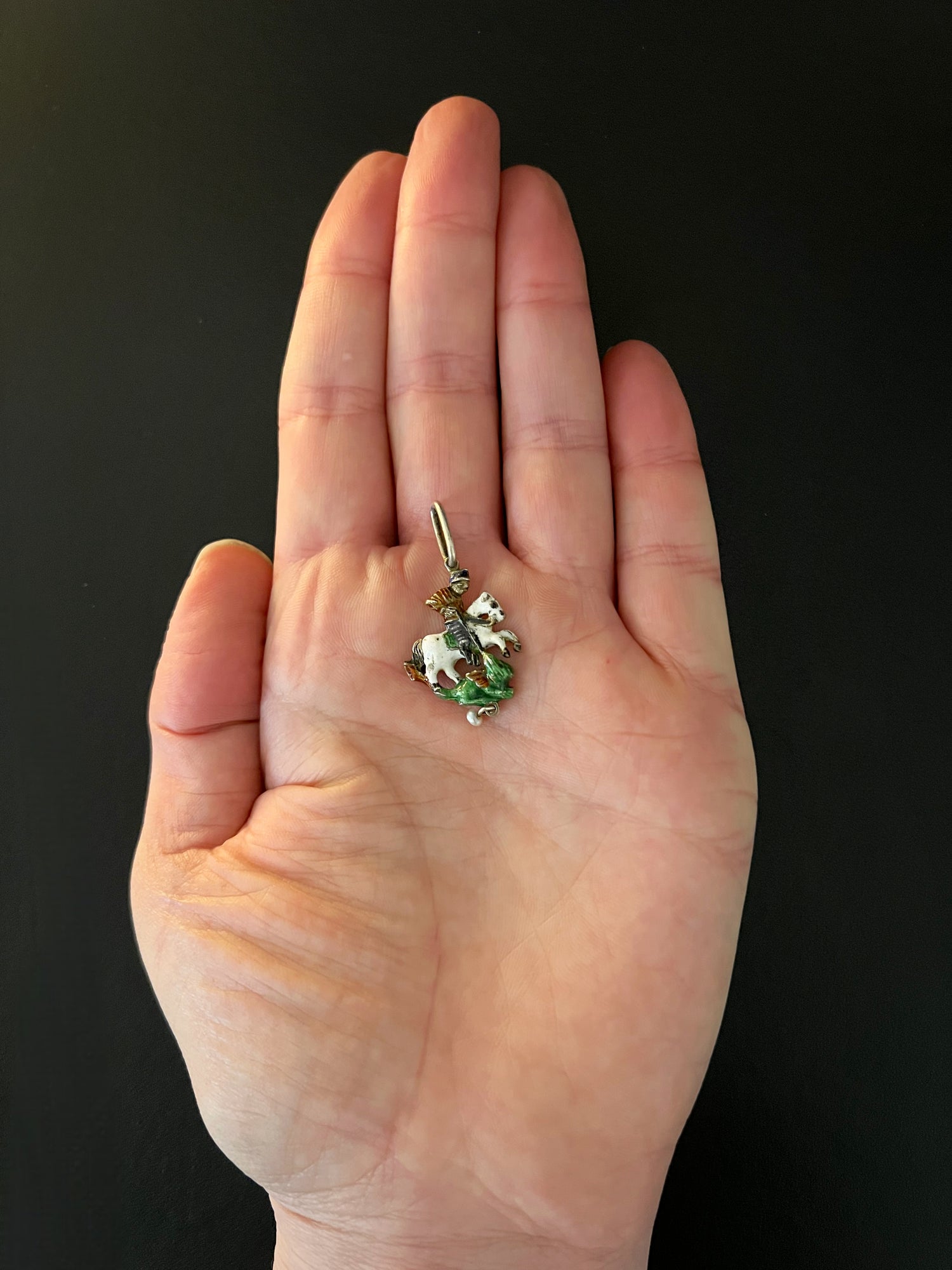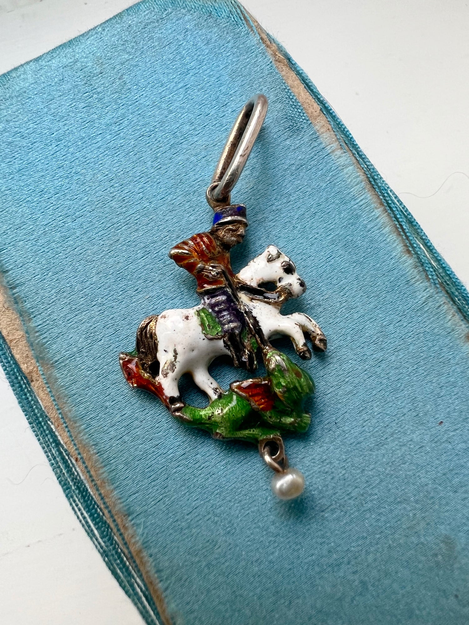 This is a very cool enamel pendant depicting St George slaying the green dragon!