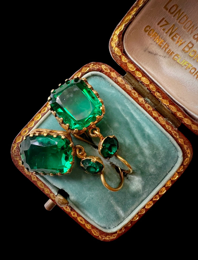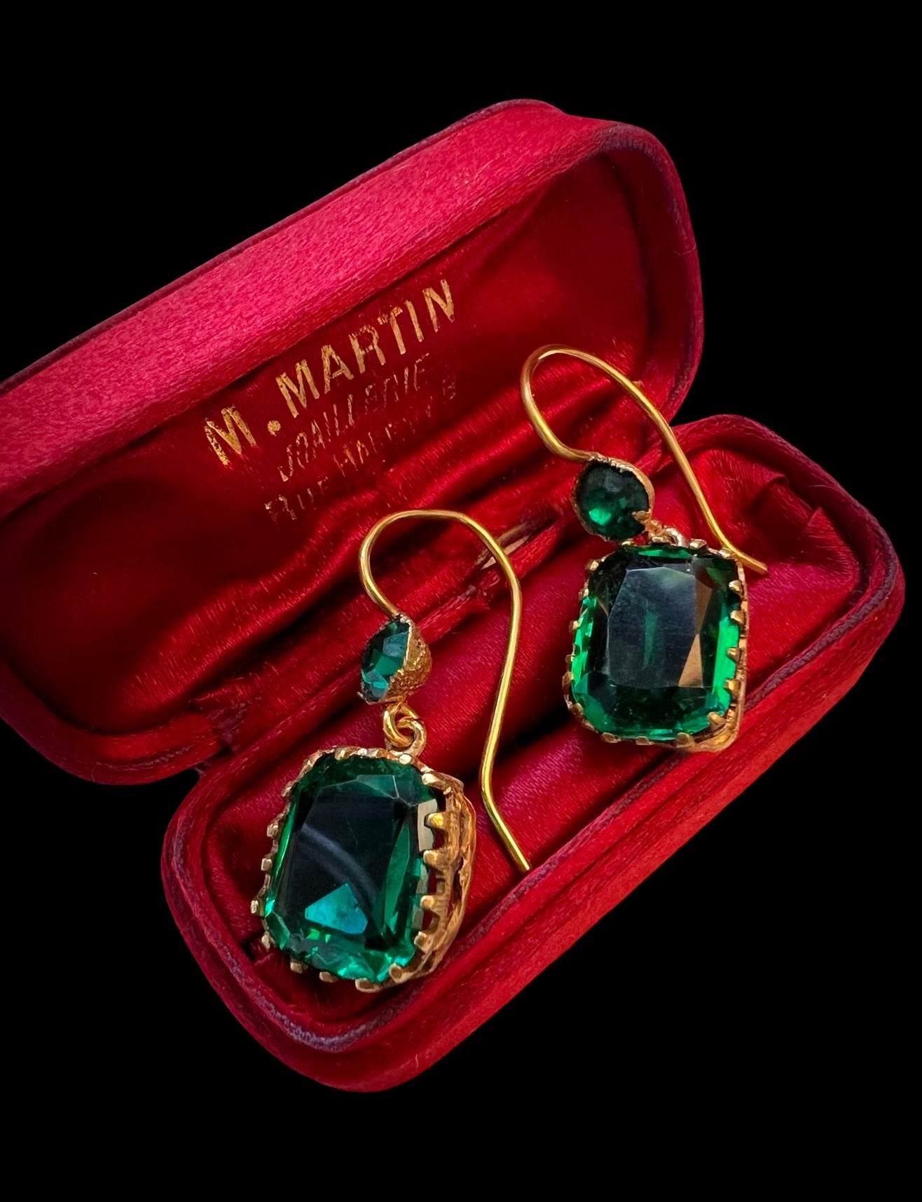 EARLY VICTORIAN GREEN PASTE DOUBLE DROP EARRINGS