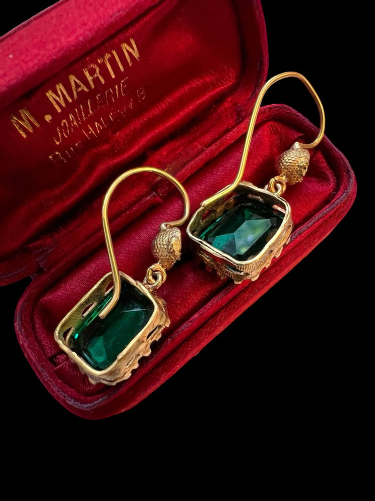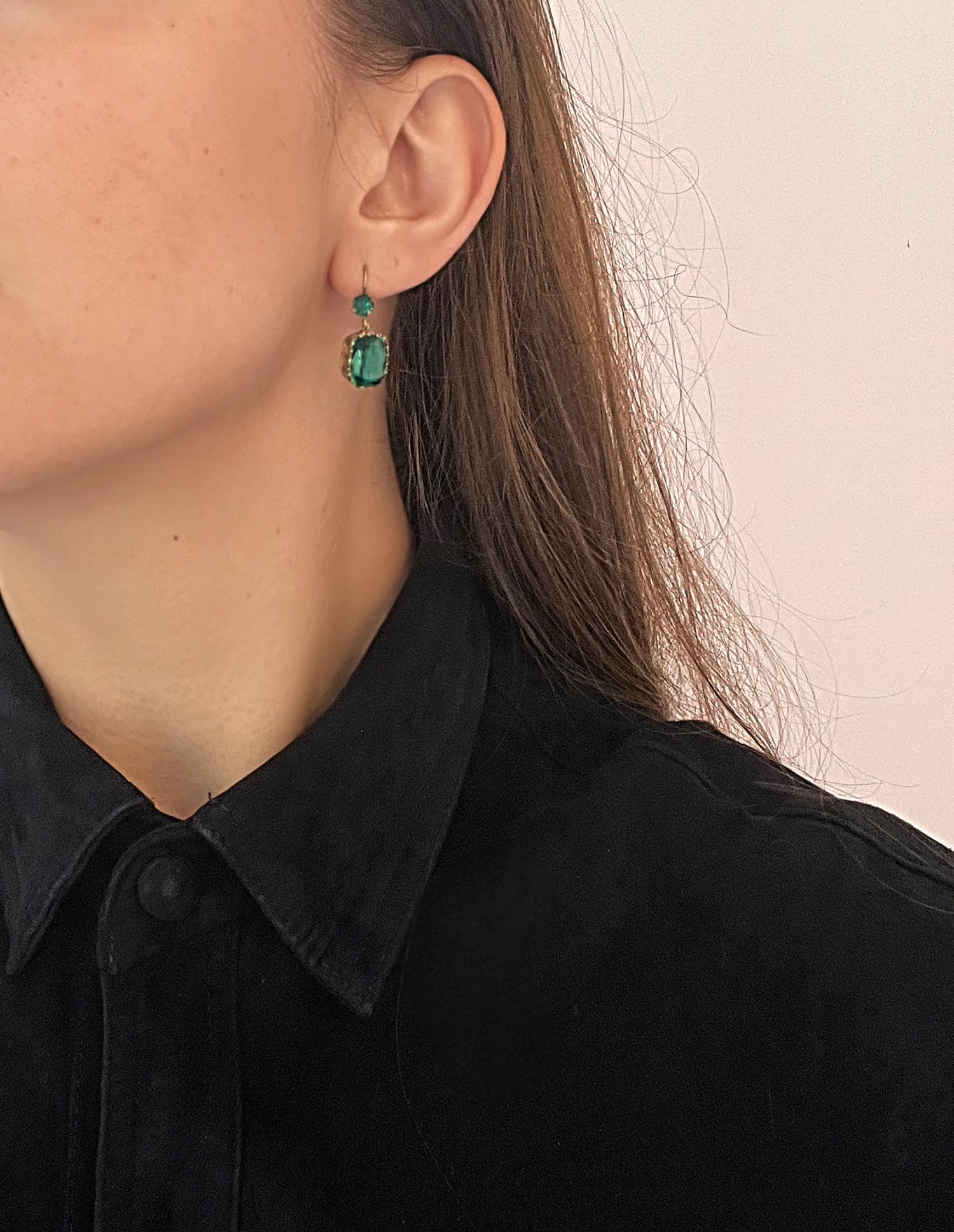 The earrings light up a fantastic vivid emerald green when the light hits the facets.