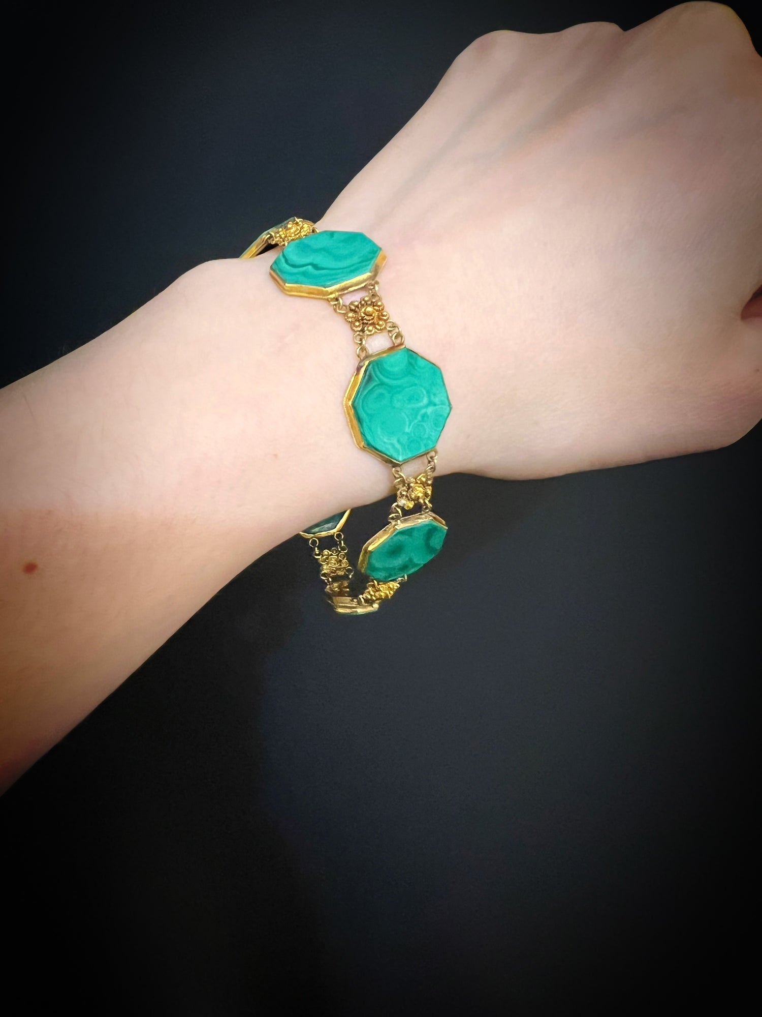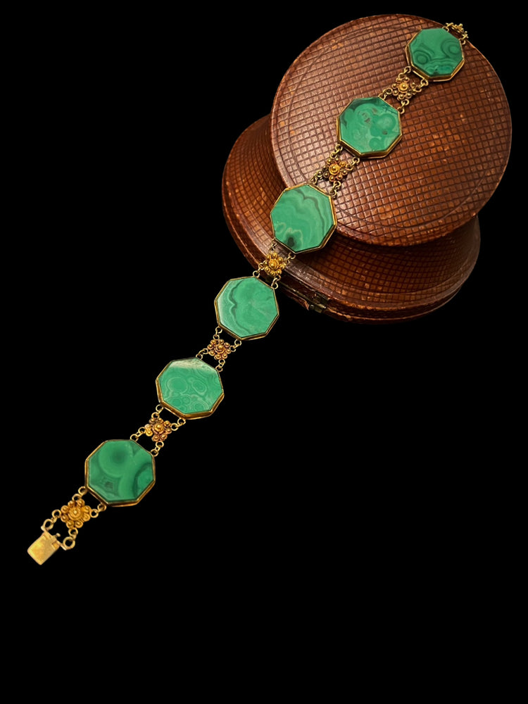 A stunning 19th century Malachite and 18ct gold bracelet.