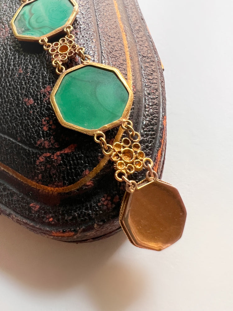 19TH CENTURY MALACHITE & 18CT GOLD BRACELET