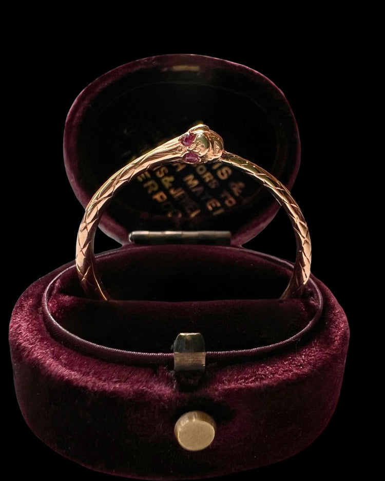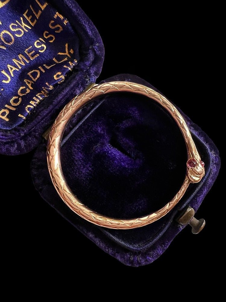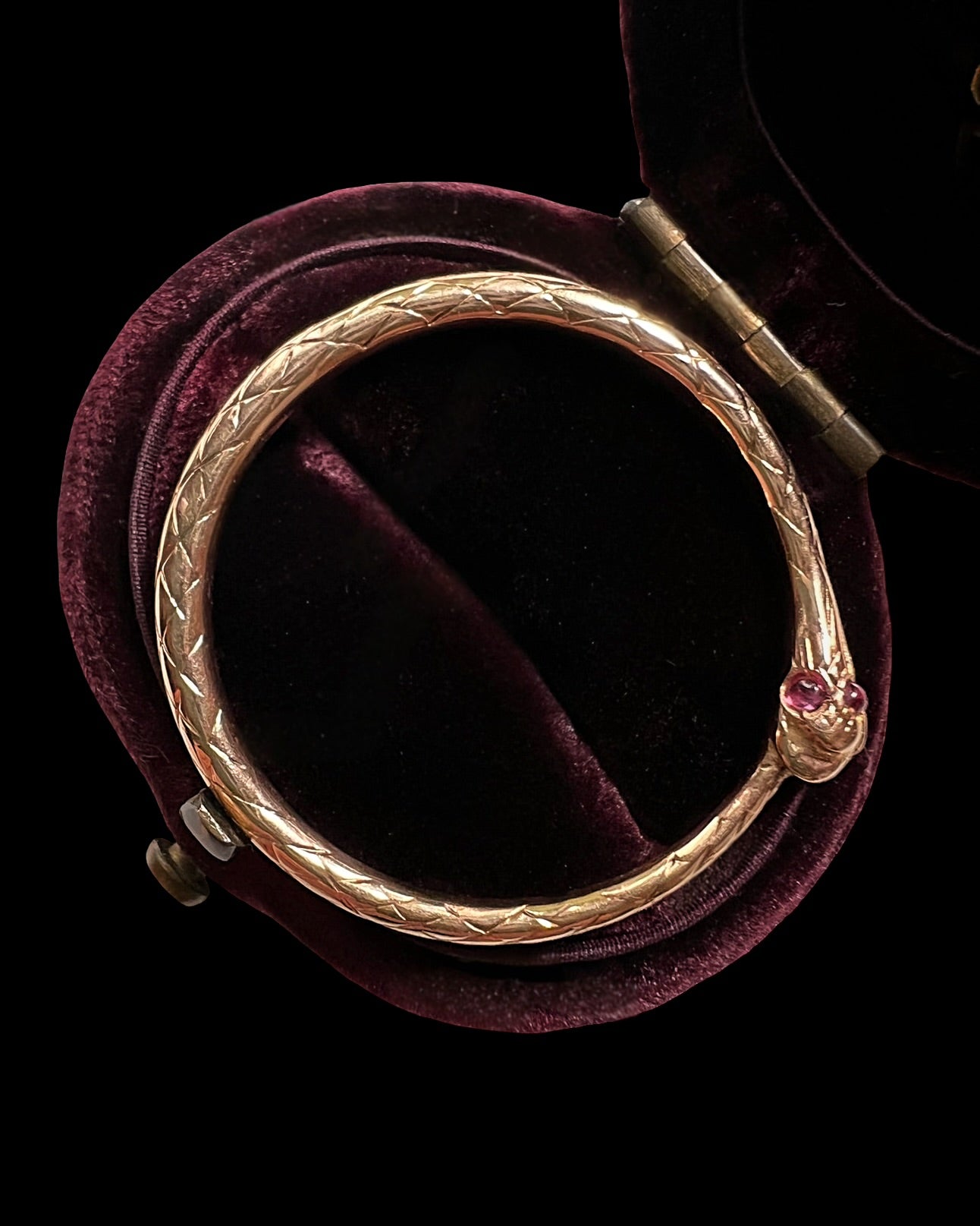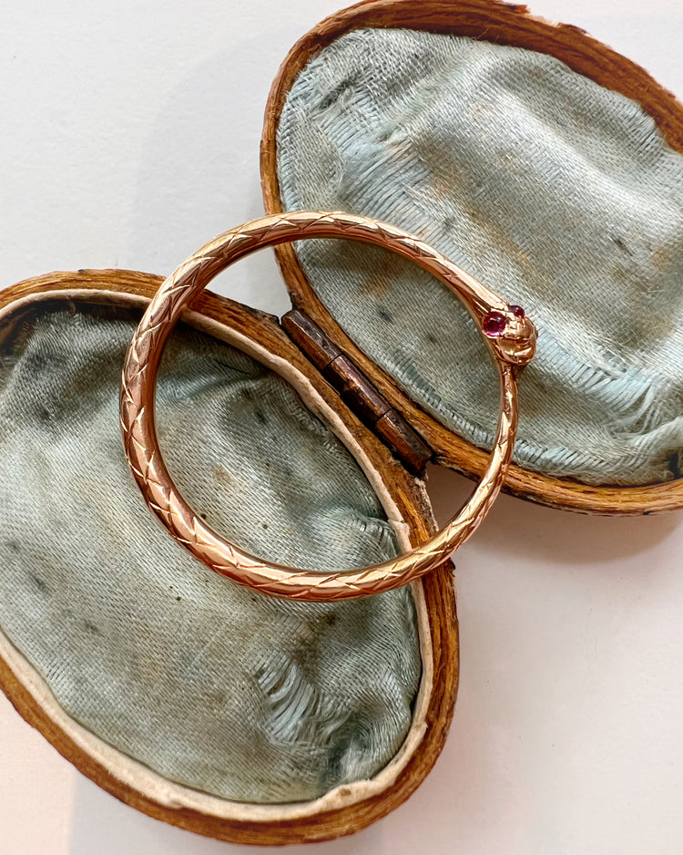 This particular ring is extra unique as the snake has gem set cabochon eyes.