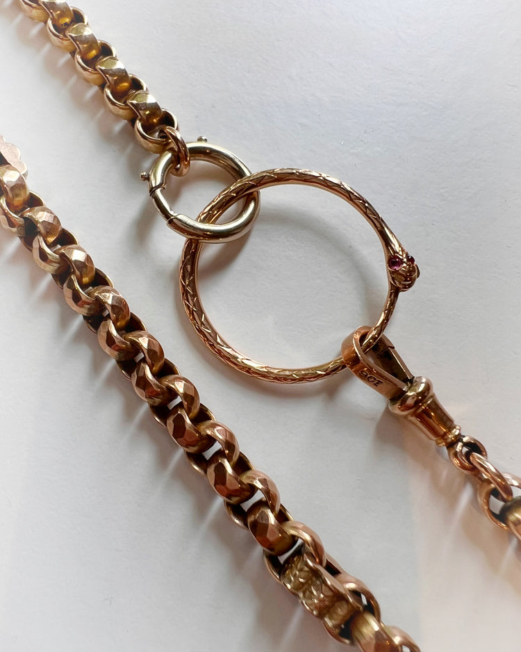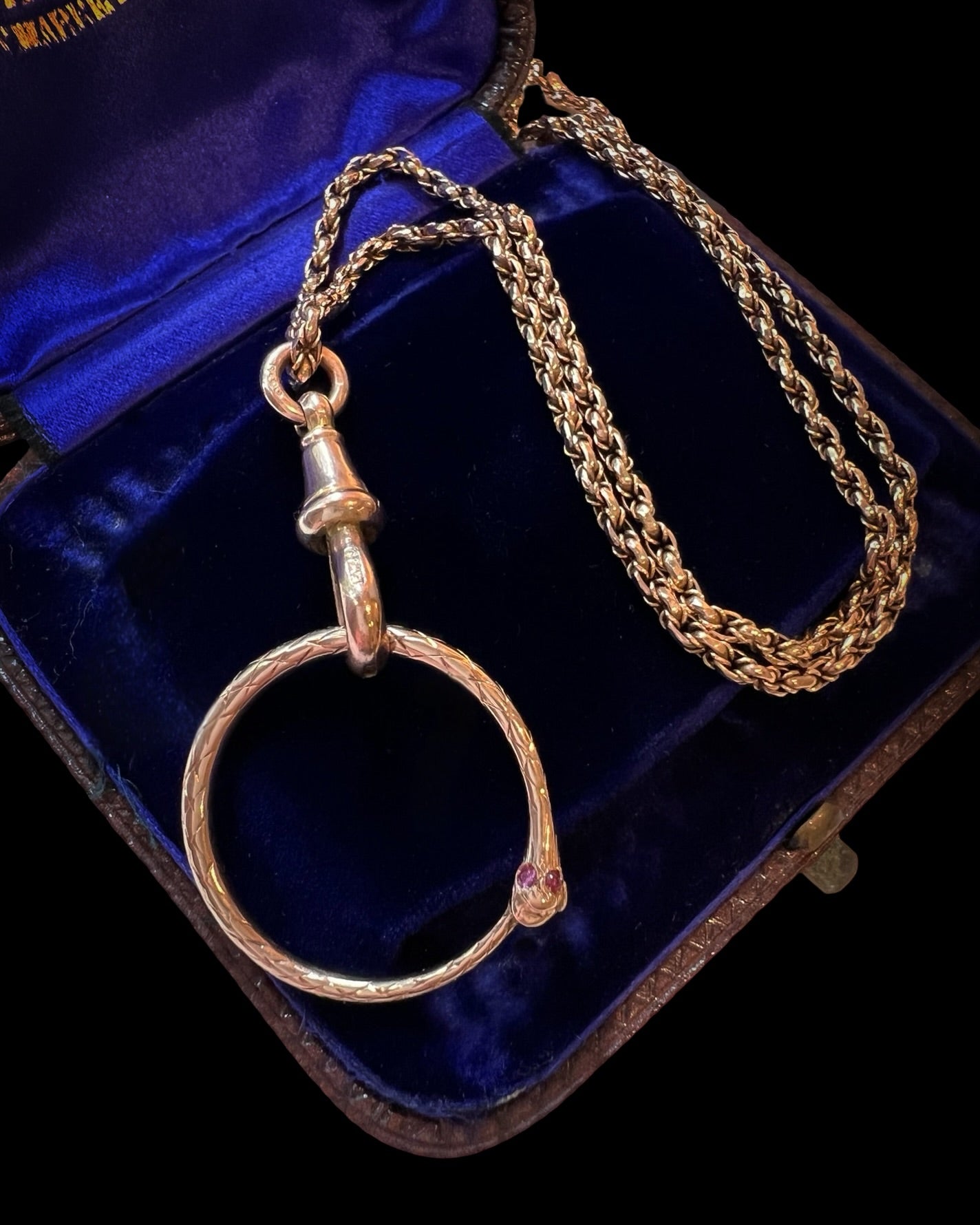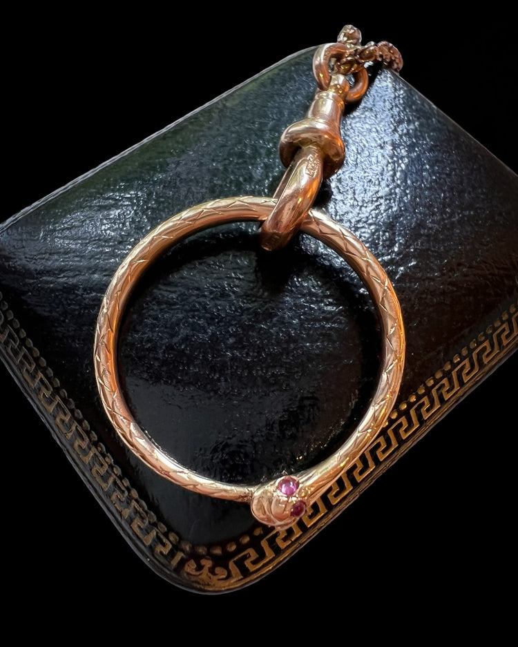 A superb Ouroboros snake 15ct gold ring, which can also be used as a chain extender or pendant.