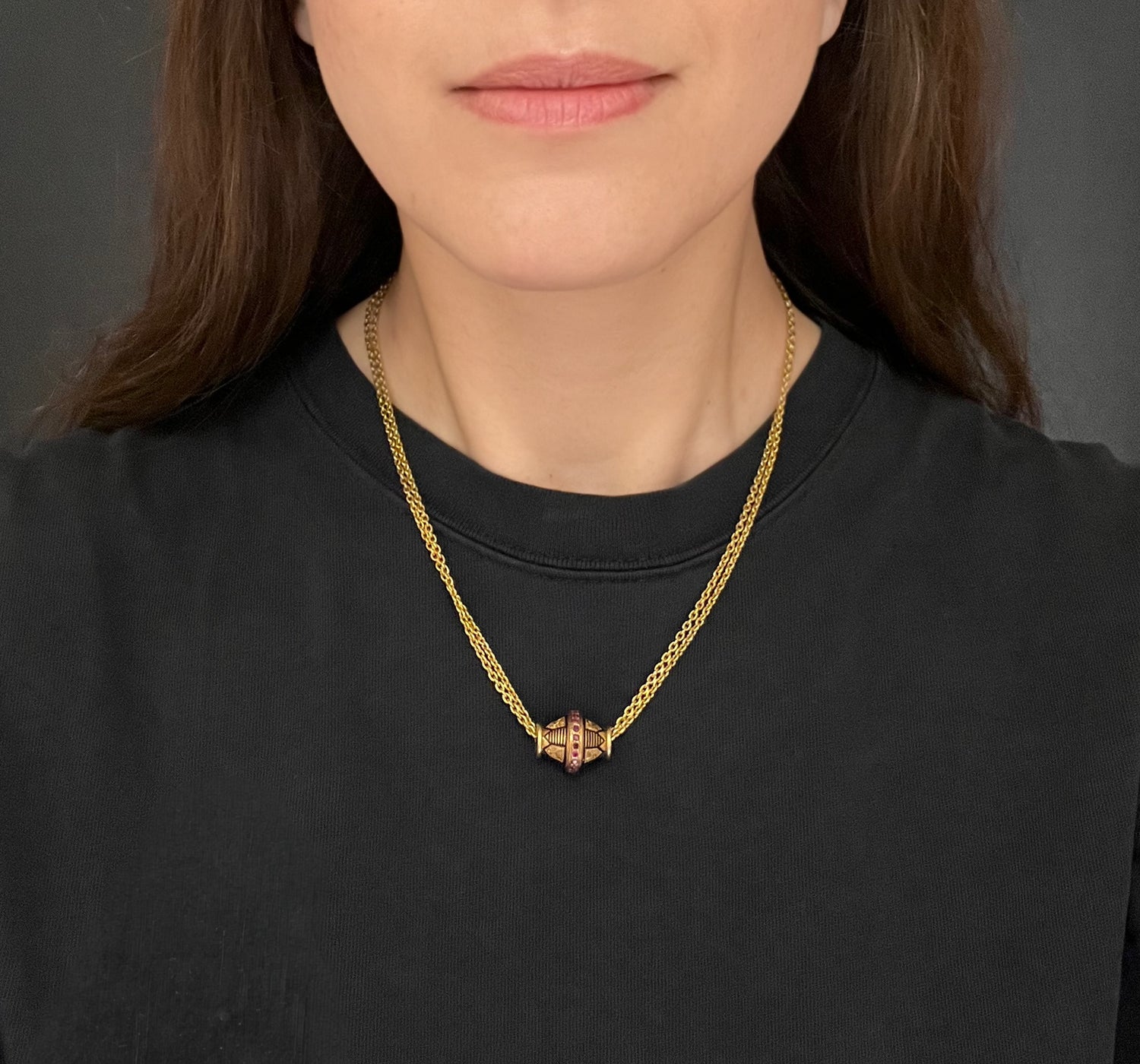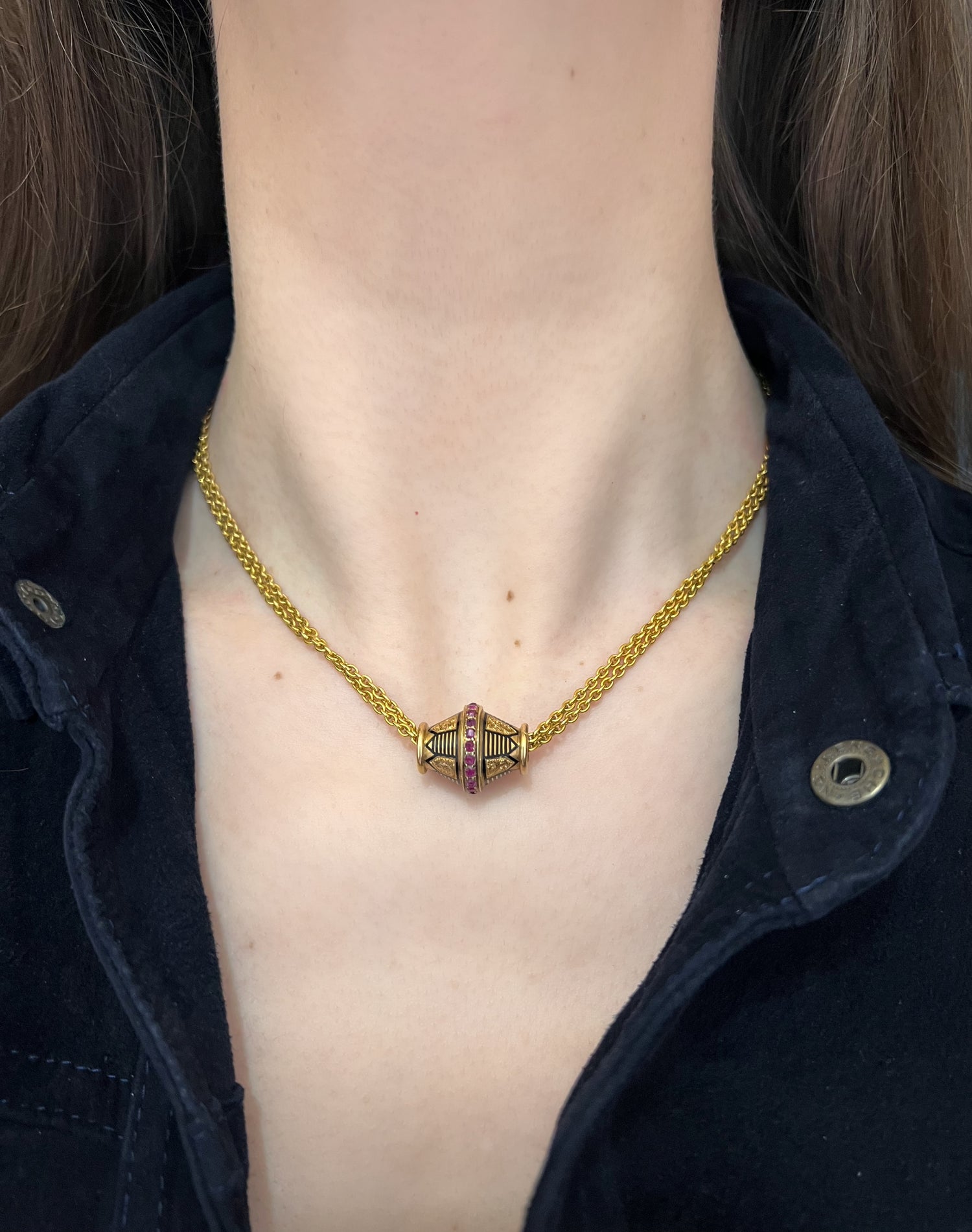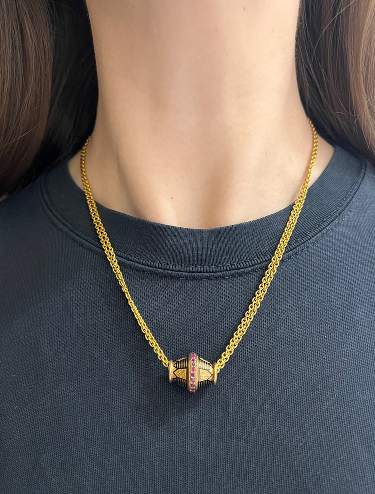 A super cool 19th century ruby and enamel slider pendant.