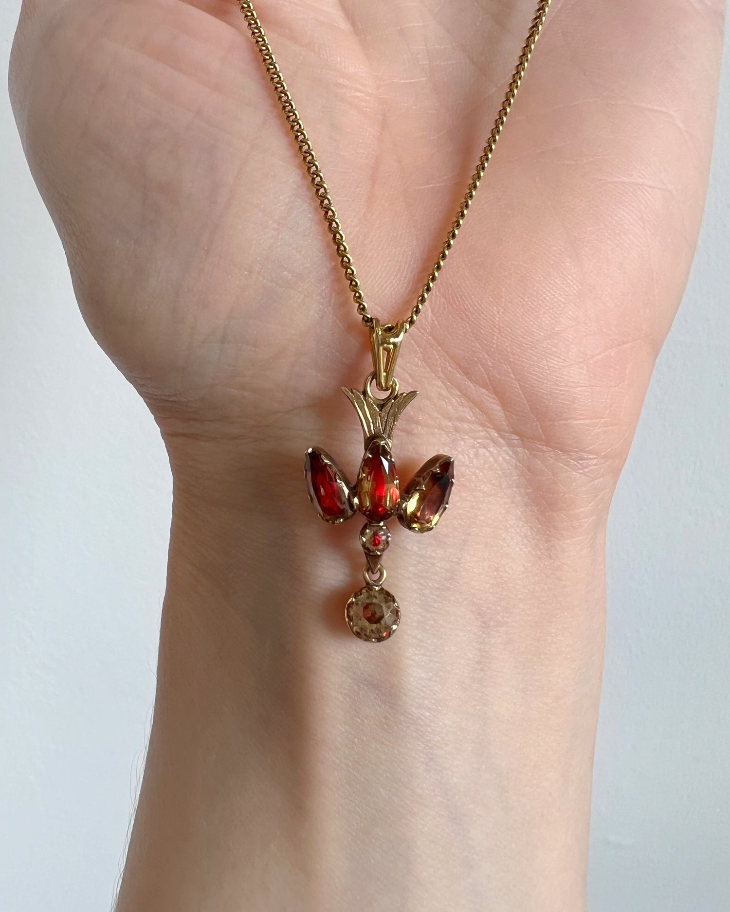 The faceted stones are set in a closed back 18ct gold setting, with an 18ct gold bail.