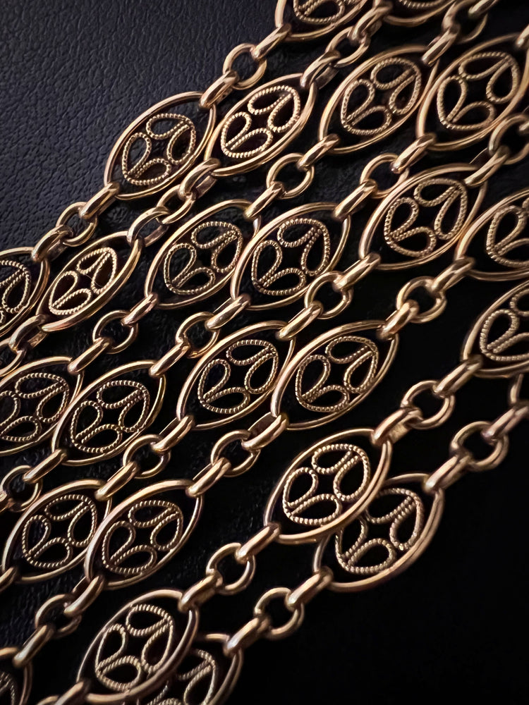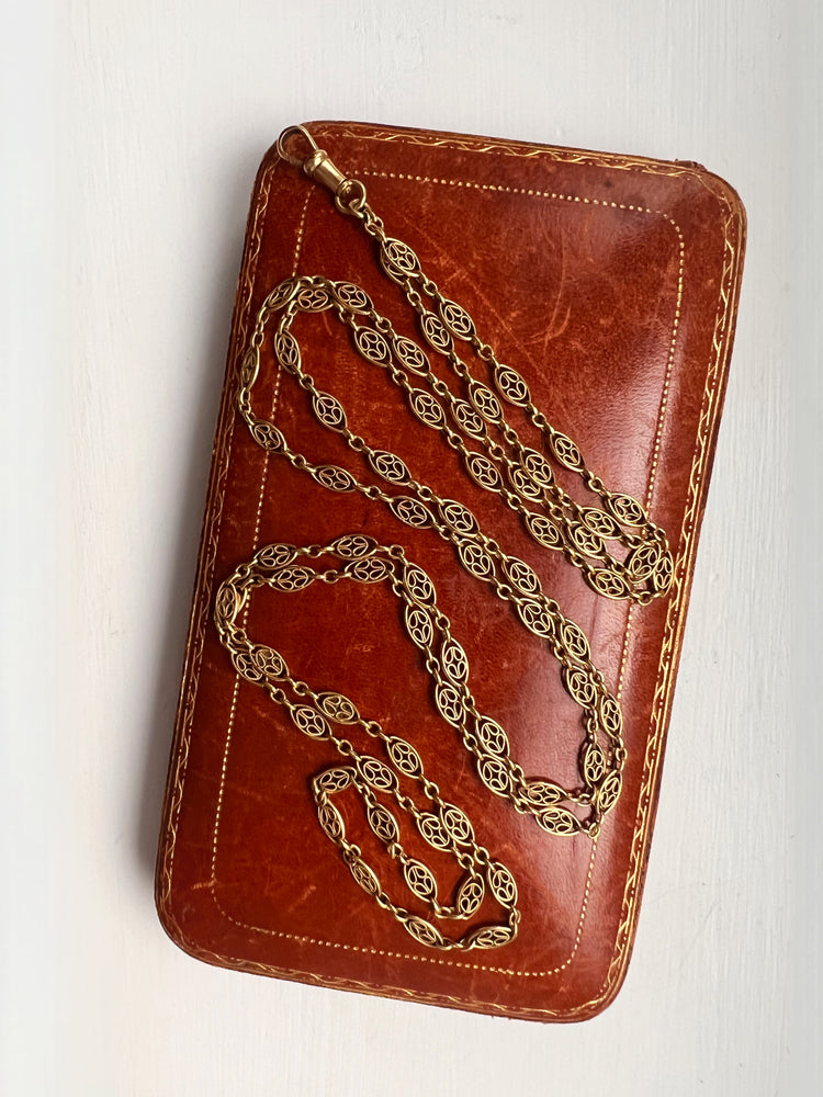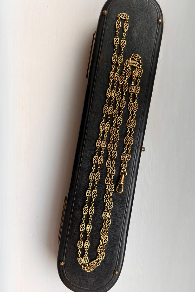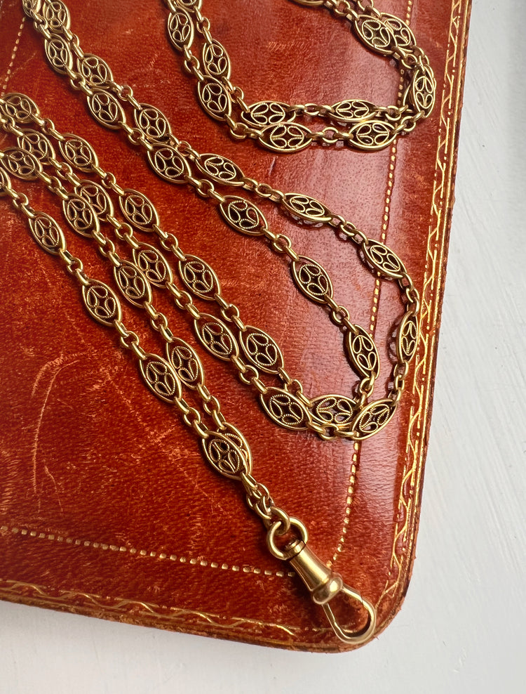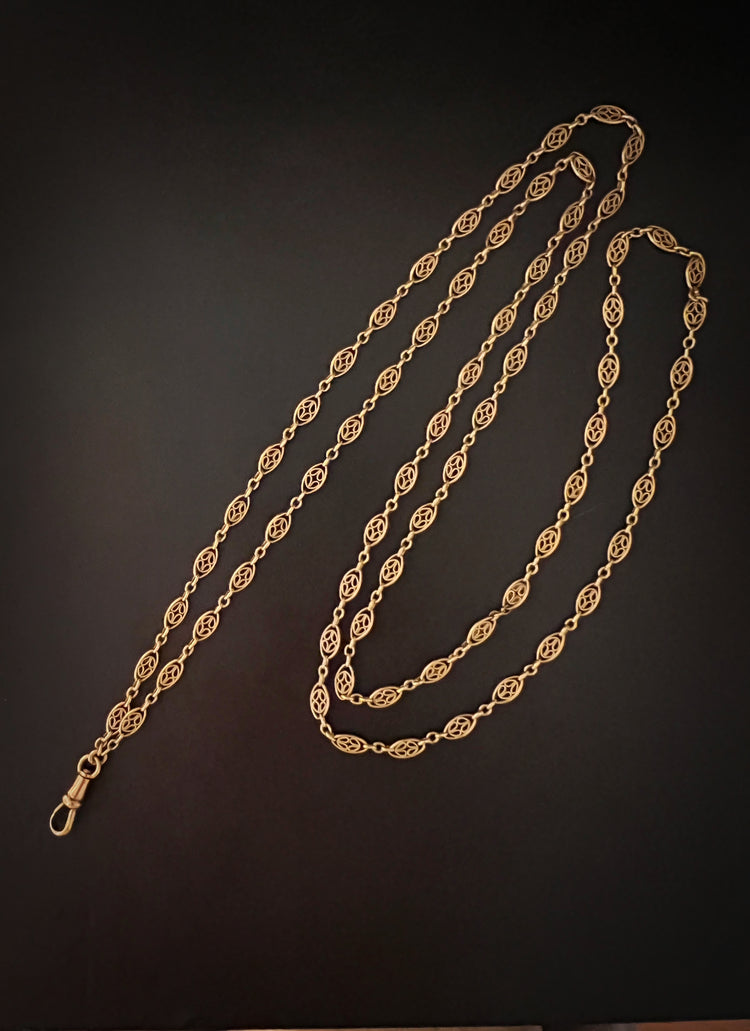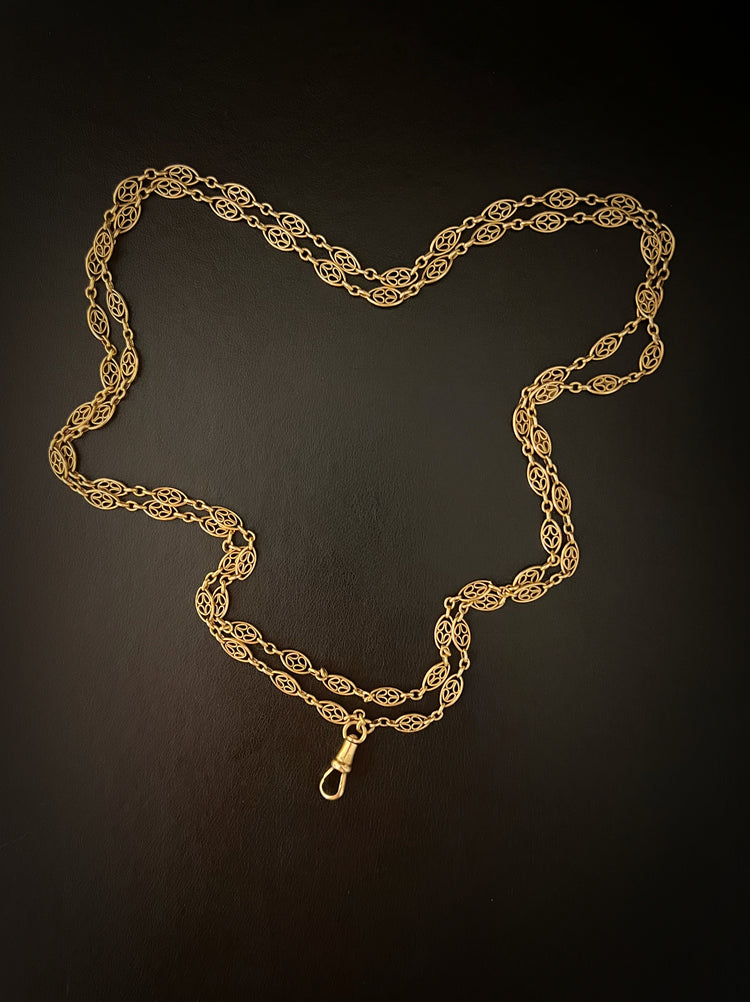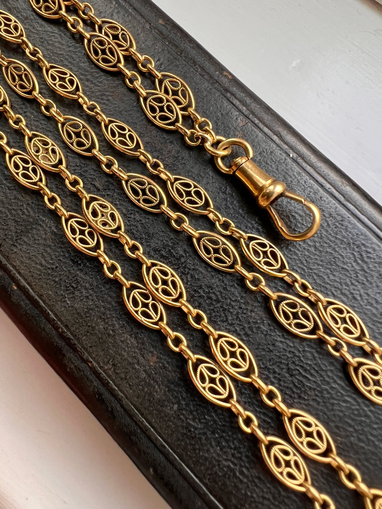 18CT FRENCH SAUTOIR FANCY LINK GAURD CHAIN