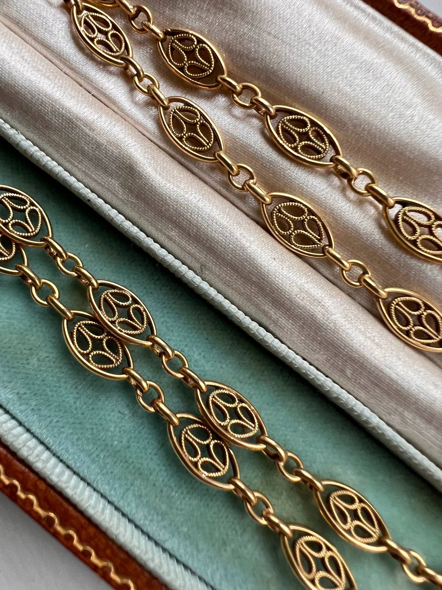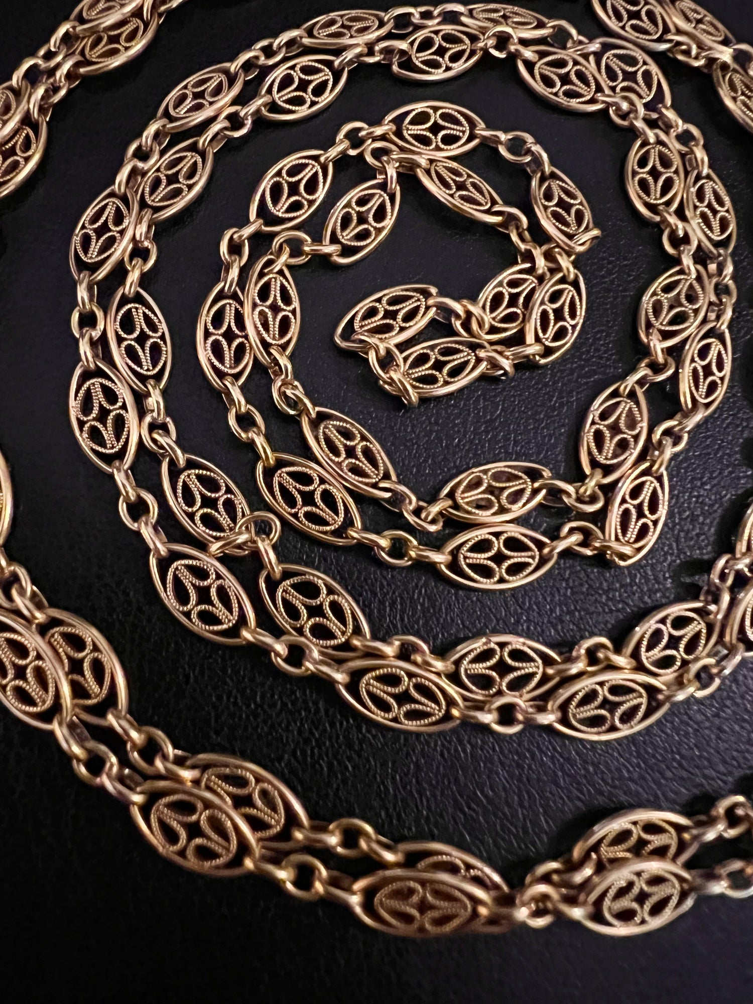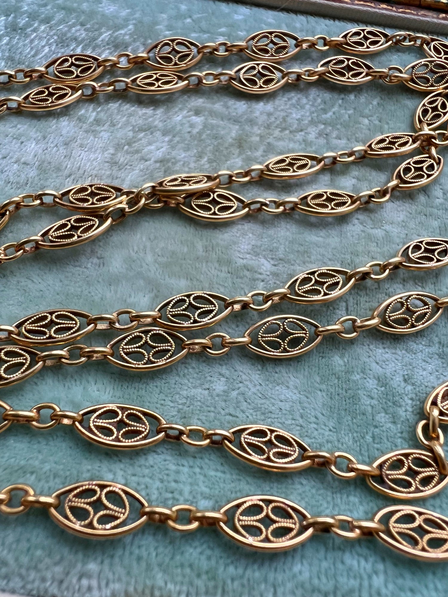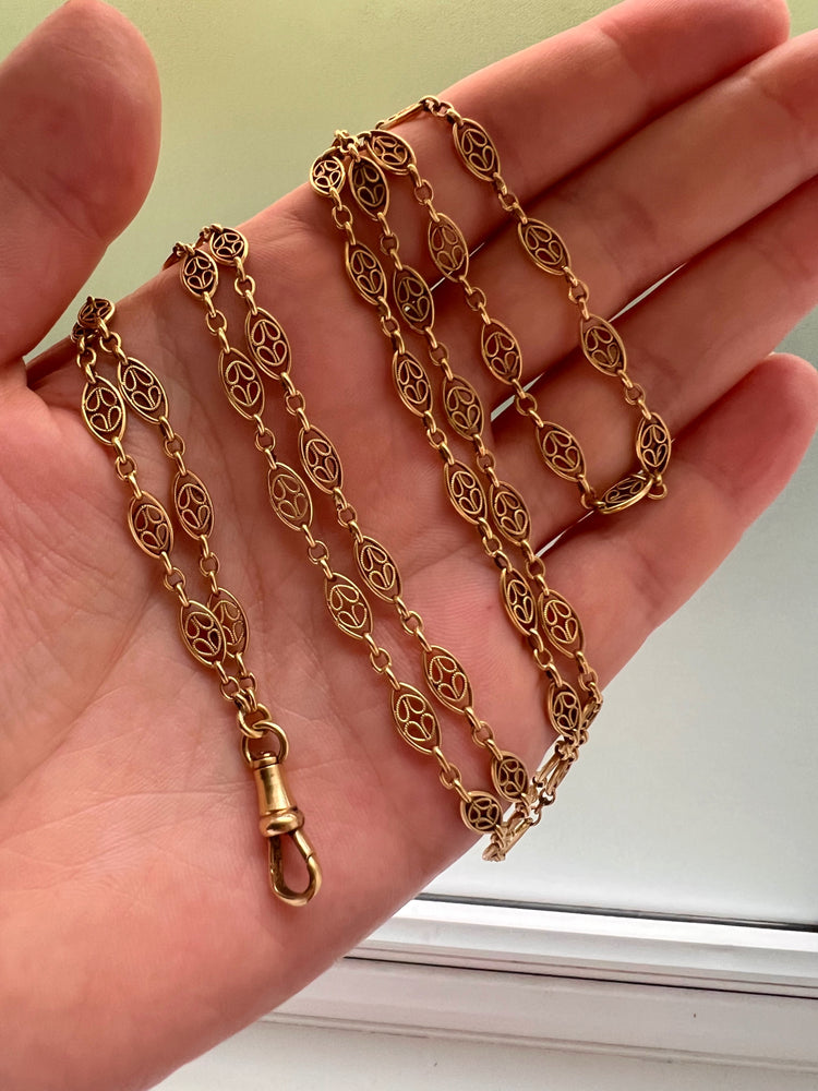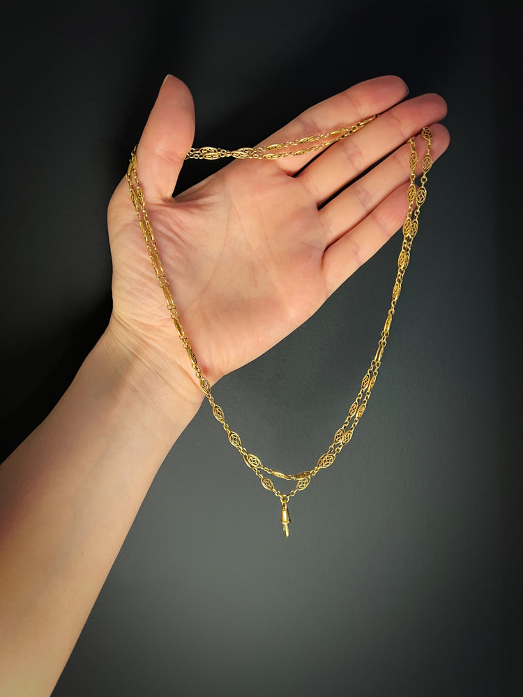 18CT FRENCH SAUTOIR FANCY LINK GAURD CHAIN